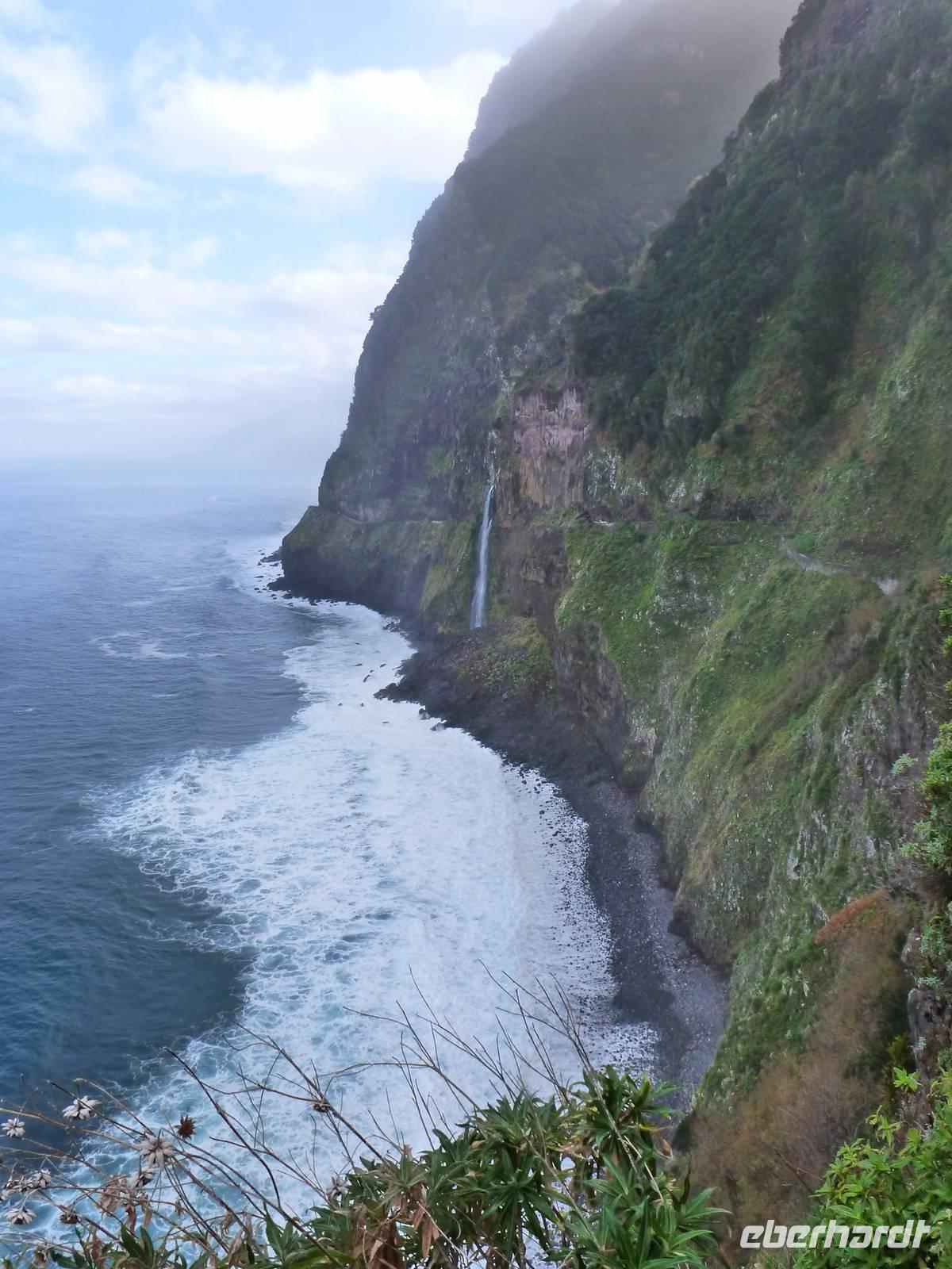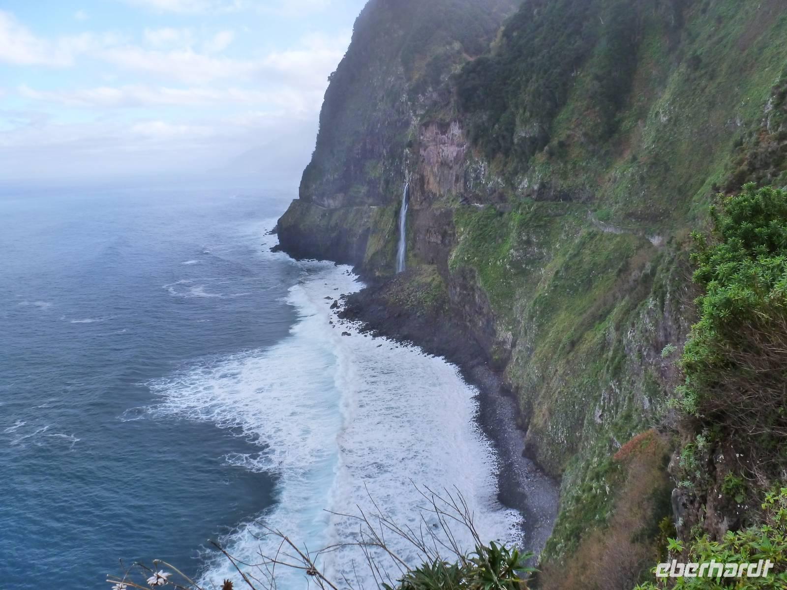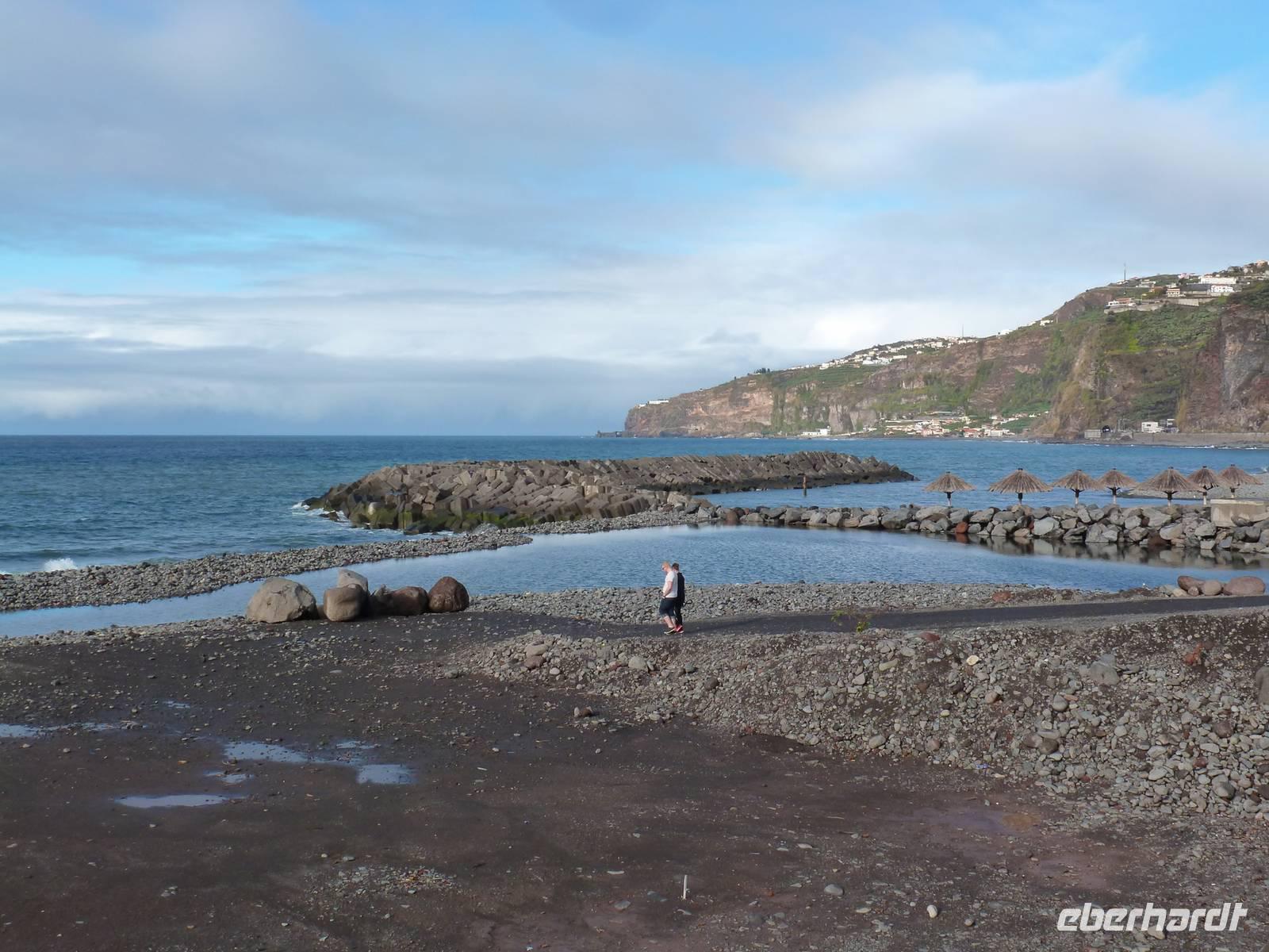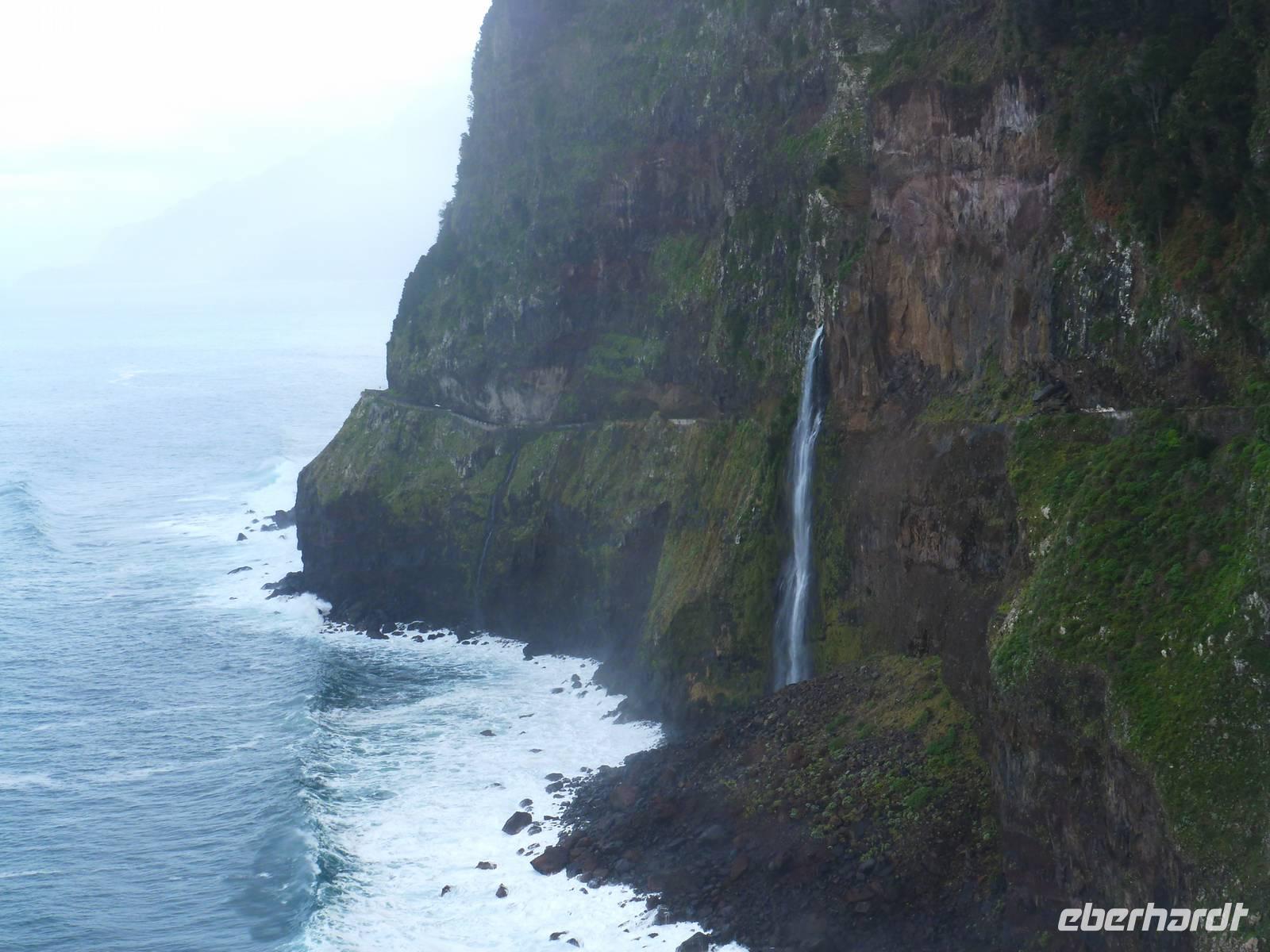Heute Morgen müssen wir uns bereits von einigen Gästen verabschieden, denn diese fliegen heute bereits zurück nach Hause. Wir dürfen noch ein wenig bleiben und so fahren wir nach einem ausgiebigen Frühstück bei anfänglichen Regen zunächst nach Ribeira Brava, dem Zentrum des Westens. In Canico hat es bereits die ganze Nacht geregnet und eigentlich glauben wir alle nicht an einen Umschwung des Wetters, da sich der Himmel in einem düsteren Grau zeigt. Aber Luisa hat Petrus eine SMS geschickt und so strahlt wirklich wenige Minuten später wieder die Sonne. Wir hatten bei unserer Reise wirklich ein unfassbares Glück mit dem Wetter. In Ribeira Brava besuchen wir die kleine Ortskirche und die kleine Markthalle, in der nur drei Degenfische Platz haben. Auf Madeira ist eben alles ein bisschen kleiner. Anschließend fahren wir auf den berühmten Encumeada-Pass, der sich ganz oben dann doch nur im Nebel zeigt. Aber vorher können wir wirklich wunderbar sonnige Ausblicke auf die Westküste genießen. Unten angekommen besuchen wir das kleine Städtchen Sao Vicente, dessen Kirche und Friedhof wir besuchen. Danach führt uns unser Weg weiter nach Porto Moniz. Auf der Strecke sehen wir einige schöne Wasserfälle und Straßen, die durch Erdrutsche nicht mehr befahren werden können. Bereits von Weitem können wir anschließend die natürlichen Meeresschwimmbecken im Vulkangestein erkennen. Da es aber hier ein wenig regnerisch ist, entscheiden wir uns erst in das Restaurant Orca direkt am Meer einzukehren. Hier gilt es nun, welcher Degenfisch mit Banane den Gästen besser schmeckt. Und wie so oft, gewinnt der deutsche Koch vom Vortag, obwohl der Degenfisch auch hier nicht schlecht geschmeckt hat. Nach einem ausgiebigen Mittagessen unternehmen wir einen ausführlichen Spaziergang in Porto Moniz und sind begeistert, von den Wellen, die hier gegen das Gestein prallen. Ein tolles Naturschauspiel und auch hier werden wir nach dem Essen von Sonne verwöhnt. Anschließend kehren wir am Nachmittag zurück zu unserem Hotel und verabschieden unseren Gast, der erst morgen Vormittag nach Hause fliegt. Welch ein Glück, denn für uns beginnt die Heimreise bereits um 03:15 Uhr. So verbringen alle Gäste den Abend individuell und bereiten sich auf die frühe Abfahrt vor.
