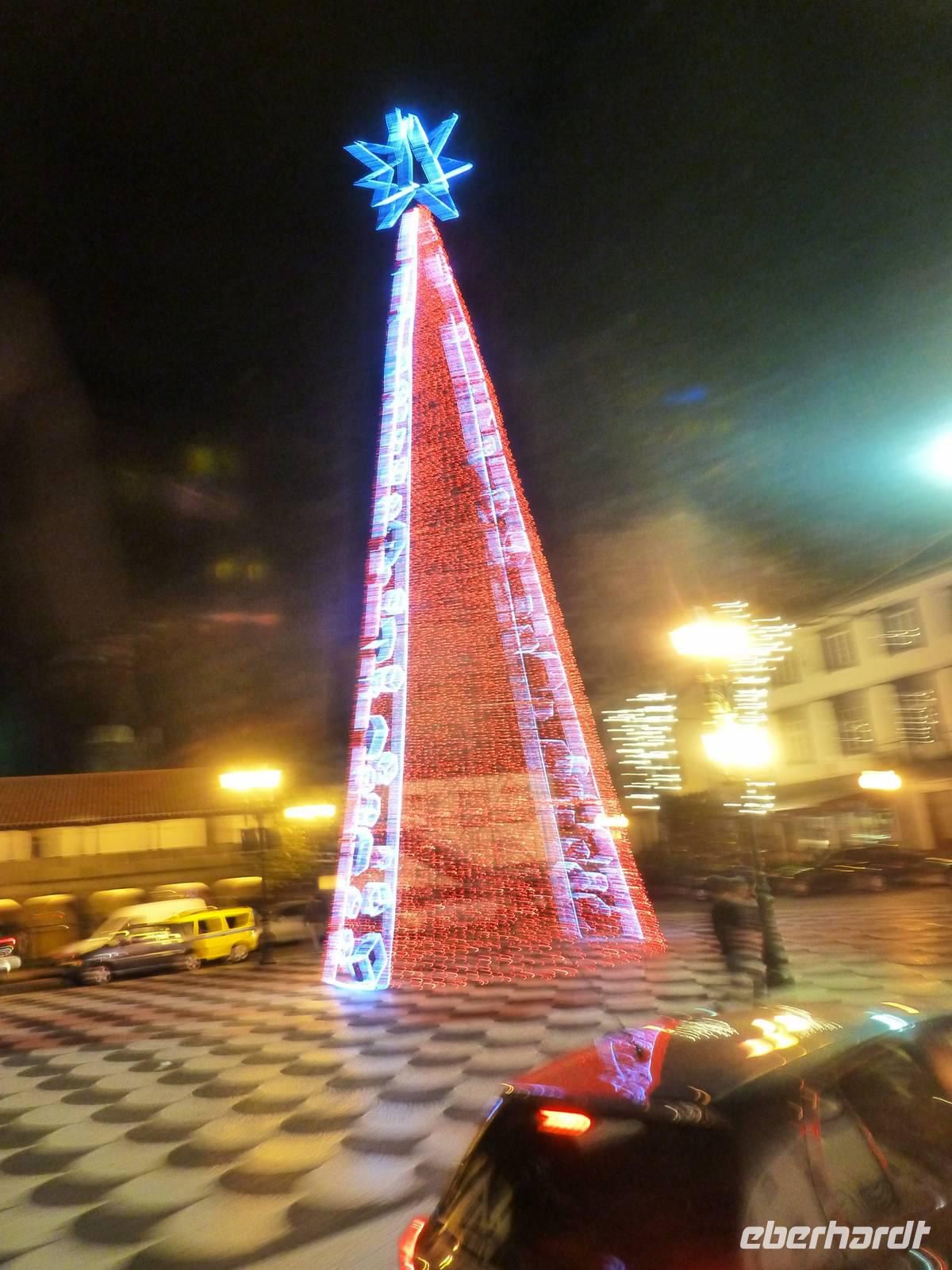 Montag, 30.12.2013: Wir reisen zum Pico do Arierio, unternehmen eine Levada–Wanderung, fahren nach Santana und weiter nach Machico und genießen eine Lichterfahrt und ein Abendessen in Funchal