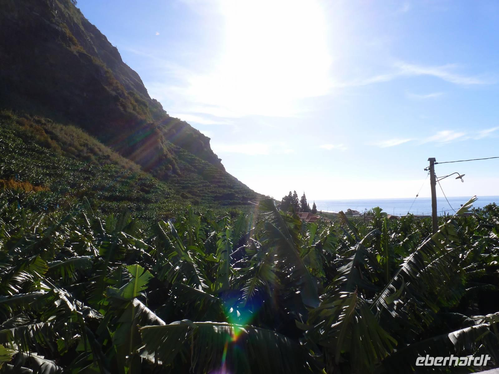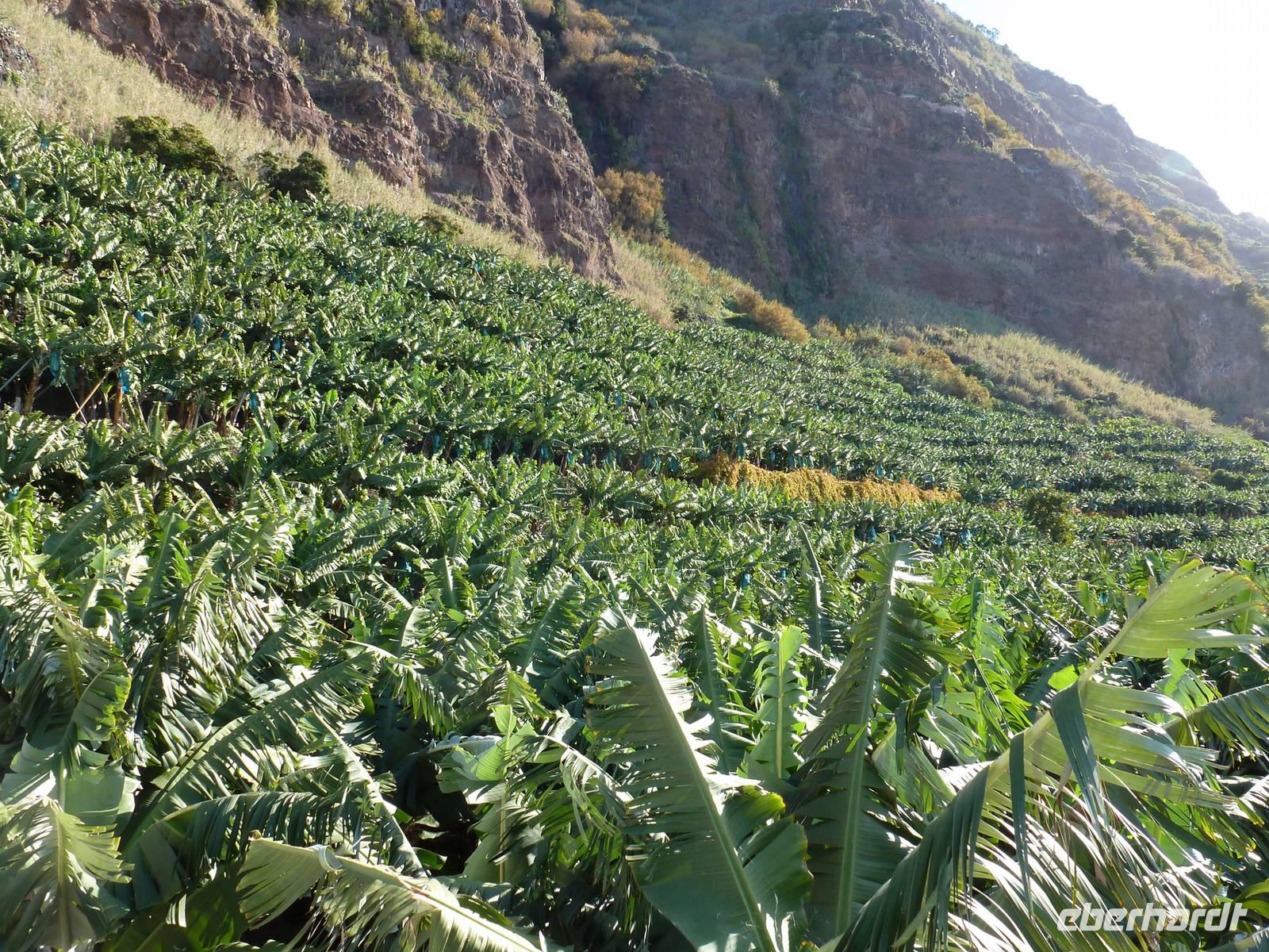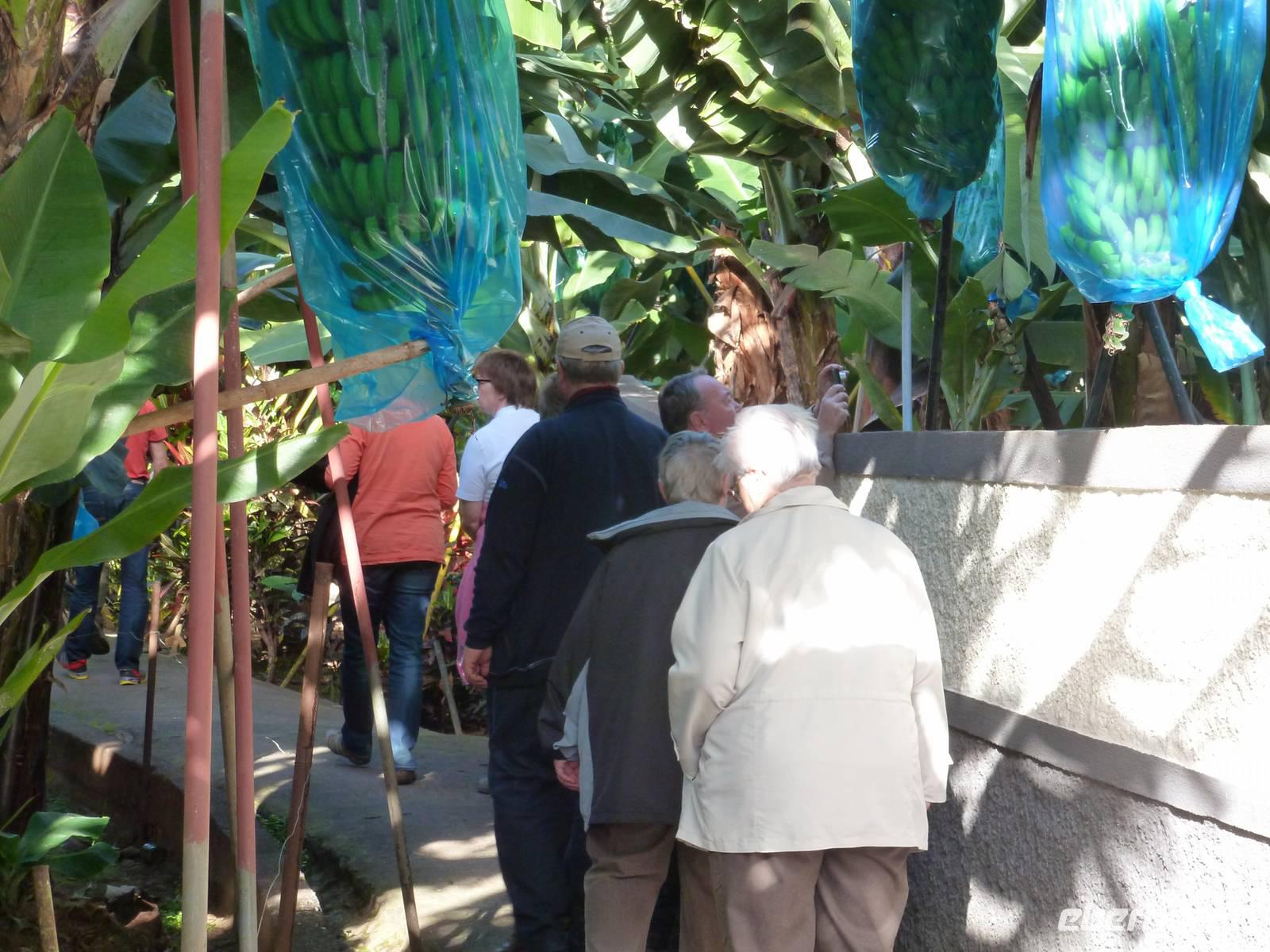 Heute Morgen erwartet uns wieder ein ereignisreicher Tag. Nach einem ausgiebigen Frühstück fahren wir heute zunächst zu einer der höchsten Steilklippen Europas, zum Cabo Girao, von wo wir eine atemberaubende Aussicht auf Funchal und Umgebung genießen. Dann reisen wir weiter entlang der Südküste zum „Centro de Bananicultura". Vorher erzählt uns Luisa in ein einer detaillierten Art alles über den Bananenanbau und vor allem alles über die Fortpflanzung der Pflanzen. In jedem Fall können wir jetzt alle Bananen Anbauer werden J Traurig ist auch, dass die Pflanzen bereits nach einem Fruchtstand sterben müssen aber so ist die Natur. Wir sehen die Pflanzen in Ihrer voller Pracht und können tolle Fotos schießen. Madeira ist eben verwöhnt was Obstpflanzen und Blumen betrifft. Hier wächst einfach alles.