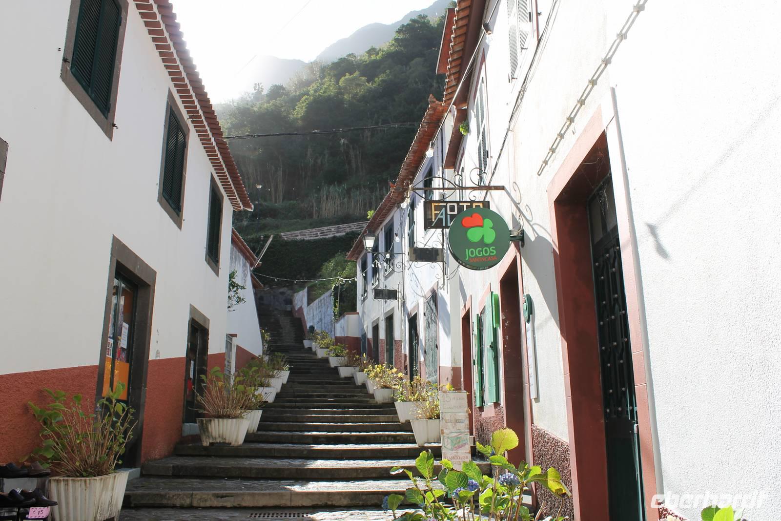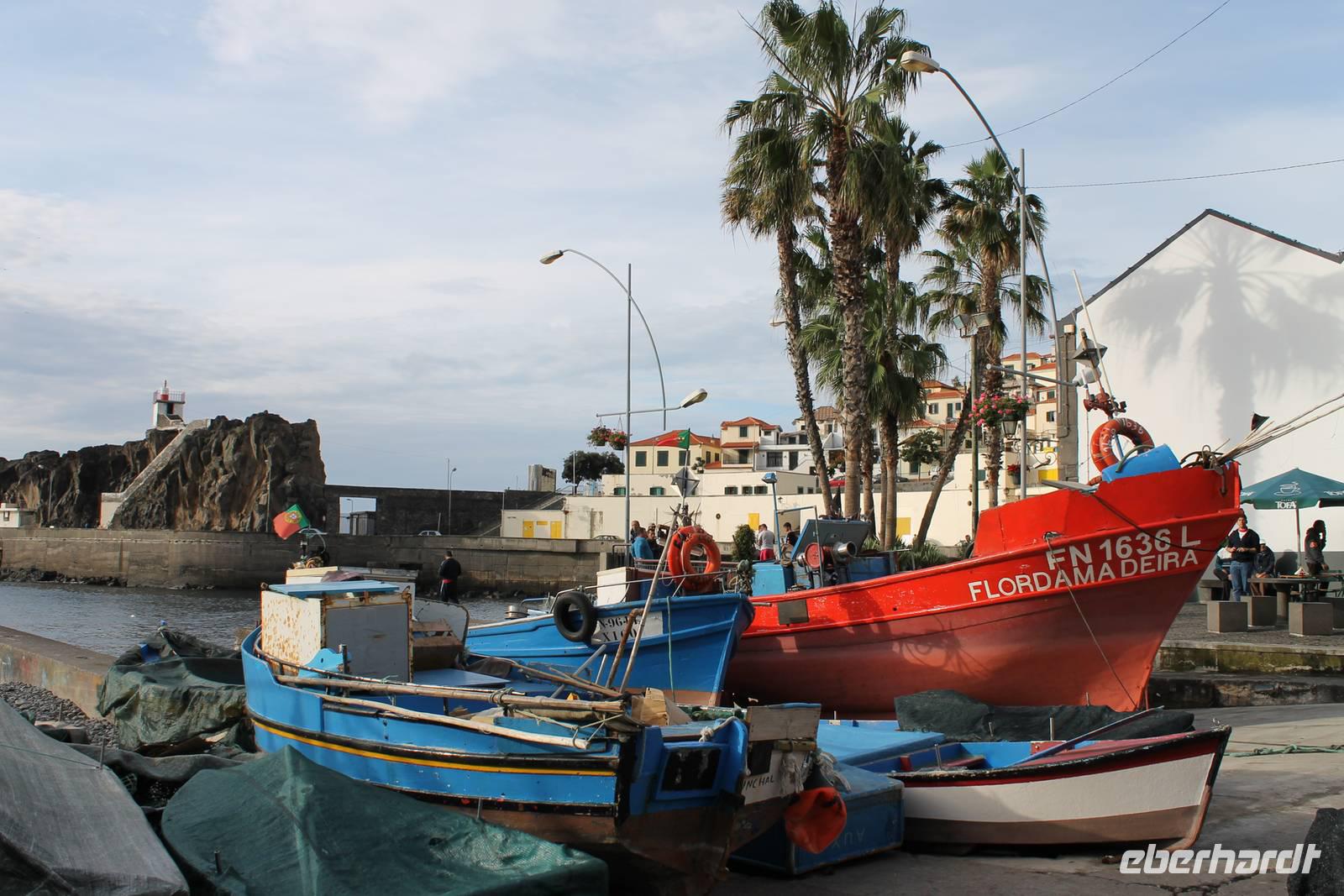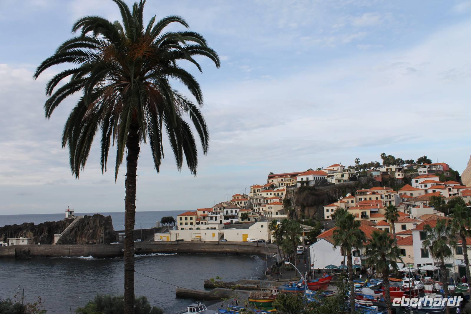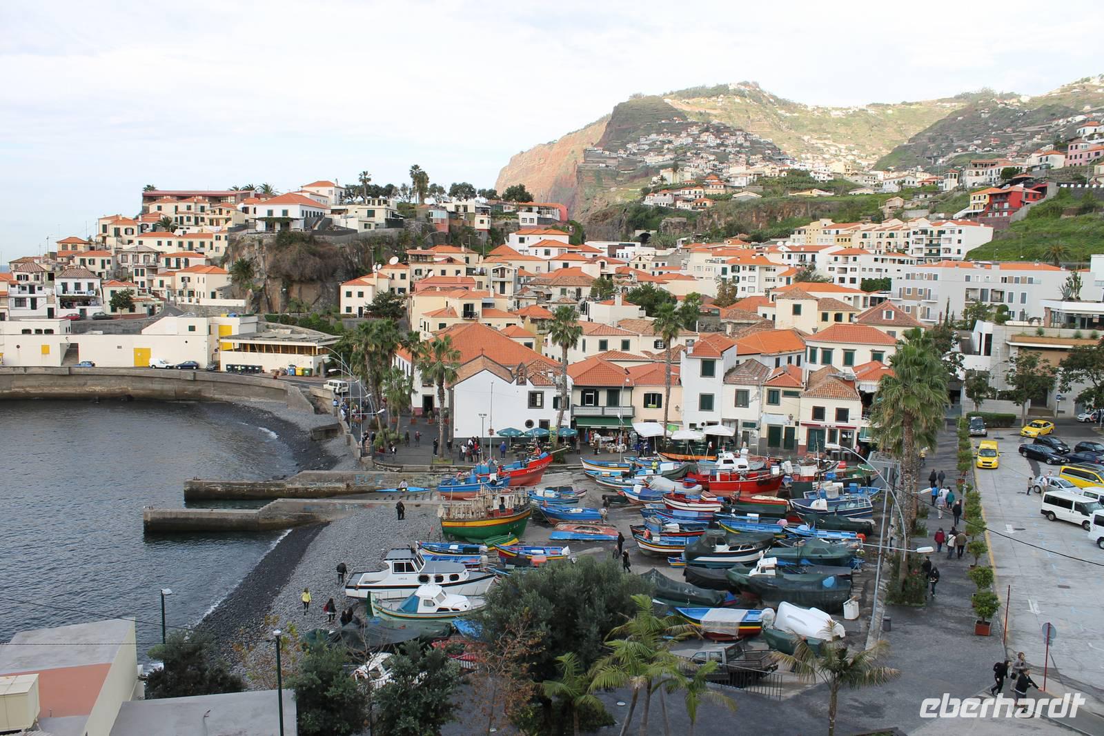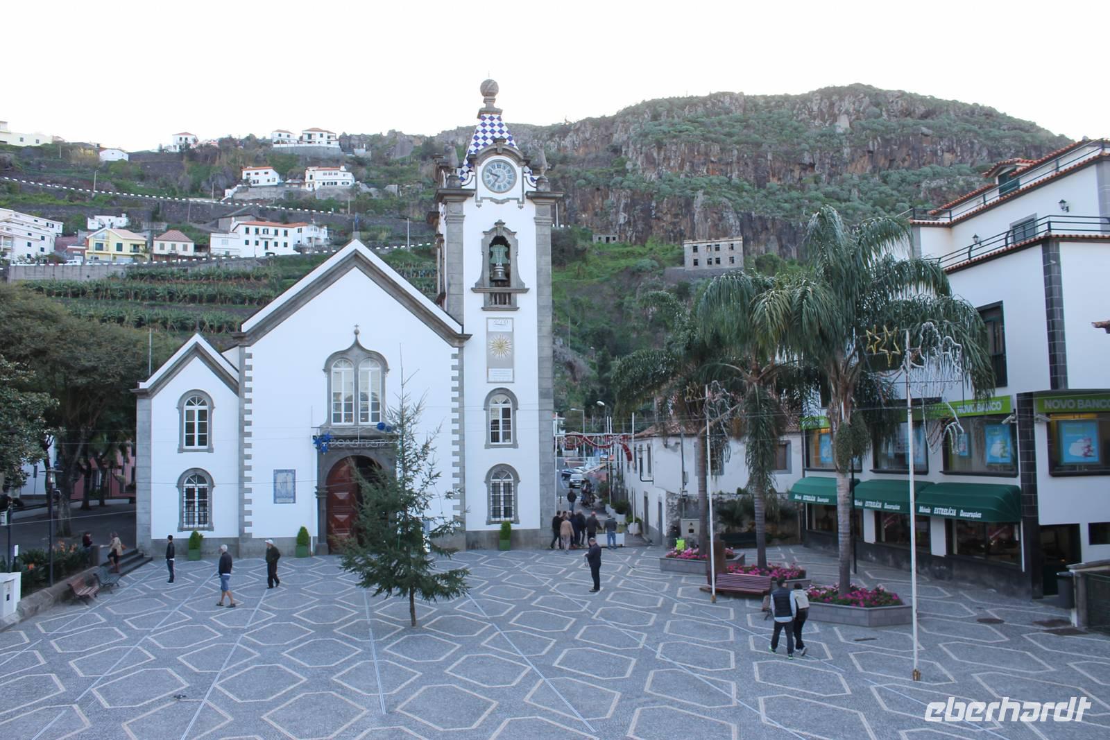Der heutige Tag steht im Zeichen der Hauptstadt Funchal: Wir beginnen mit einer Stadtrundfahrt/Stadtspaziergang durch das Zentrum. Nach ca. einer Stunde erreichen wir die bekannte Markthalle von Funchal. Dort beobachten wir das rege Treiben der Händler. Wir sehen, wie der Degenfisch bearbeitet wird und werden zu Obst-Kostproben regelrecht genötigt. Anschließend schlendern wir durch die Fußgängerzone bis zur Kirche. Davor steht bereits eine Folkloregruppe in bunten Kostümen, wobei die Kinder tanzen und die Erwachsenen singen und musizieren. Wir spazieren zurück über den kleinen Weihnachtsmarkt, auf dem es anstatt Glühwein und gebrannten Mandeln Blumen und Madeirawein zu kaufen gibt. Verkleidete Frauen posieren für ein Foto. Im Anschluss besichtigen wir die Weinkellerei Blandy's. Zuerst erfahren wir von Teresa viel über die Herstellung, anschließend Verkosten wir den leckeren Wein.