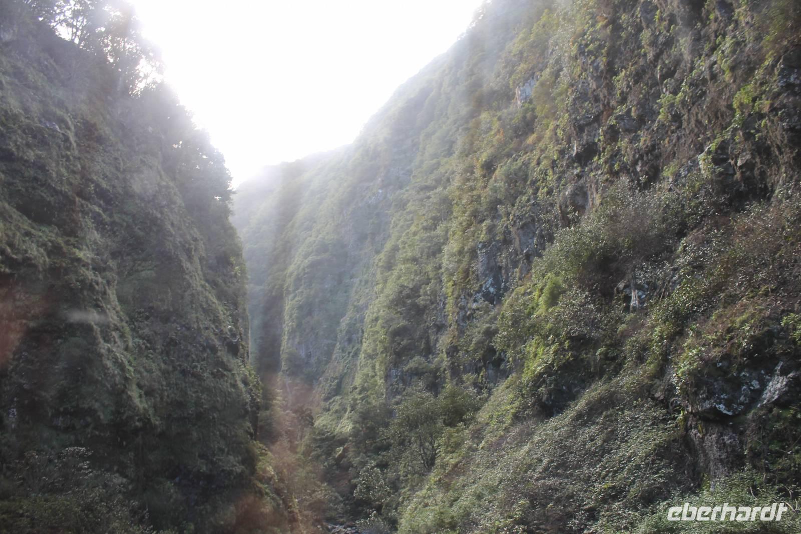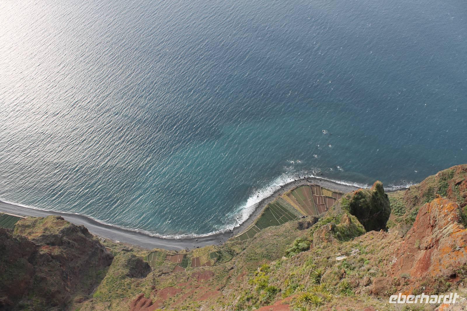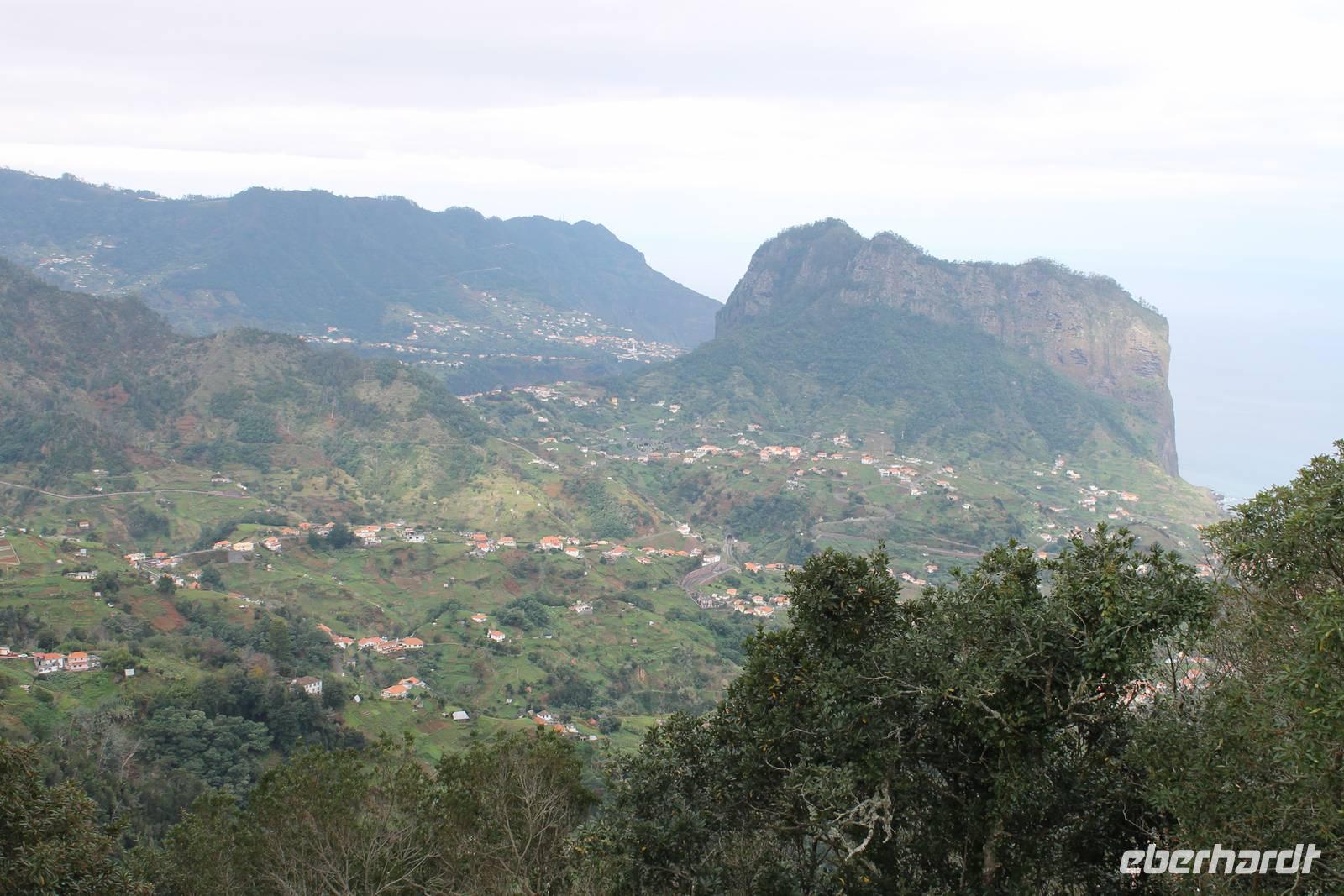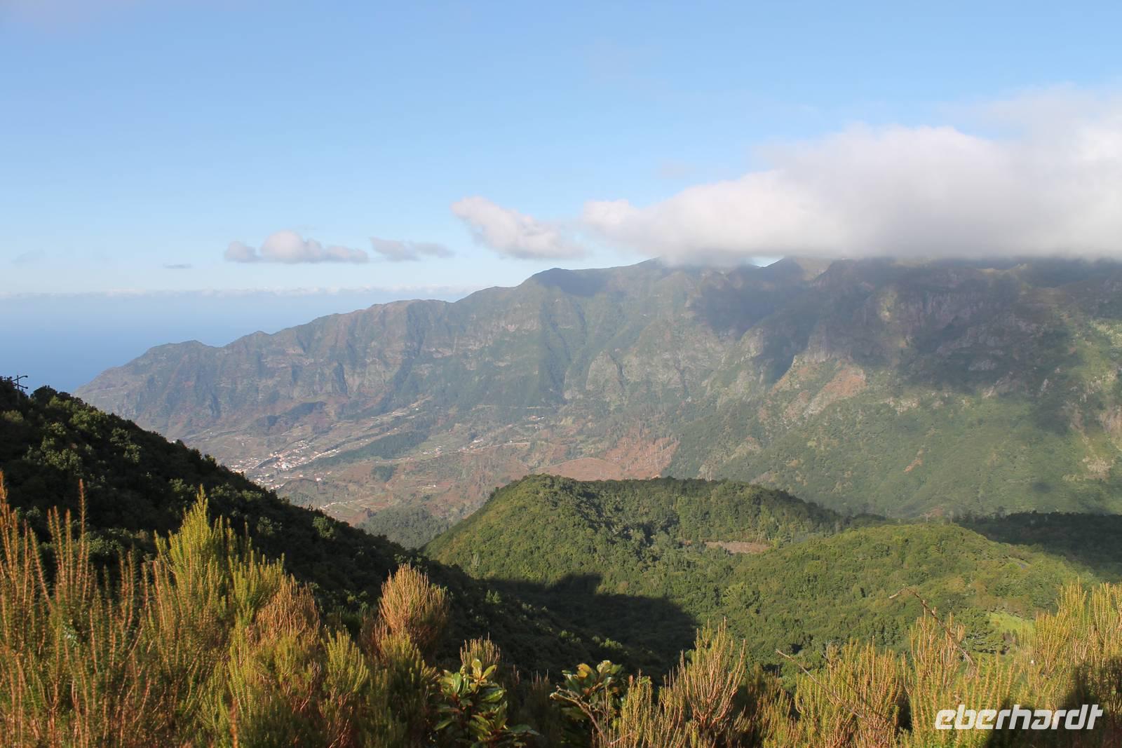 Nach der Ankunft werden wir direkt zum Hotel gebracht, checken ein und kurz danach treffen wir uns auch schon wieder mit der anderen Gruppe, um gemeinsam gegen 10.30 das Programm zu beginnen. Heute steht das gebirgige Landesinnere und die Ostküste auf dem Programm. Wir fahren zuerst nach Machico an der Ostküste, wo sich ein schöner (dunkler) Sandstand befindet.