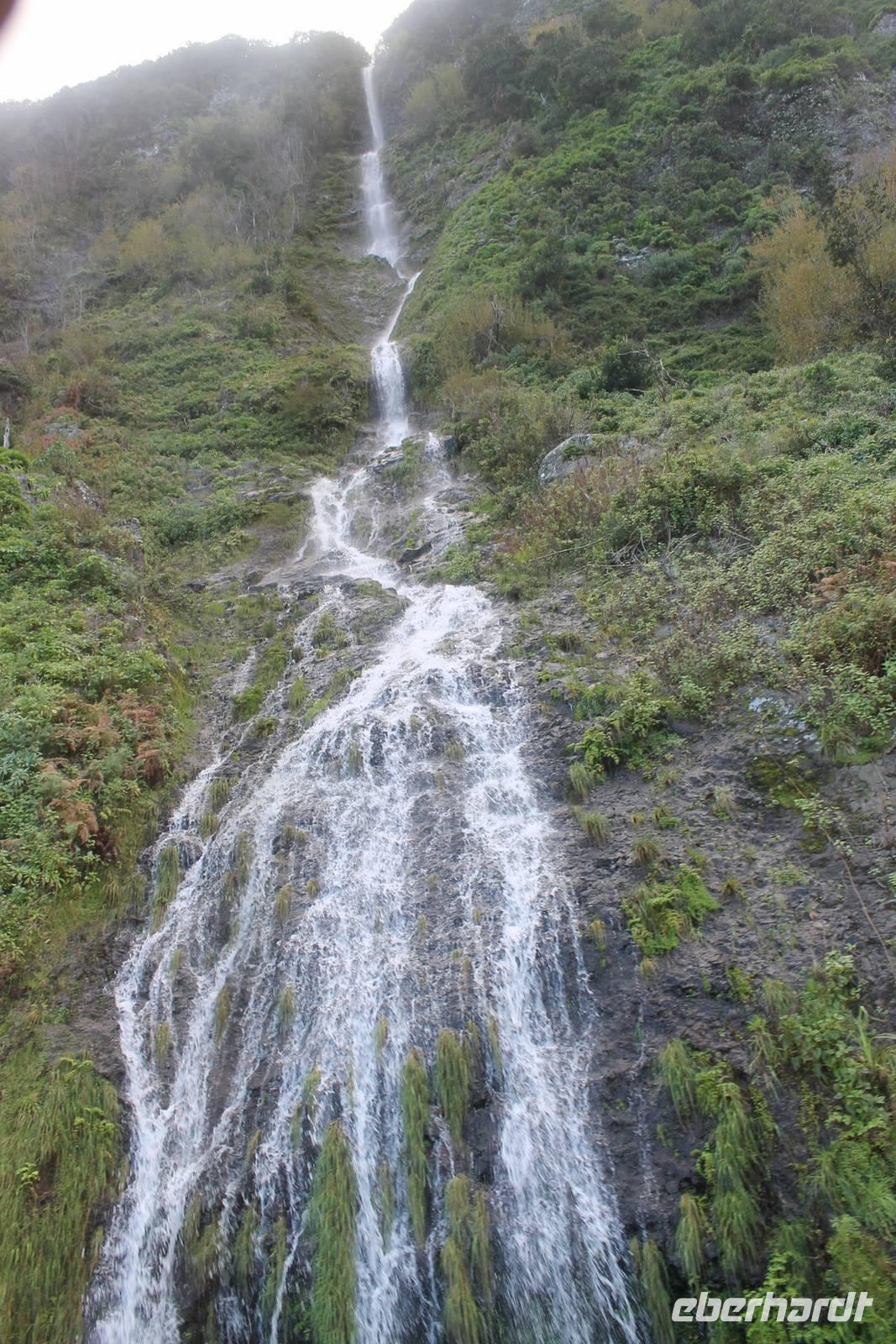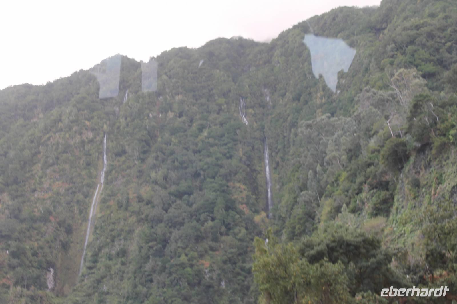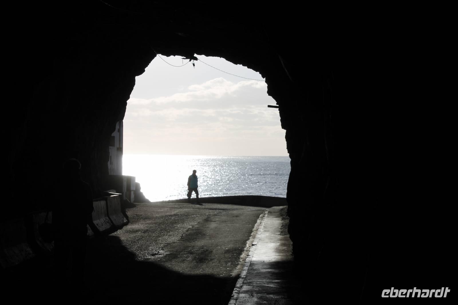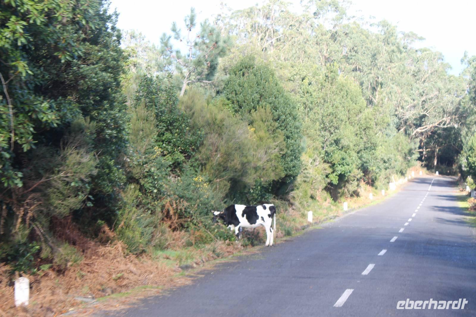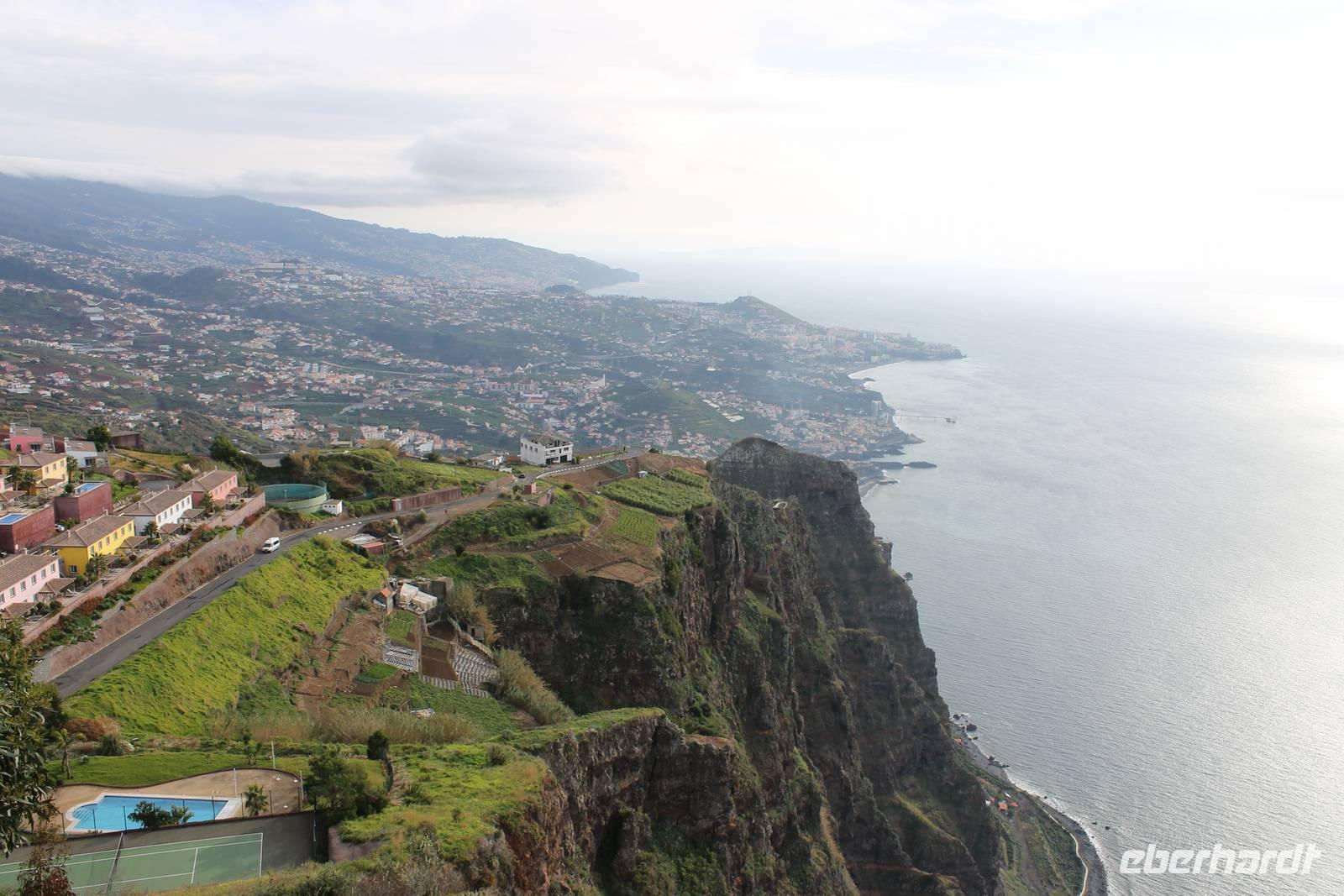 Nach der Ankunft werden wir direkt zum Hotel gebracht, checken ein und kurz danach treffen wir uns auch schon wieder mit der anderen Gruppe, um gemeinsam gegen 10.30 das Programm zu beginnen. Heute steht das gebirgige Landesinnere und die Ostküste auf dem Programm. Wir fahren zuerst nach Machico an der Ostküste, wo sich ein schöner (dunkler) Sandstand befindet.
