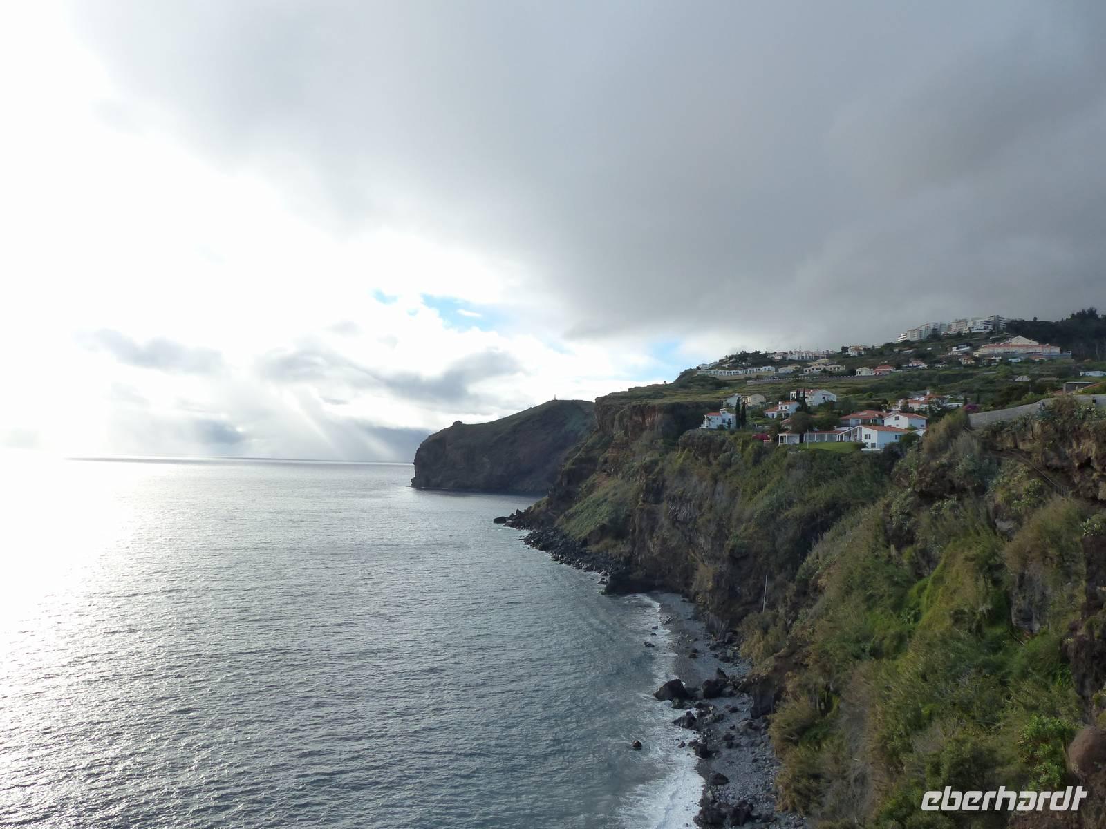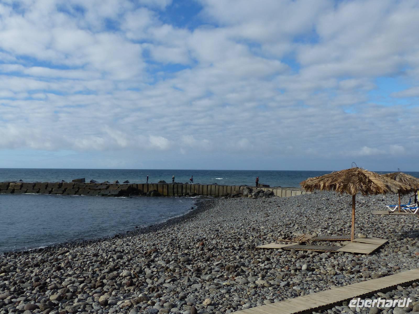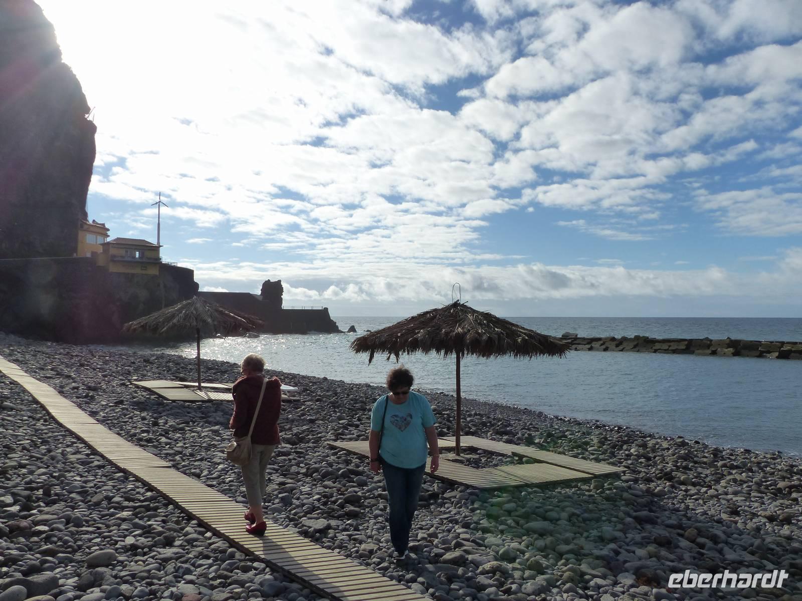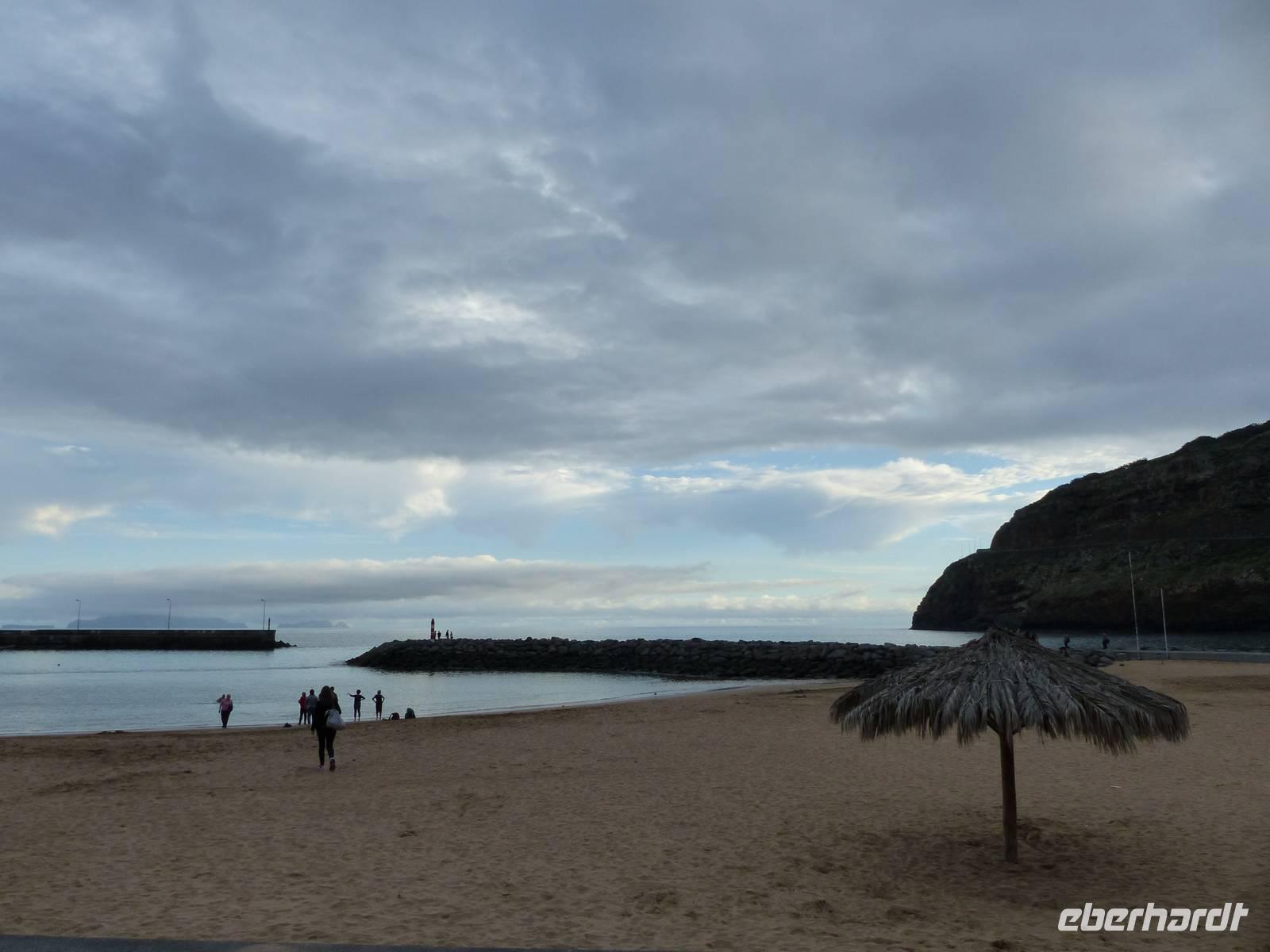 das leckere Nationalgetränk "Poncha" wird probiert. Zuckerrohrschnaps gemischt mit einer leckeren Frucht - in unserem Fall Maracuja und es kann angestoßen werden. Pünktlich zur Mitttagszeit erreichen wir dann Santana, wo wir uns ein kleines oder auch eher großes Gericht schmecken lassen. Aber natürlich auch die berühmten "Casas de Colmo", mit Stroh gedeckte Häuser, werden bestaunt. Bevor es dann wieder zurück zum Hotel geht, besuchen wir noch zusätzlich und als kleine Überraschung von Teresa die östlichste Spitze des Landes. Aber auch ein Halt in dem kleinen Örtchen Machico darf nicht fehlen. Immerhin gibt es hier den einzigsten goldgelben Badestrand der Insel- welcher von mutigen tatsächlich noch heute ausprobiert wird.