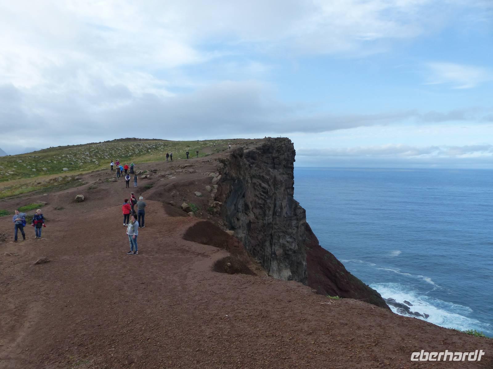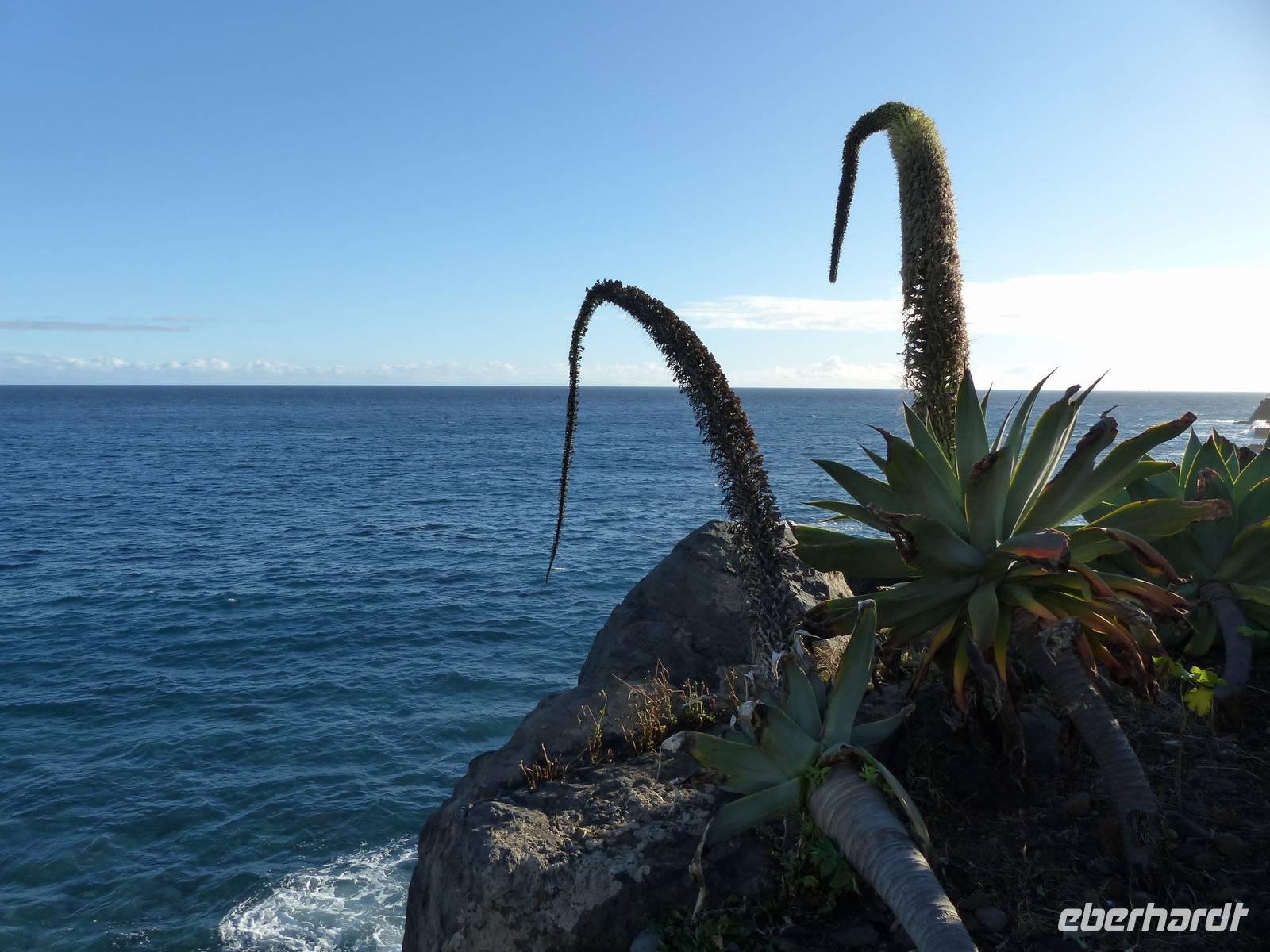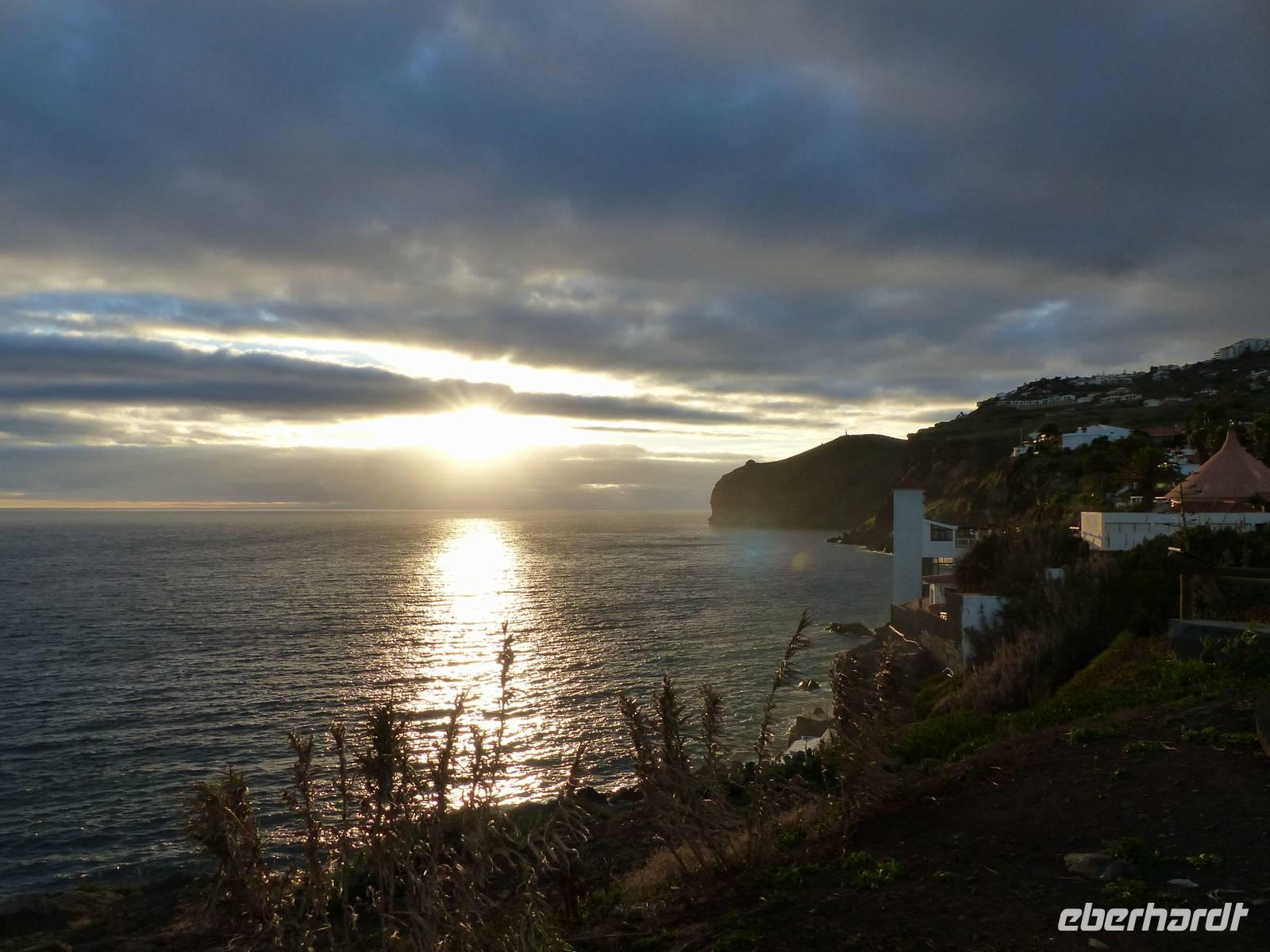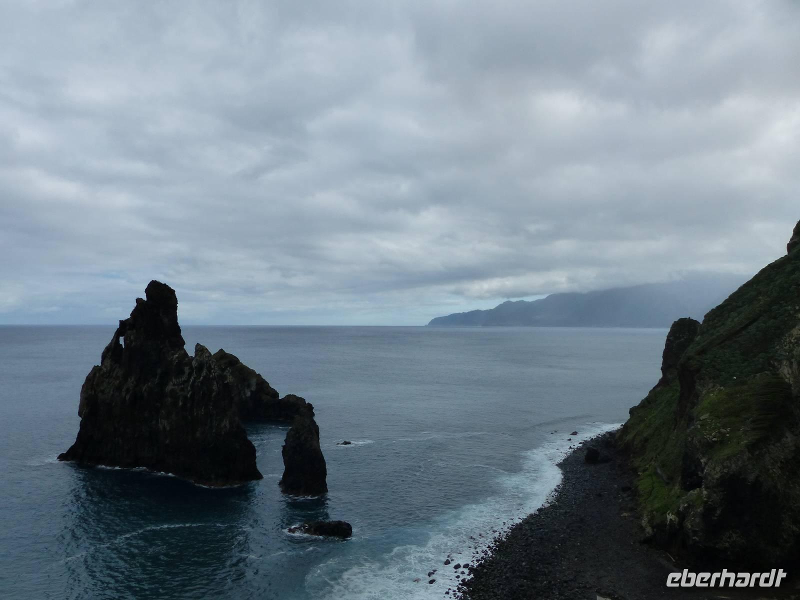 das leckere Nationalgetränk "Poncha" wird probiert. Zuckerrohrschnaps gemischt mit einer leckeren Frucht - in unserem Fall Maracuja und es kann angestoßen werden. Pünktlich zur Mitttagszeit erreichen wir dann Santana, wo wir uns ein kleines oder auch eher großes Gericht schmecken lassen. Aber natürlich auch die berühmten "Casas de Colmo", mit Stroh gedeckte Häuser, werden bestaunt. Bevor es dann wieder zurück zum Hotel geht, besuchen wir noch zusätzlich und als kleine Überraschung von Teresa die östlichste Spitze des Landes. Aber auch ein Halt in dem kleinen Örtchen Machico darf nicht fehlen. Immerhin gibt es hier den einzigsten goldgelben Badestrand der Insel- welcher von mutigen tatsächlich noch heute ausprobiert wird.