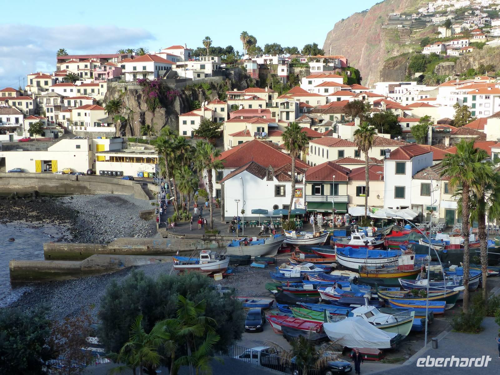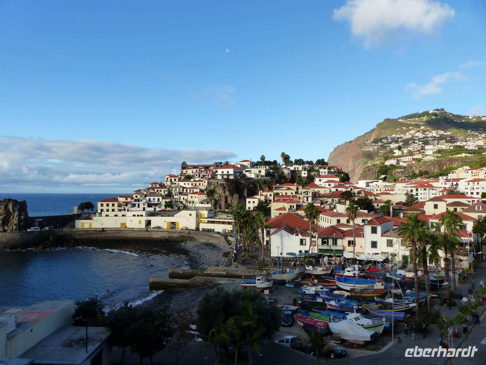 Nach einem leckeren Frühstück heißt es dann für alle "Bom dia". Herzlich werden wir von Teresa begrüßt und ein toller Ausflug mit herrlichem Sonnenschein steht uns bevor. Zuerst geht es entlang der Küste, wo wir im kleinen Fischerdorf namens „Camara de Lobos" anhalten. Dieser idyllische Ort begeisterte schon Winston Churchill und bietet uns mit seinem kleinen Hafen und bunten Fischerbooten vor allem ein tolles Fotomotiv. Weiter geht es für uns zu einer der höchsten Steilküsten der Welt. In einer schwindelerregenden Höhe von 580m genießen wir an der Cabo Girao einen wunderschönen Ausblick. Erst seit kurzem gibt es hier diese Aussichtsplattform welche durch einen Glasboden einen direkten Blick in die Tiefe ermöglicht.