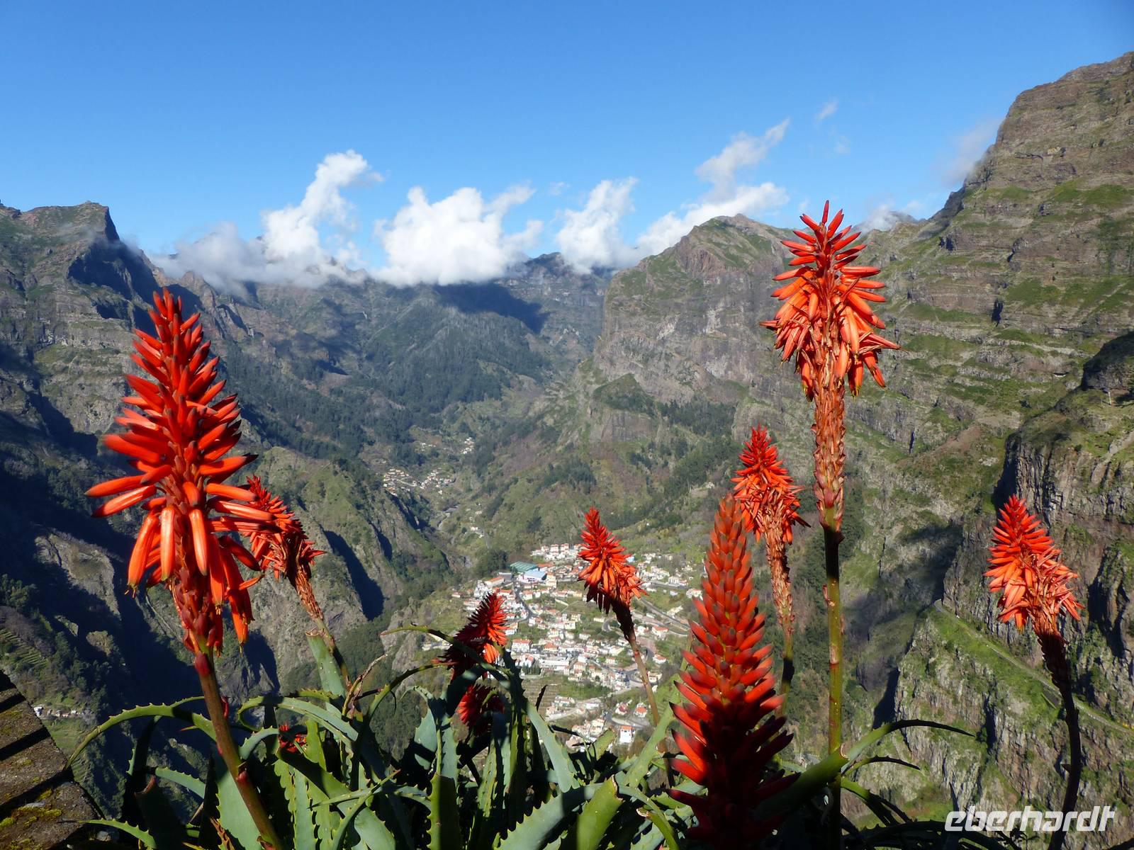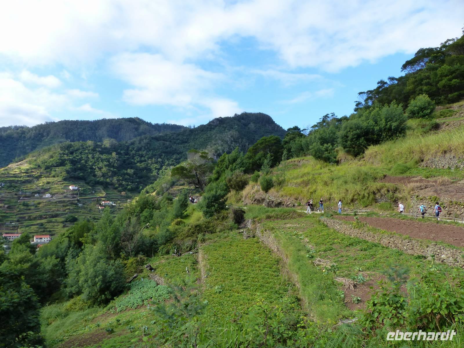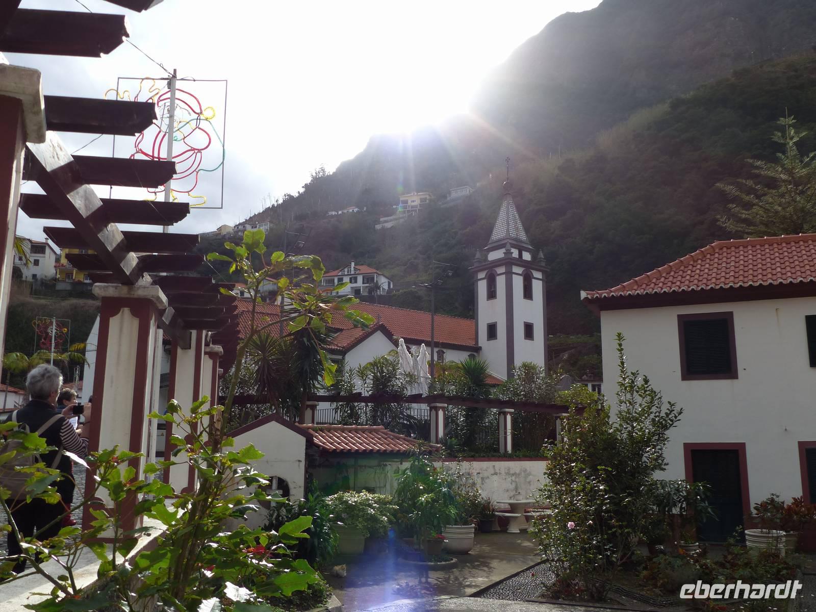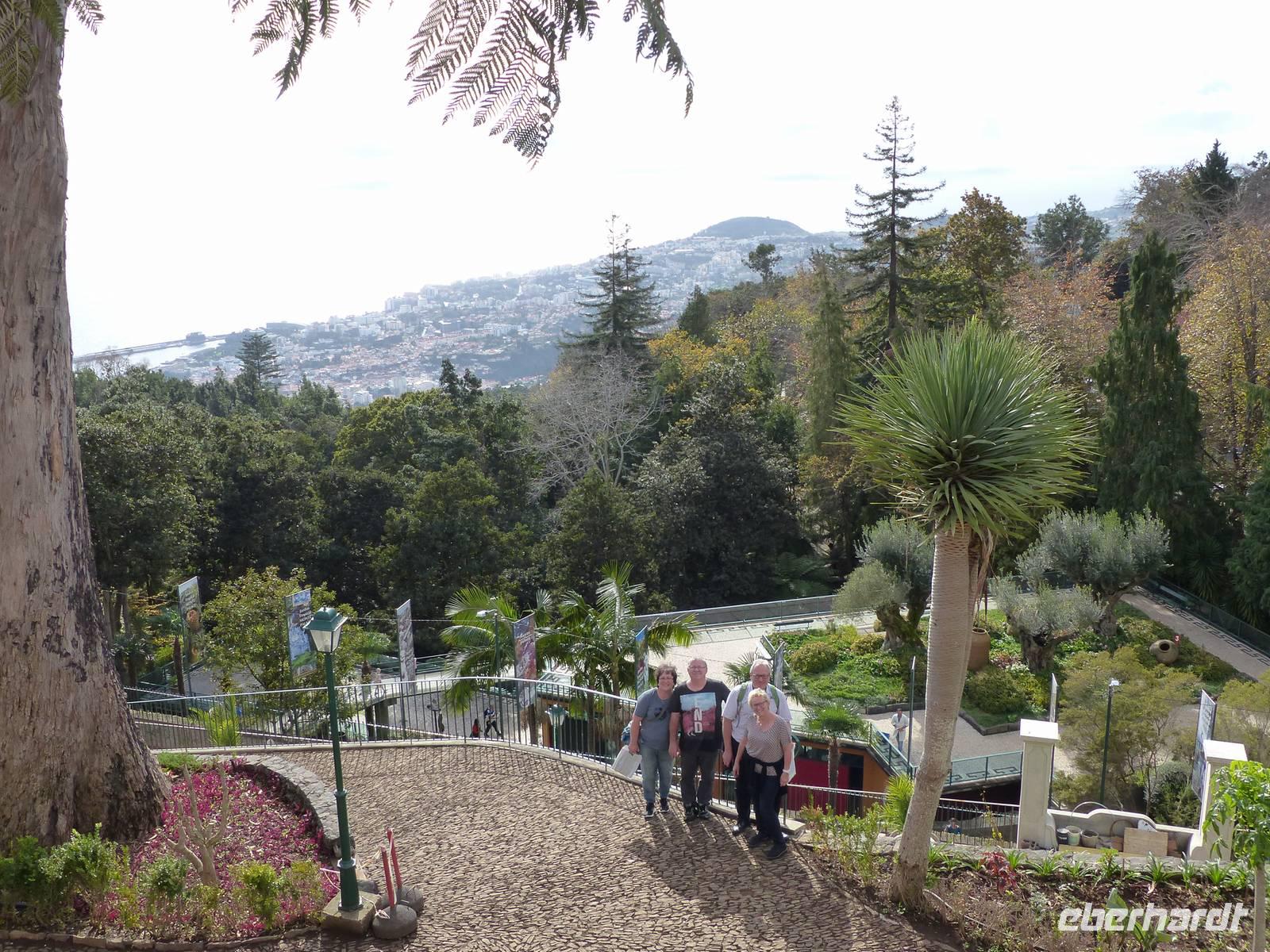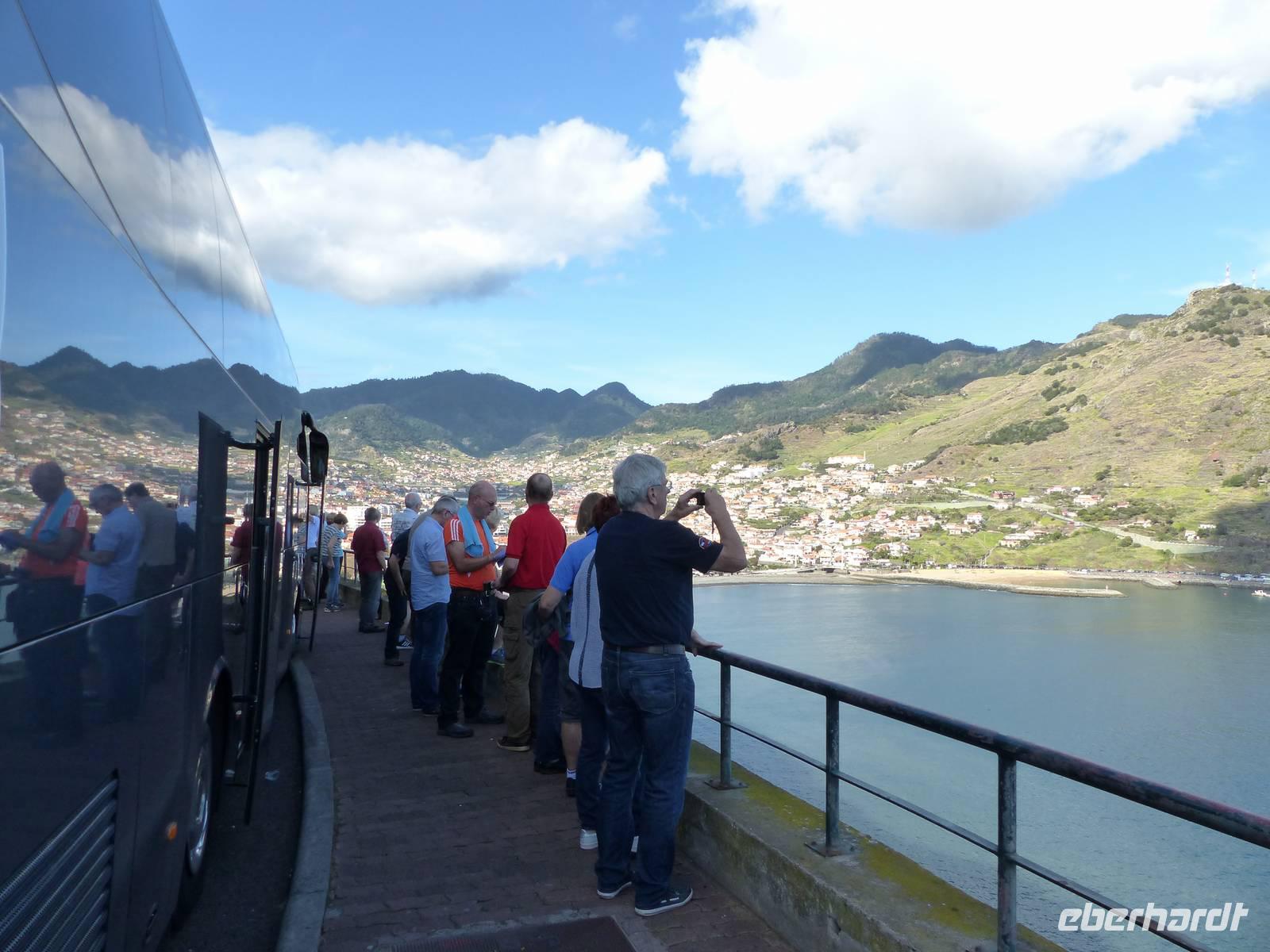 An der Südküste entlang begeben wir uns nach Ponta do Sol, wo wir das „Centro de Bananicultura" besuchen. Teresa berichtet uns allerlei Wissenswertes über den Bananenanbau auf Madeira. Doch nicht nur dieses Obst steht im Vordergrund, auch ein Avocadobaum und bereits in der Blüte stehende Mangobäume erwarten uns hier. Bevor es im Anschluss etwas ins Landesinnere geht, halten wir noch für einen Fotostopp am Aussichtspunkt „Pico dos Barcelos". Hier bietet sich uns eine wunderschöne Sicht direkt auf die Stadt Funchal, welche mit 110.000 Einwohnern die Hauptstadt Madeiras ist. Passend zur Mittagszeit erreichen wir dann im Anschluss „Eiro do Serrado", wo wir erst typische Gerichte wie die „Nonnensuppe" oder eine Tomatensuppe mit Zwiebeln zu uns nehmen und dann noch etwas spazieren. Nicht zuletzt dem traumhaften Wetter zu verdanken, bietet sich uns hier ebenso ein wunderschönes Panaroma - der Blick in das Nonnental.