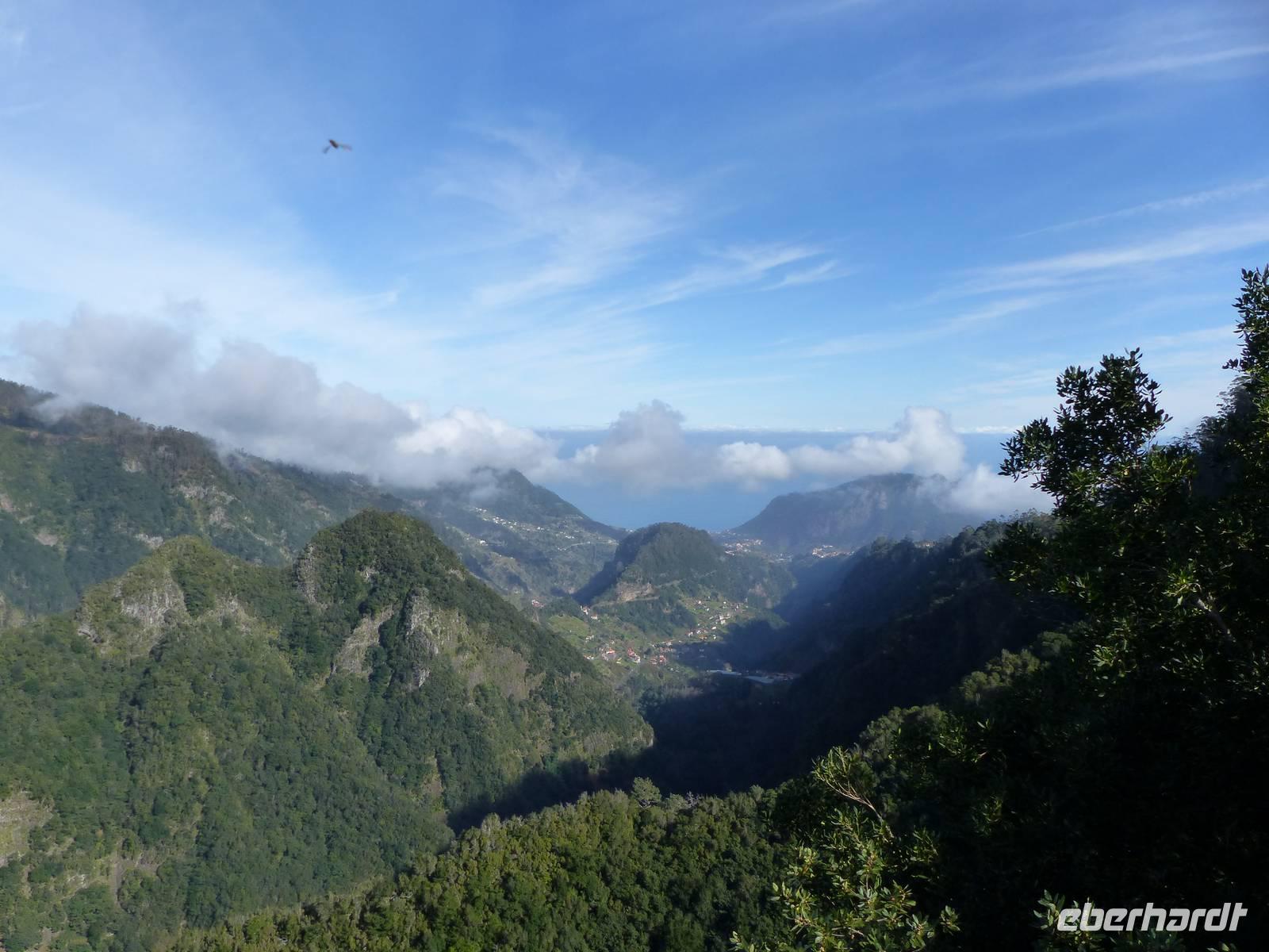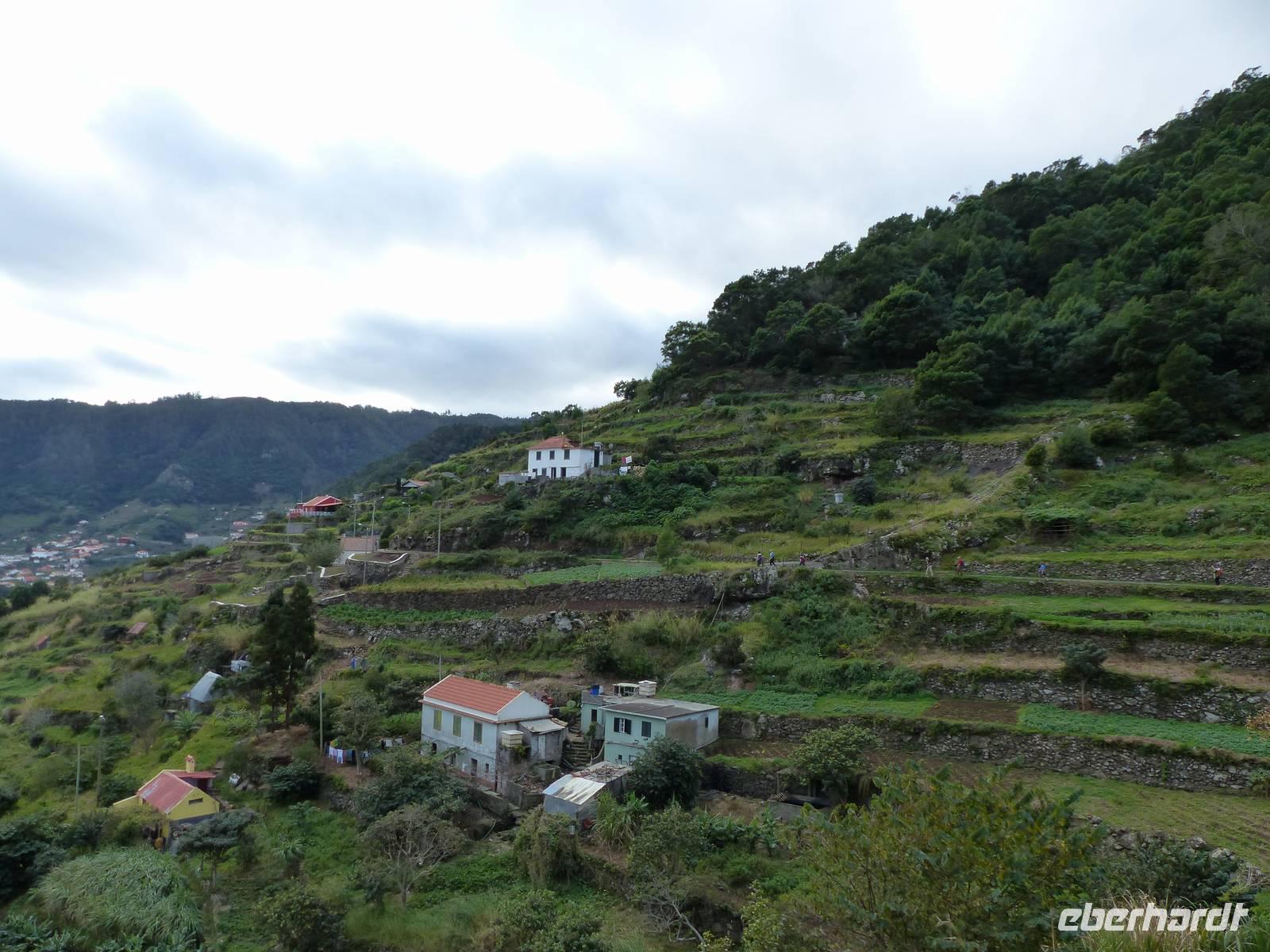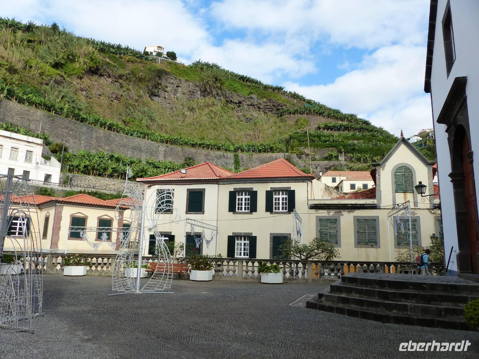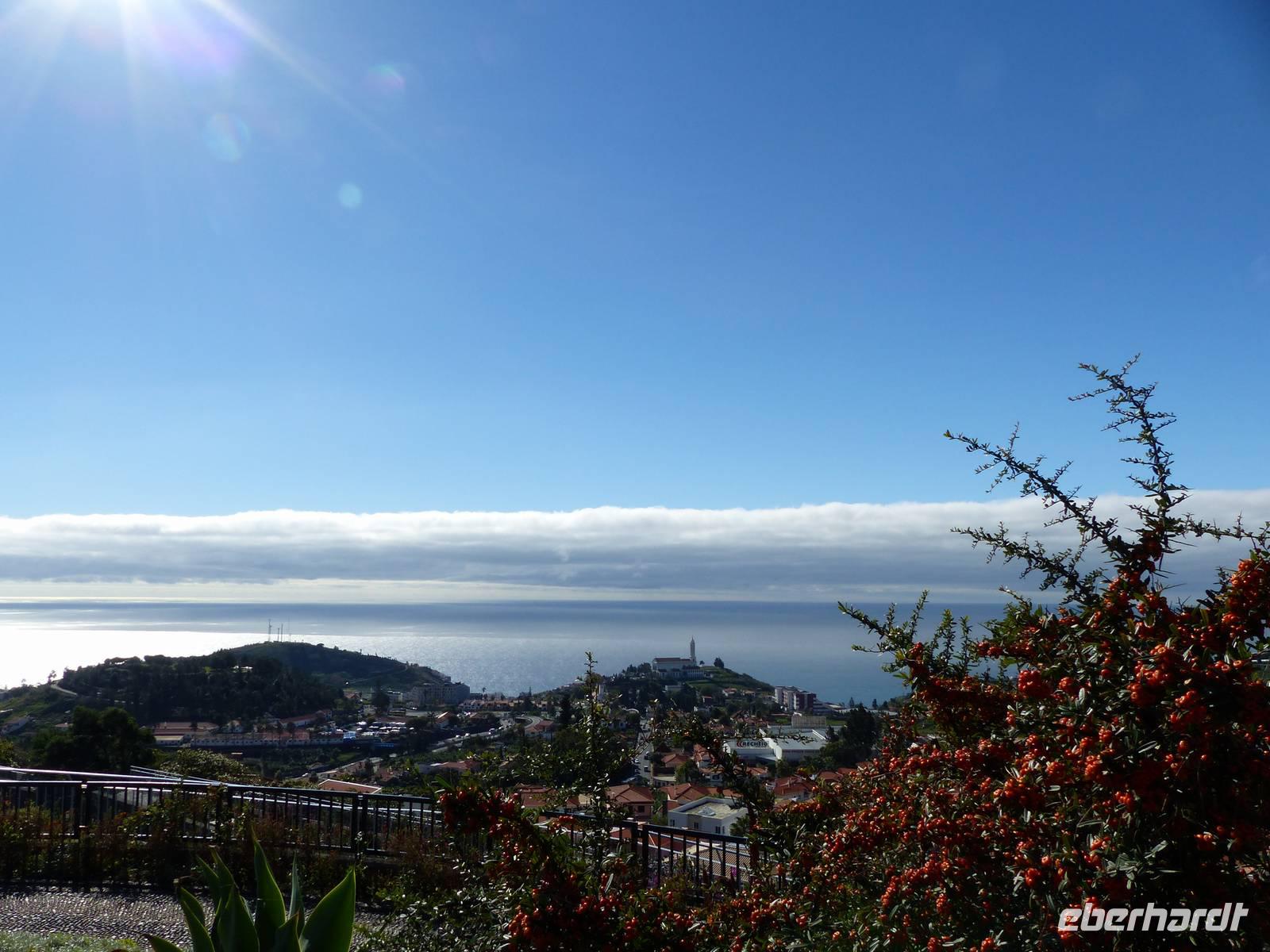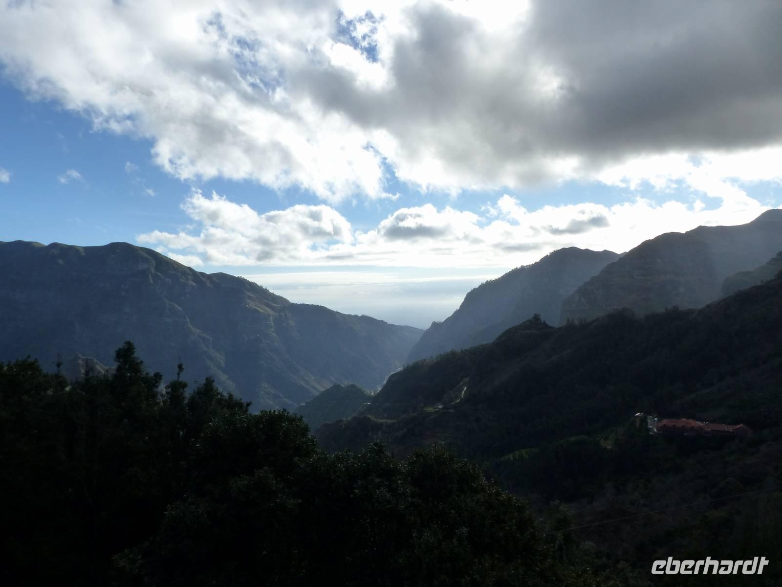 An der Südküste entlang begeben wir uns nach Ponta do Sol, wo wir das „Centro de Bananicultura" besuchen. Teresa berichtet uns allerlei Wissenswertes über den Bananenanbau auf Madeira. Doch nicht nur dieses Obst steht im Vordergrund, auch ein Avocadobaum und bereits in der Blüte stehende Mangobäume erwarten uns hier. Bevor es im Anschluss etwas ins Landesinnere geht, halten wir noch für einen Fotostopp am Aussichtspunkt „Pico dos Barcelos". Hier bietet sich uns eine wunderschöne Sicht direkt auf die Stadt Funchal, welche mit 110.000 Einwohnern die Hauptstadt Madeiras ist. Passend zur Mittagszeit erreichen wir dann im Anschluss „Eiro do Serrado", wo wir erst typische Gerichte wie die „Nonnensuppe" oder eine Tomatensuppe mit Zwiebeln zu uns nehmen und dann noch etwas spazieren. Nicht zuletzt dem traumhaften Wetter zu verdanken, bietet sich uns hier ebenso ein wunderschönes Panaroma - der Blick in das Nonnental.