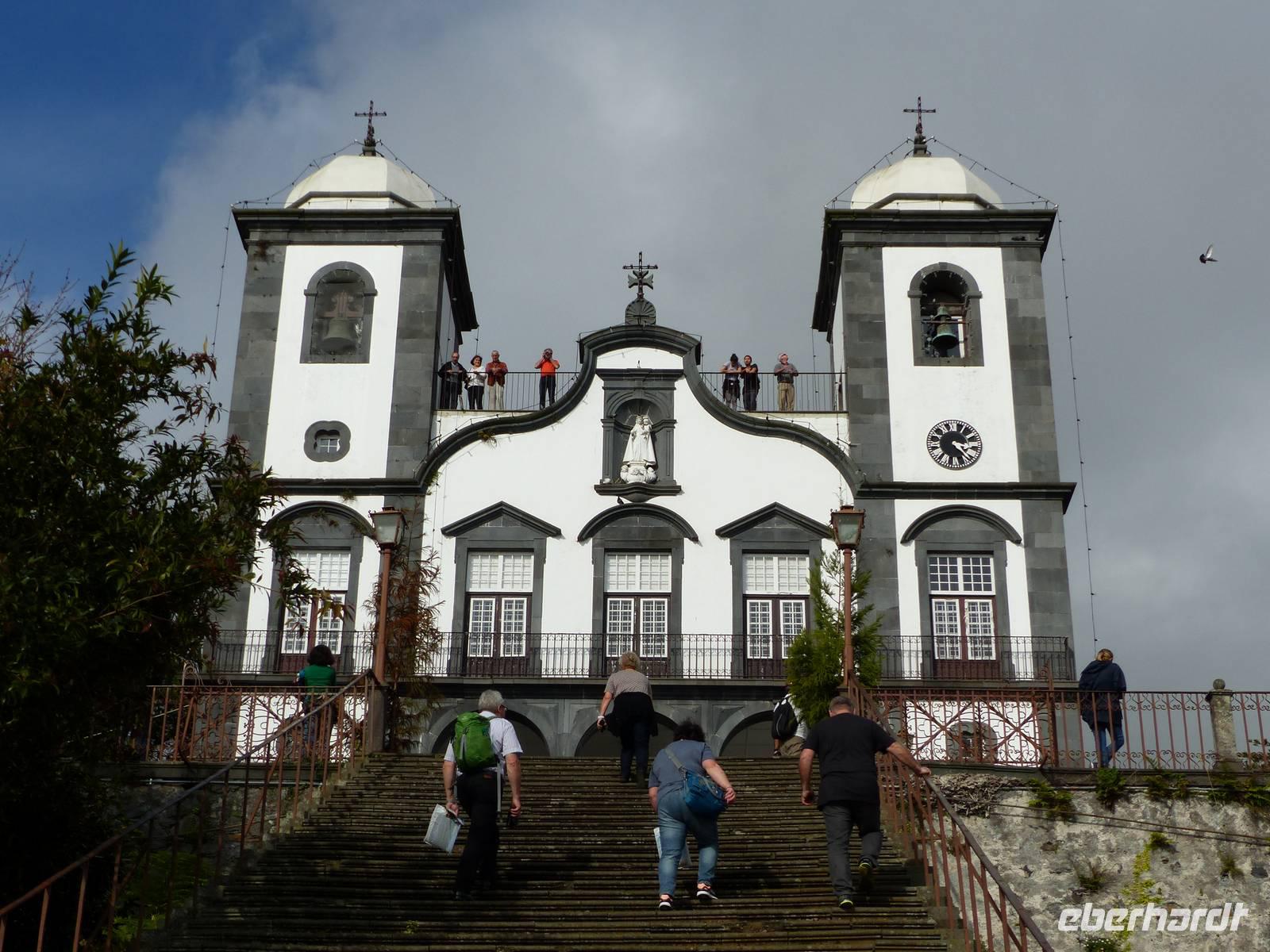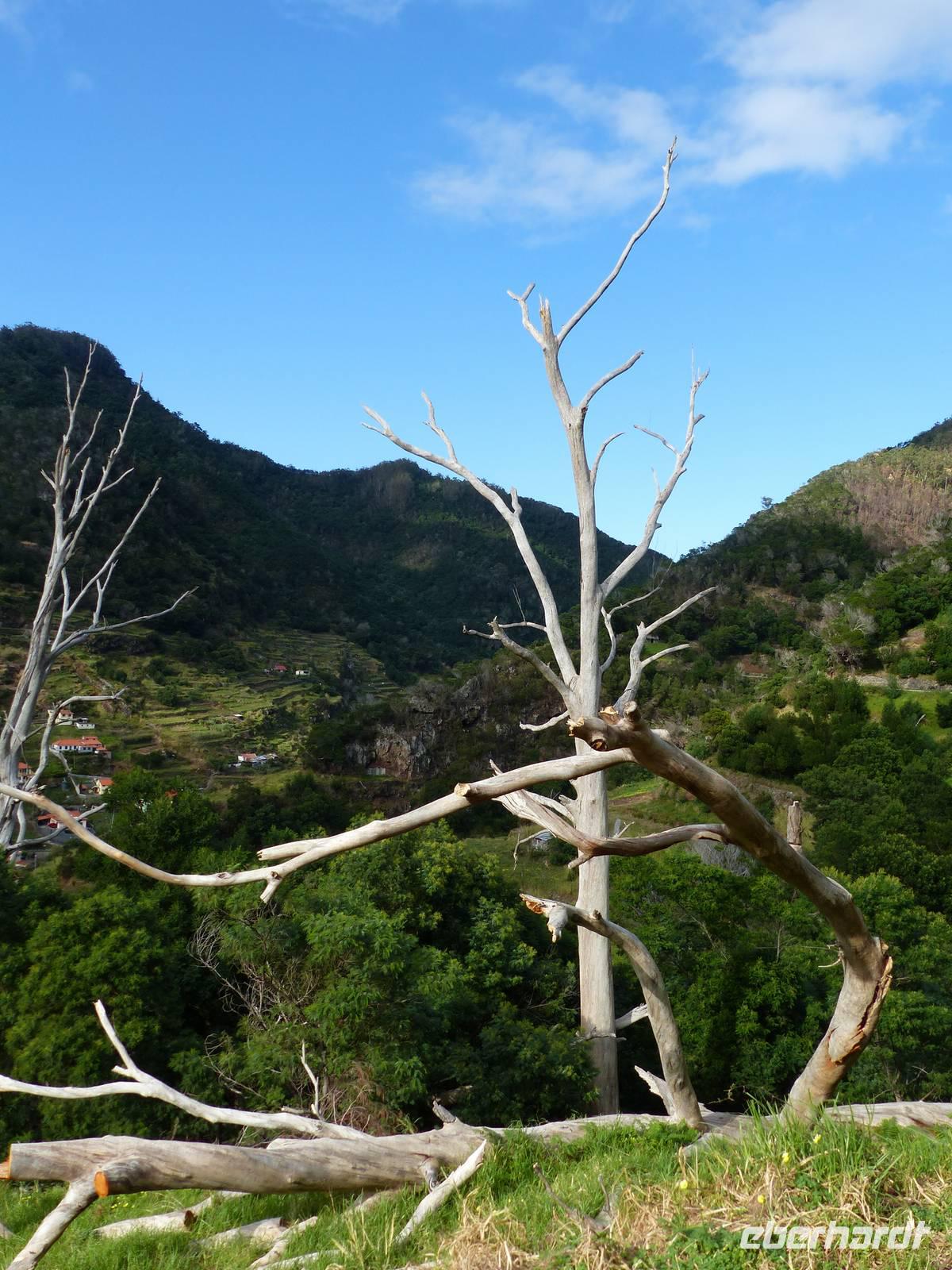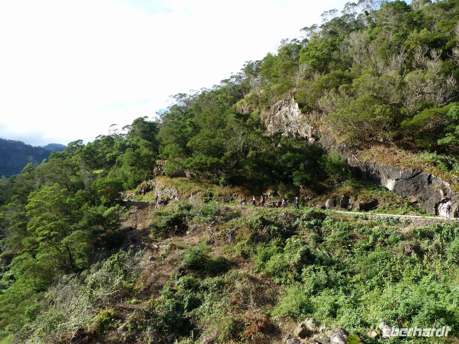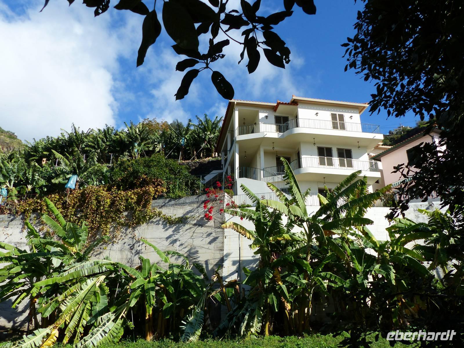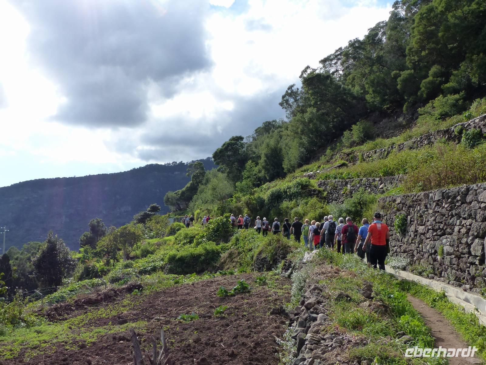 An der Südküste entlang begeben wir uns nach Ponta do Sol, wo wir das „Centro de Bananicultura" besuchen. Teresa berichtet uns allerlei Wissenswertes über den Bananenanbau auf Madeira. Doch nicht nur dieses Obst steht im Vordergrund, auch ein Avocadobaum und bereits in der Blüte stehende Mangobäume erwarten uns hier. Bevor es im Anschluss etwas ins Landesinnere geht, halten wir noch für einen Fotostopp am Aussichtspunkt „Pico dos Barcelos". Hier bietet sich uns eine wunderschöne Sicht direkt auf die Stadt Funchal, welche mit 110.000 Einwohnern die Hauptstadt Madeiras ist. Passend zur Mittagszeit erreichen wir dann im Anschluss „Eiro do Serrado", wo wir erst typische Gerichte wie die „Nonnensuppe" oder eine Tomatensuppe mit Zwiebeln zu uns nehmen und dann noch etwas spazieren. Nicht zuletzt dem traumhaften Wetter zu verdanken, bietet sich uns hier ebenso ein wunderschönes Panaroma - der Blick in das Nonnental.