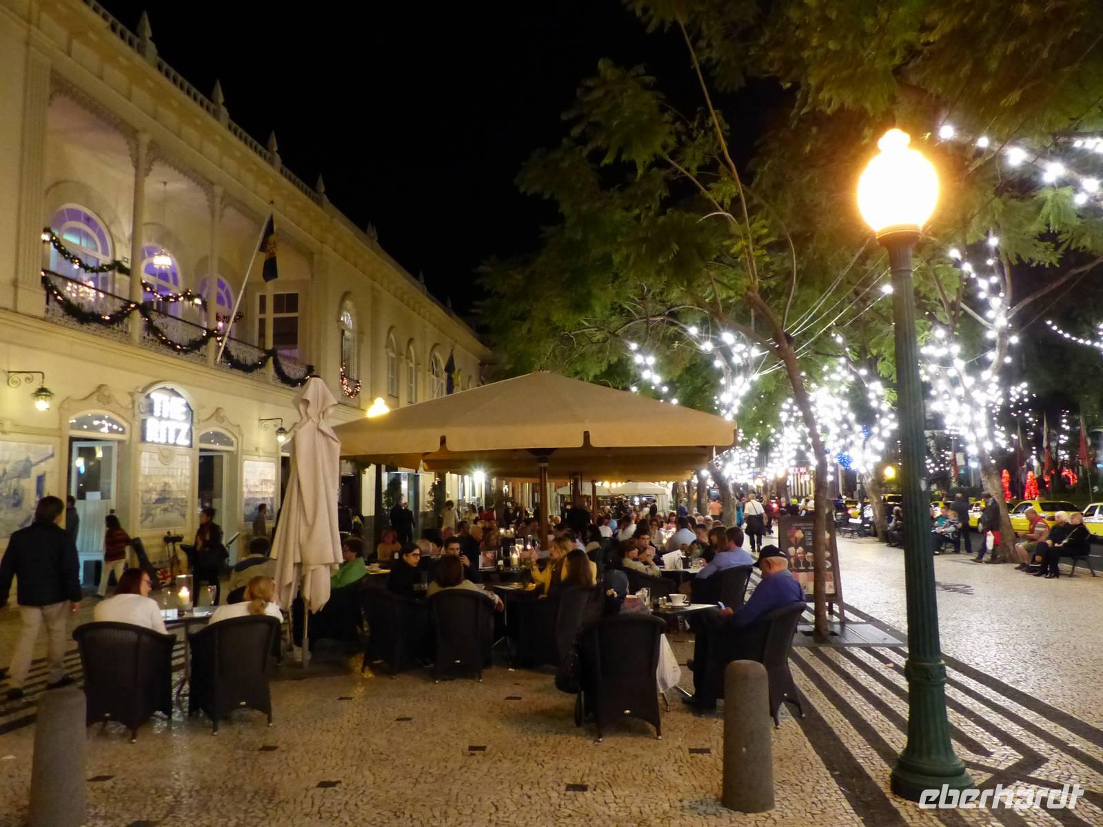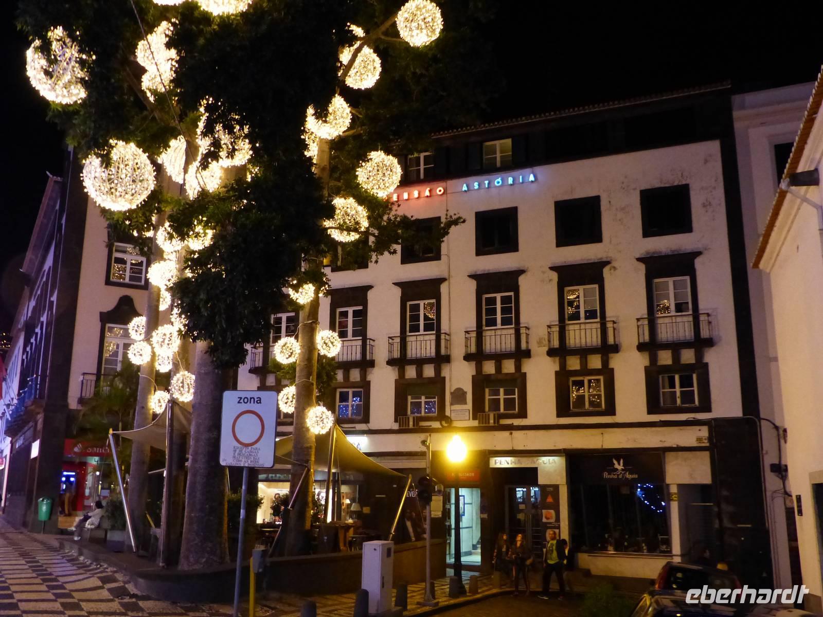 Am Nachmittag erreichen wir wieder unser Hotel, wo jeder etwas Zeit zur freien Verfügung hat. Am Abend treffen wir uns dann erneut und unternehmen eine Lichterfahrt in der Stadt Funchal. Es glitzert und leuchtet fast überall und auch wenn wir nur durch die Stadt fahren, die Lichter faszinieren jeden aus der Gruppe. Bei einem leckeren Abendessen- wir verkosten traditionelle Fleischspieße, auch Espetata genannt- lassen wir den Abend in geselliger Runde ausklingen.