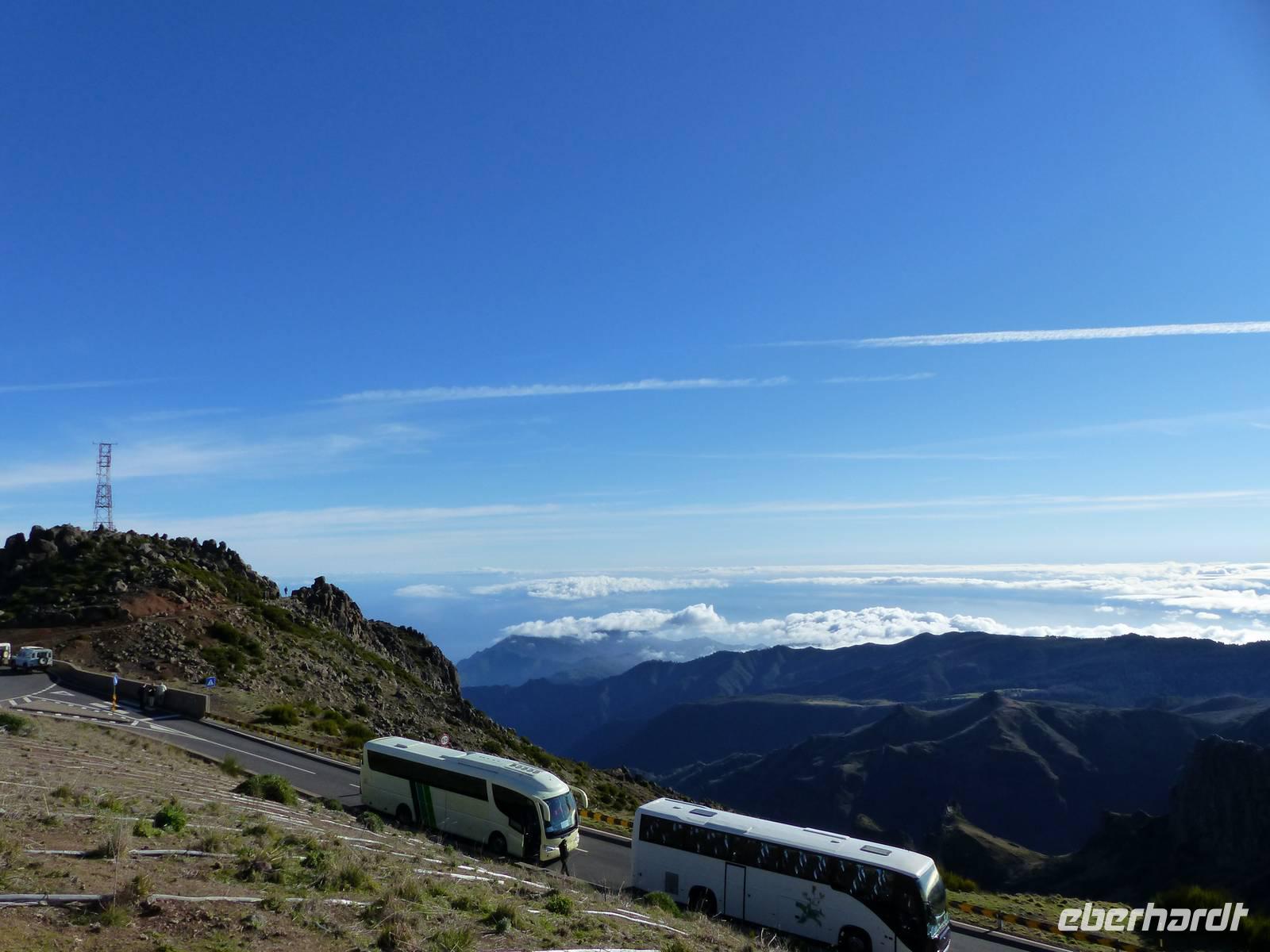 Bei strahlend blauem Himmel beginnen wir heute unsere Tagestour. Mit dem Bus geht es zuerst auf den dritthöchsten Berg Madeiras - dem Pico do Arieiro. Auf einer Höhe von 1818m genießen wir somit eine traumhafte Aussicht auf die zerklüftete Bergwelt. Langsam folgen wir dann der sich ins Tal windenden Straße und halten auf halber Strecke bei einer kleinen Forellenzucht, von wo wir eine kleine, einstündige Wanderung durch einen Lorbeerwald unternehmen. Natürlich stetig von einem Levada begleitet erreichen wir auch hier zu Fuß einen weiteren Aussichtspunkt. Hier heißt es für alle dann- bitte mit dem tollsten Lächeln einmal nach oben schauen- und knips, dieser fantastische Moment wird festgehalten. Als wir dann wieder an unserem Bus ankommen, erwartet uns noch eine kleine Überraschung-