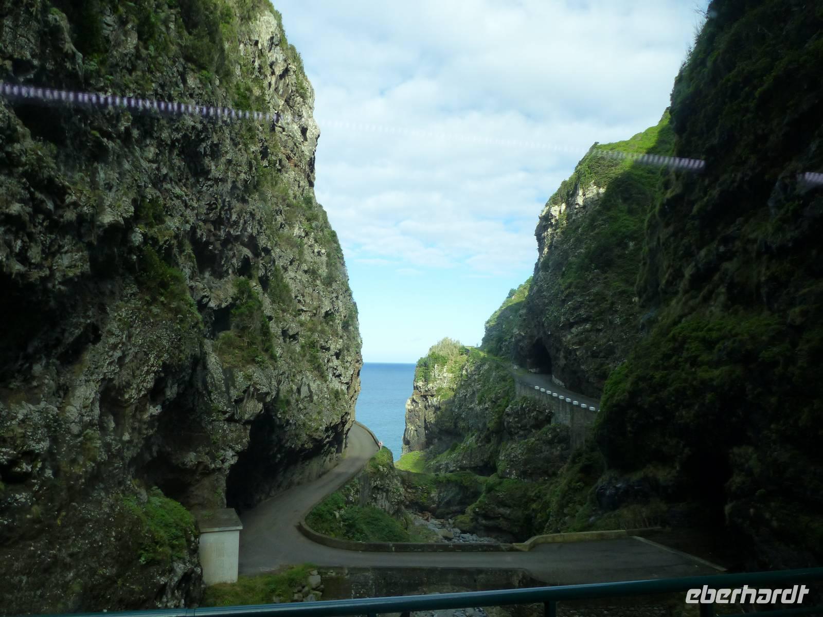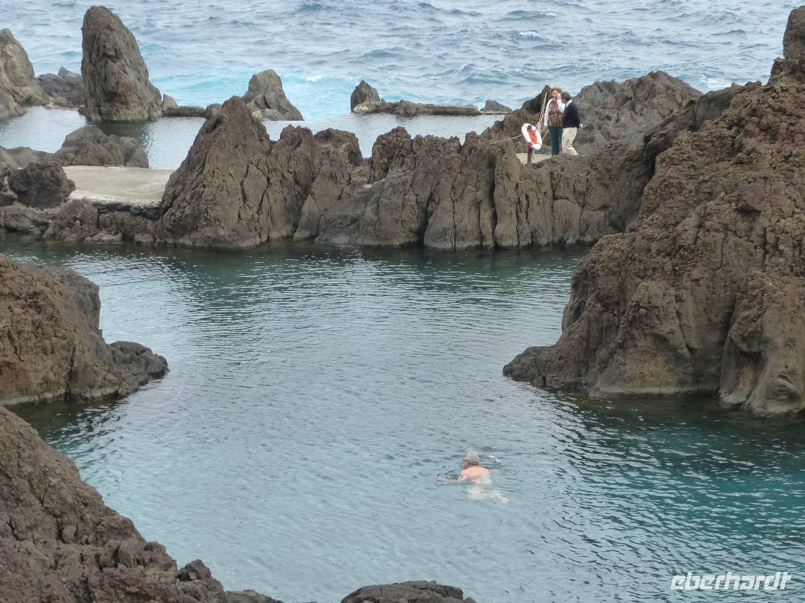Der heutige Tag steht für alle Gäste zur freien Verfügung, es sei denn, man hat sich für den fakultativen Ausflug an die Nordküste und somit für das unberührte Madeira entschieden. So kommt es, dass wir das Hotel wieder gegen 9 Uhr verlassen und zuerst entlang der Küste bis nach Ribeira Brava fahren, wo wir eine kleine Pause zum bummeln einlegen. Auch am kleinen idyllischen Ort Ponta de Sol halten wir für einen kurzen Fotostopp. Dann geht es weiter und wir entfernen uns von der Küste. Die Straßen winden sich Kurve für Kurve nach oben, bis wir auf der Hochebende Paul da Serra angekommen sind. Aufgrund von Nebelschwaden können wir leider nicht viel mehr als die eigene Hand vor Augen sehen. Es ist wirklich verrückt wie sich hier das Wetter von einer Minute zur anderen ändern kann. Doch schon auf dem weiteren Weg nach Porto Moniz löst sich der Nebel auf und die Sonne lacht uns wieder entgegen. Nach einem kurzen Stopp am Fensterfelsen, hat jeder etwas Zeit zur freien Verfügung, welche nicht nur zum Mittagessen sondern auch für einige Mutige aus der Gruppe für eine kleine Erfrischung genutzt wird. Natürliche Pools aus Lavagestein laden mit glasklarem Wasser zum Baden ein. Über Seixal, einem Weinanbaugebiet, geht es für uns weiter nach Sao Vincente, wo wir noch einen kleinen Bummel durch den kleinen Ort unternehmen. Auf dem Rückweg erleben wir dann noch einmal eine beeindruckende Landschaft bei der Überquerung des Encumeada-Passes, wo wir uns zum Abschied noch einen traditionellen Poncha, diesmal mit Zitrone und Honig schmecken lassen.