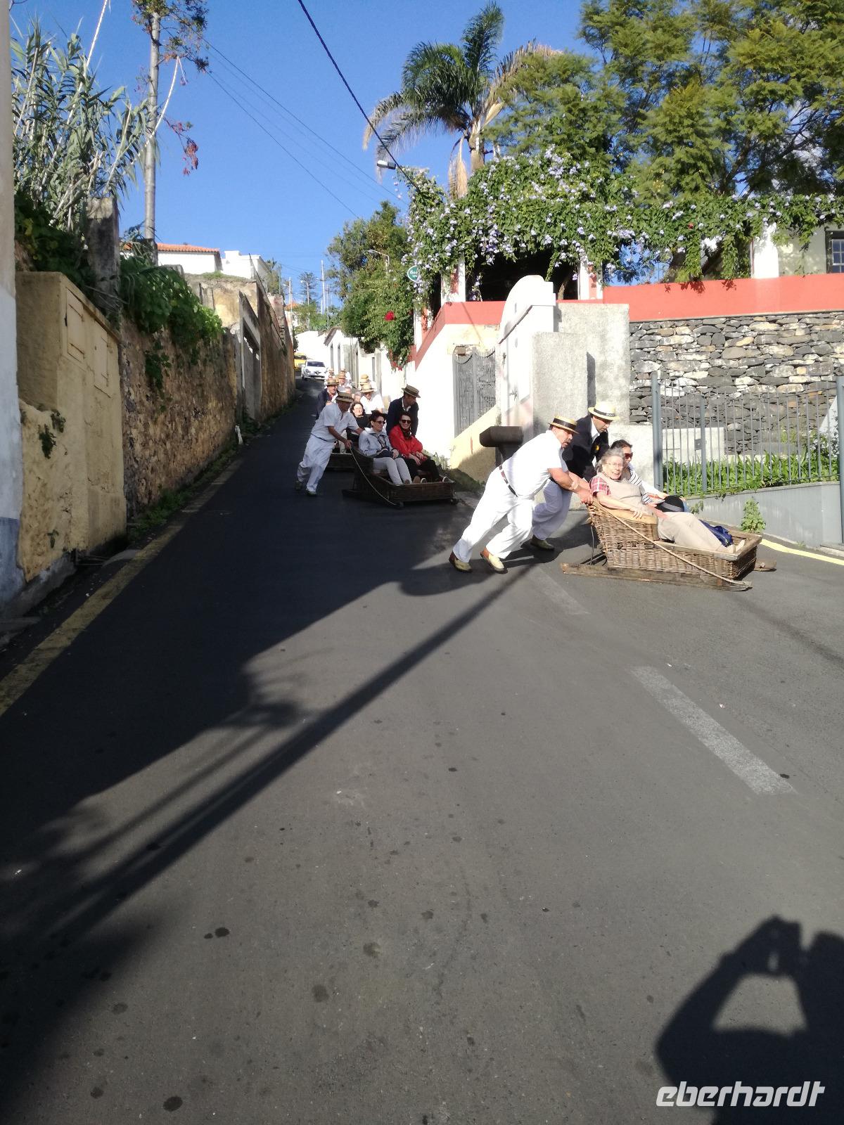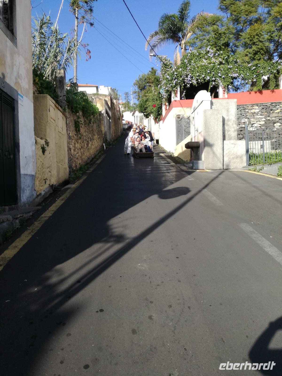 Nach einem leckeren und ausgiebigen Frühstück trafen lernten wir unsere örtliche Reiseleitung und unseren Busfahrer kennen. Gemeinsam brachen wir auf nach Funchal. Unser erster Programmpunkt war die schöne Markthalle in Funchal. Bei einem Rundgang zeigte uns Paula zunächst viele verschiedene einheimische Blumenarten in all möglicher Form und Farbe. Anschließend führte uns Paula weiter auf den Obstmarkt. Auch hier lernten wir die Vielfalt Madeiras kennen. Nachdem wir einen kurzen Überblick erhielten, gab es ein wenig Zeit zur freien Verfügung. Unsere Stadtführung führte uns weiter ins Stadtzentrum. Bei einem Stadtrundgang durch die weihnachtlich geschmückten Gassen lernten wir die Hauptstadt kennen. Bei der Blandys Weinkellerei folgte der nächste Stopp. Bei einer Führung durch die Weinkellerei berichtete uns Paula einiges über die Entstehung und Herstellung des Nationalgetränkes - Madeira Wein. Im Anschluss dürfte natürlich eine Verkostung nicht fehlen. Im Anschluss folgte ein weiterer kulinarischer Leckerbissen. Bei einem privaten Besuch eines Kräutergartens durften wir selbst hergestellte Schokolade in allen möglichen Geschmacksrichtungen kosten. Das tolle Wetter und die schöne Terrasse mit schönem Blick rundeten den Besuch ab. Der Nachmittag stand anschließend ganz zur freien Verfügung. Ein Großteil der Gruppe beschloss mit der Seilbahn nach Monte zu fahren. Nach einem kurzen Spaziergang durch die Altstadt Funchals erreichten wir die Liftanlage. Die ca. 20-minütige Fahrt ermöglichte uns einen wunderbaren Ausblick auf die Hauptstadt und die Umgebung. In Monte angekommen besuchten einige von uns den Tropischen Garten „Monte Palace", andere wiederum die Wallfahrtskirche oder genossen die atemberaubenden Ausblick bei einer Tasse Kaffee. Am Nachmittag folgte dann ein weiterer Höhepunkt. Den Rückweg nach Funchal fuhren wir mit dem berühmten Korbschlitten von Monte. Die ca. 15-minütige Fahrt ließ einigen von uns den Angstschweiß auf die Stirn treiben. Gekonnt fuhren uns die Carreiros in Tal. Es folgte ein „kleiner" Fußweg ins Tal zurück zur Markthalle. Gerade noch rechtzeitig erfuhren wir, dass die Bushaltestelle kurzfristig aufgrund des Silvesterlaufes um 500 m verschoben wurde. Glücklicherweise erreichten wir rechtzeitig den Bus, der uns entlang der alten Landstraße nach Canico fuhr. Am Abend gingen wir in Canico essen und die Gäste konnte die Spezialitäten von Madeira - den Degenfisch oder den Espetada-Spieß probieren.