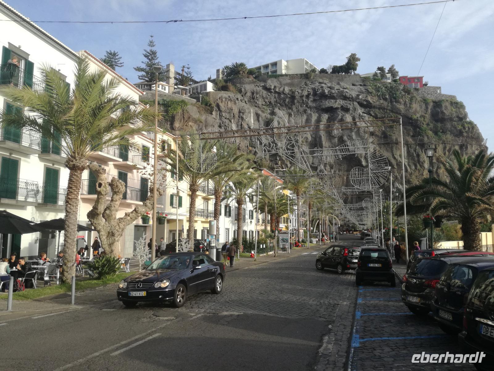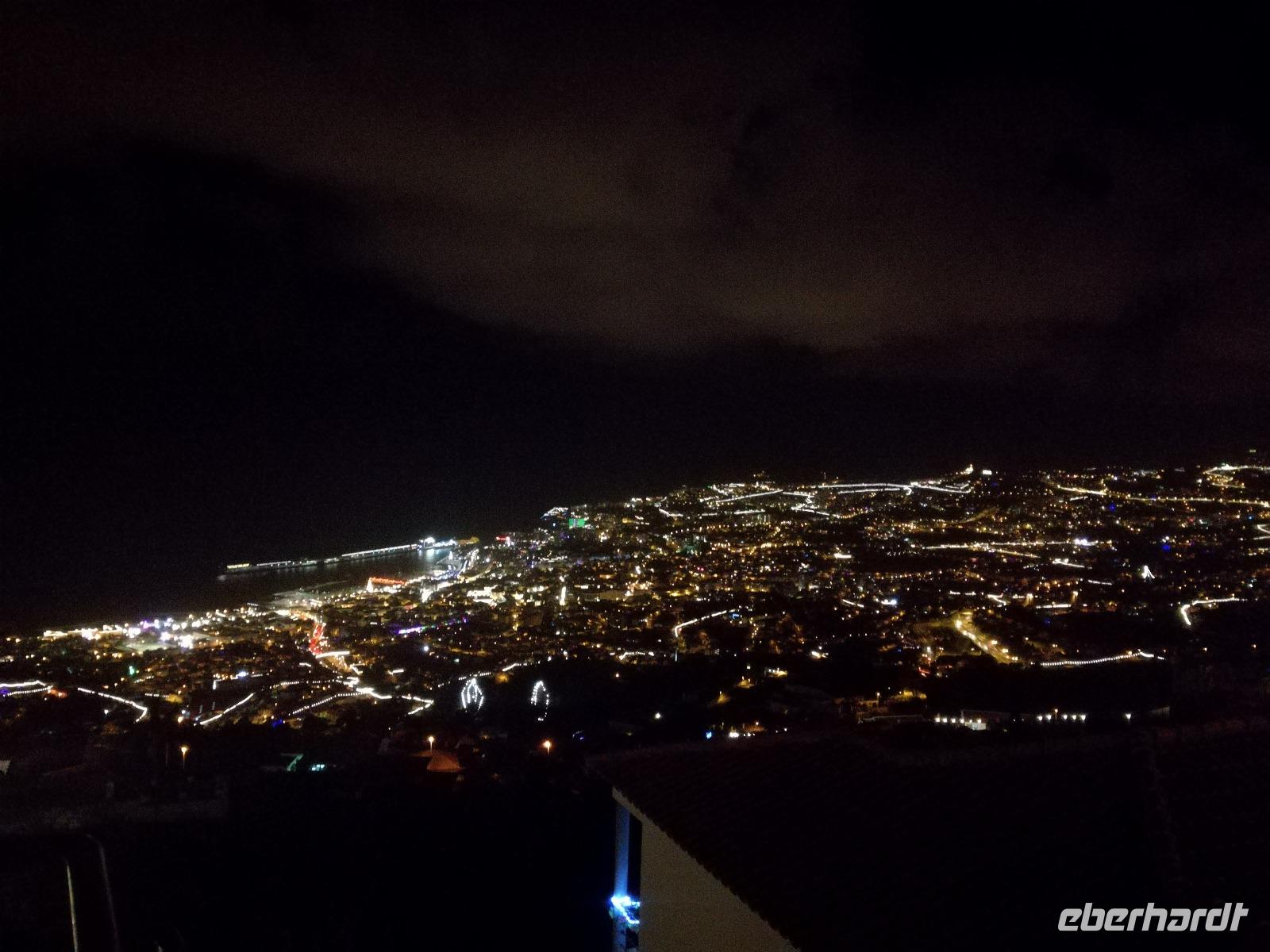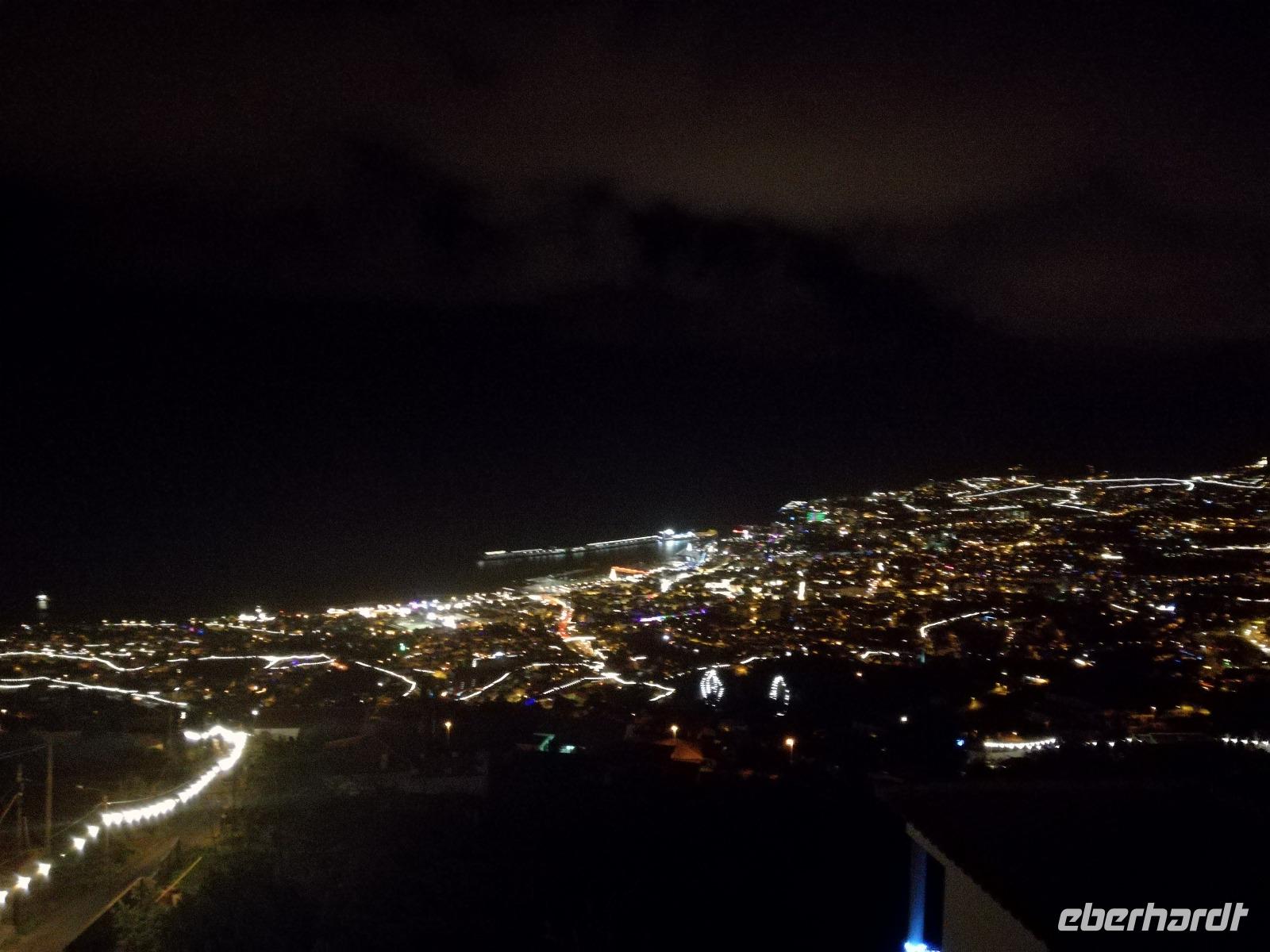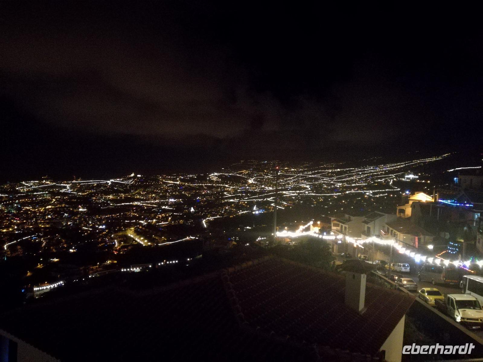 Um 9 Uhr brachen wir nach einem gemeinsamen Frühstück auf in Richtung Funchal. Am Aussichtspunkt Pico dos Barcelos machten wir einen ersten Stopp. Von hier aus bekamen wir einen herrlichen Ausblick auf die Bucht von Funchal, sowie die Hauptstadt und größte Stadt der Insel. Anschließend fuhren wir weiter nach Eira do Serrado. Die kleine Straße führte uns immer entlang oberhalb des Nonnentals, von wir einen hervorragenden Ausblick hatten. In Eira do Serrado bekamen wir einen weiteren tollen Ausblick in das Nonnental. Tief unten im Tal befindet sich das Dorf Curral das Freiras. Von der Aussichtsplattform erscheint das Dorf wie ein kleines Spielzeugdörfchen in der Ferne. Nach unserem Aufenthalt in Eiro do Serrado fuhren wir weiter nach Camara de Lobos. Das malerische Fischerdörfchen inspirierte bereits Winston Churchill. Bei einem Dorfrundgang zeigte uns Paula den Hafen, die kleine Kirche und den Churchill Place, von dem Churchill Camara de Lobos malte. Weiter führte uns unsere Route zur höchsten Steilklippe Europas. Beim Cabo Girao wurde eine durchsichtige Plattform errichtet. Von hier aus hatten wir einen einmaligen Blick und konnten die gewaltige Steilklippenformation bestaunen. Nach einem Mittagessen in Ponto do Sol fuhren wir zum Centro de Bananicultura. Paula zeigte uns die Anlage und erklärte uns alles über den Bananenanbau, die Züchtung und den Lebenszyklus der Bananenpflanzen. Am Nachmittag genossen wir ein wenig Freizeit in unserem Hotel, eher es am Abend zurück in die Hauptstadt ging. Unser Spezialitäten-Abendessen nahmen wir über den Dächern von Funchal ein. Die Espetata-Spieße sind ein traditionelles Gericht der Insel. Auf der Dachterrasse konnte man nochmals den wundervollen Ausblick über Funchal genießen und konnte bereits erahnen, was die anschließende Lichterfahrt für uns bereit hält. Vom Restaurant fuhren wir entlang wundervoll geschmückter Straßen, bezaubernd beleuchteter Kirchen und schön geschmückten Park durch Funchal. Wir sahen das schön angeleuchtete Kasino und das Haus des Präsidenten. Die ganze Stadt wirke wie ein bezaubernd dekoriertes Lichtermeer. Völlig entzückt fuhren wir zurück zum Hotel.