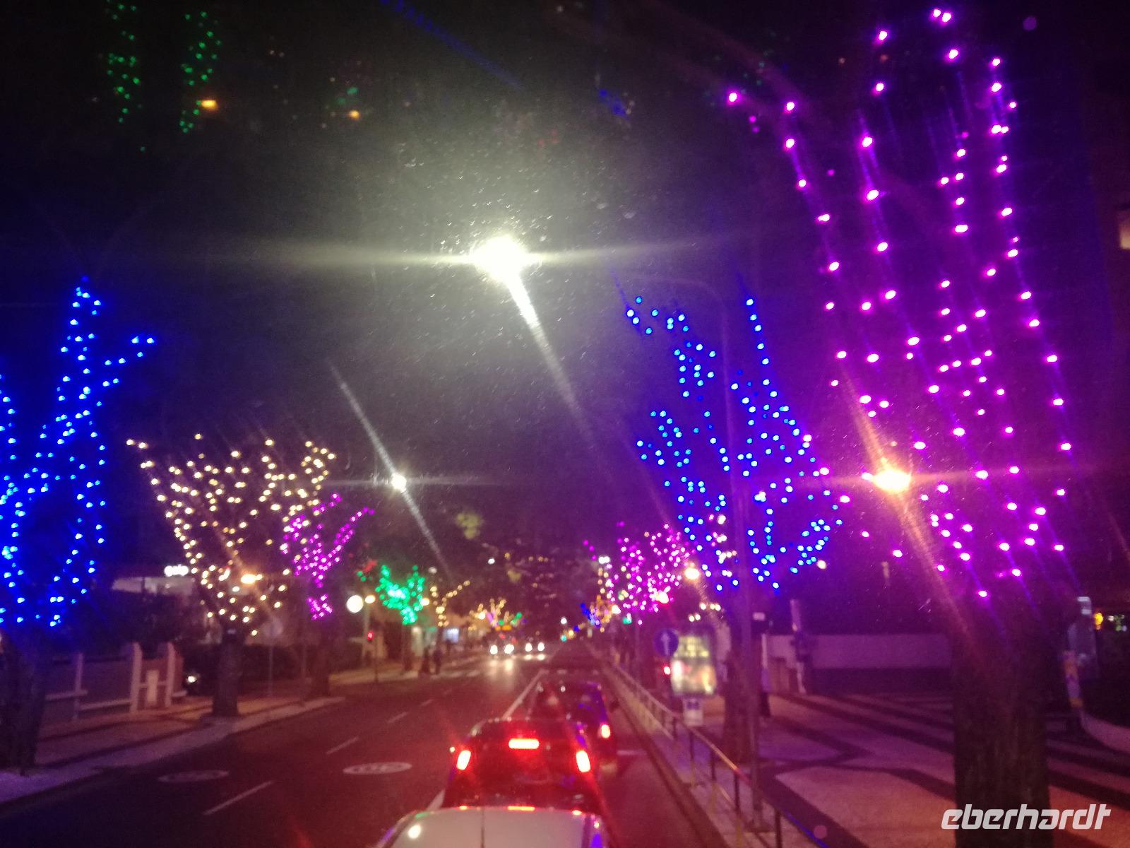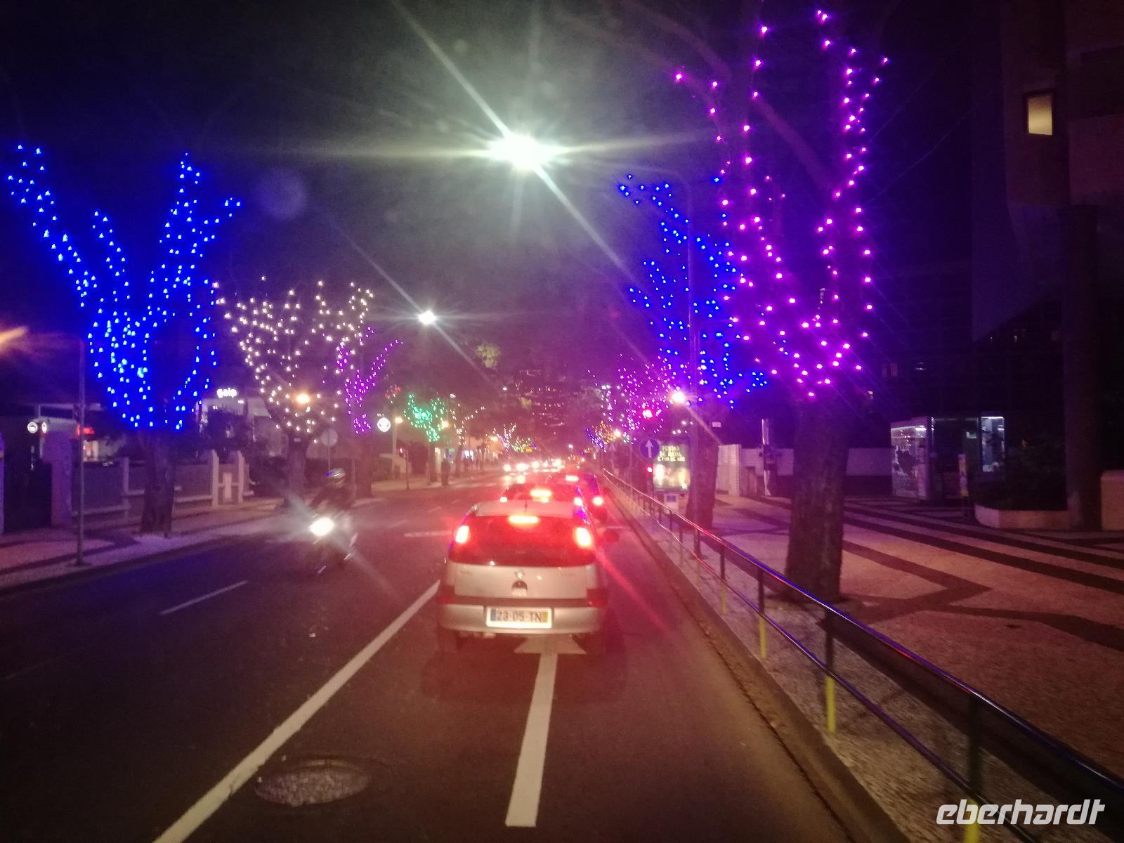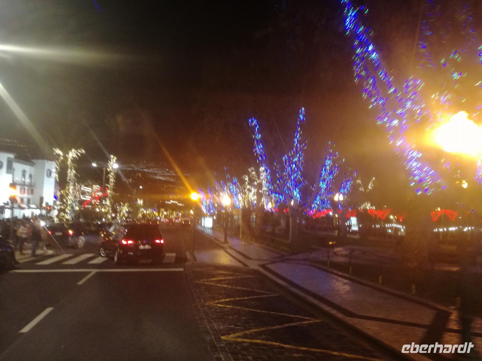 Um 9 Uhr brachen wir nach einem gemeinsamen Frühstück auf in Richtung Funchal. Am Aussichtspunkt Pico dos Barcelos machten wir einen ersten Stopp. Von hier aus bekamen wir einen herrlichen Ausblick auf die Bucht von Funchal, sowie die Hauptstadt und größte Stadt der Insel. Anschließend fuhren wir weiter nach Eira do Serrado. Die kleine Straße führte uns immer entlang oberhalb des Nonnentals, von wir einen hervorragenden Ausblick hatten. In Eira do Serrado bekamen wir einen weiteren tollen Ausblick in das Nonnental. Tief unten im Tal befindet sich das Dorf Curral das Freiras. Von der Aussichtsplattform erscheint das Dorf wie ein kleines Spielzeugdörfchen in der Ferne. Nach unserem Aufenthalt in Eiro do Serrado fuhren wir weiter nach Camara de Lobos. Das malerische Fischerdörfchen inspirierte bereits Winston Churchill. Bei einem Dorfrundgang zeigte uns Paula den Hafen, die kleine Kirche und den Churchill Place, von dem Churchill Camara de Lobos malte. Weiter führte uns unsere Route zur höchsten Steilklippe Europas. Beim Cabo Girao wurde eine durchsichtige Plattform errichtet. Von hier aus hatten wir einen einmaligen Blick und konnten die gewaltige Steilklippenformation bestaunen. Nach einem Mittagessen in Ponto do Sol fuhren wir zum Centro de Bananicultura. Paula zeigte uns die Anlage und erklärte uns alles über den Bananenanbau, die Züchtung und den Lebenszyklus der Bananenpflanzen. Am Nachmittag genossen wir ein wenig Freizeit in unserem Hotel, eher es am Abend zurück in die Hauptstadt ging. Unser Spezialitäten-Abendessen nahmen wir über den Dächern von Funchal ein. Die Espetata-Spieße sind ein traditionelles Gericht der Insel. Auf der Dachterrasse konnte man nochmals den wundervollen Ausblick über Funchal genießen und konnte bereits erahnen, was die anschließende Lichterfahrt für uns bereit hält. Vom Restaurant fuhren wir entlang wundervoll geschmückter Straßen, bezaubernd beleuchteter Kirchen und schön geschmückten Park durch Funchal. Wir sahen das schön angeleuchtete Kasino und das Haus des Präsidenten. Die ganze Stadt wirke wie ein bezaubernd dekoriertes Lichtermeer. Völlig entzückt fuhren wir zurück zum Hotel.