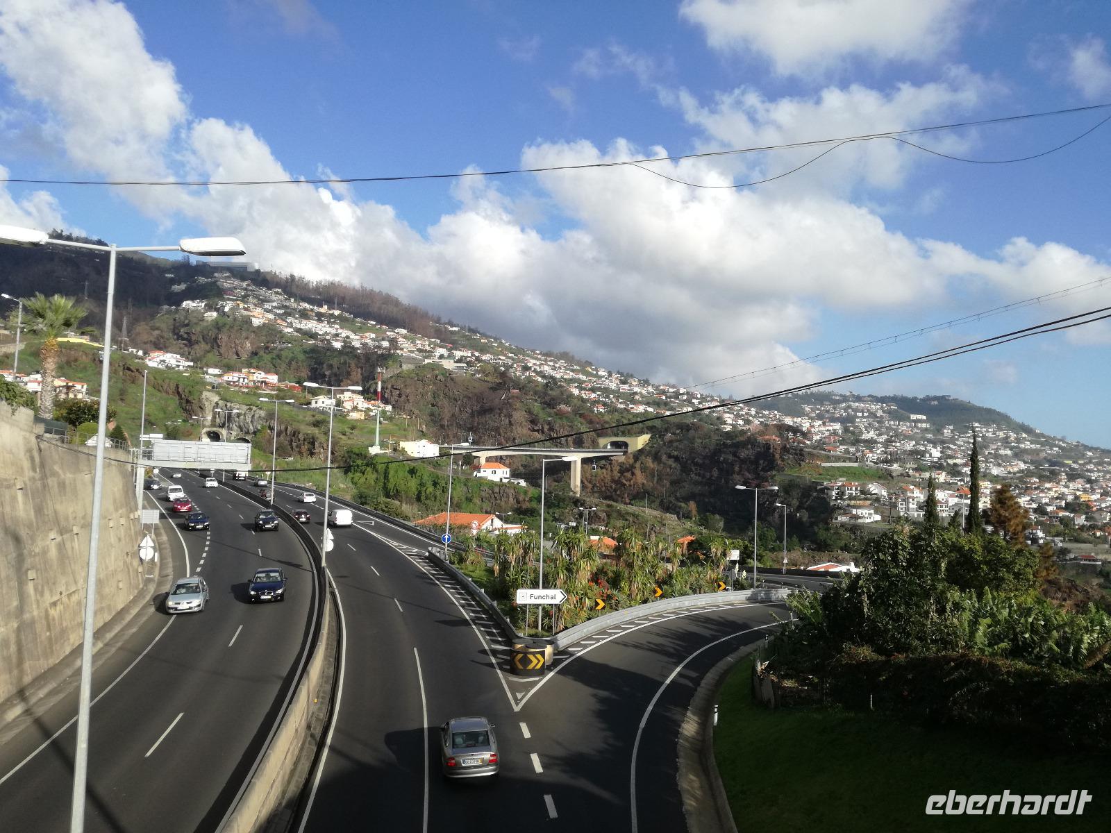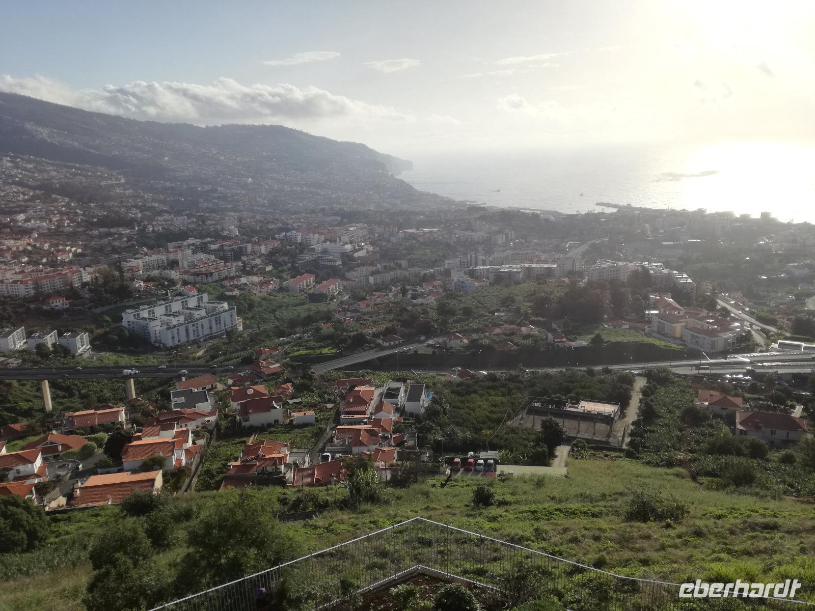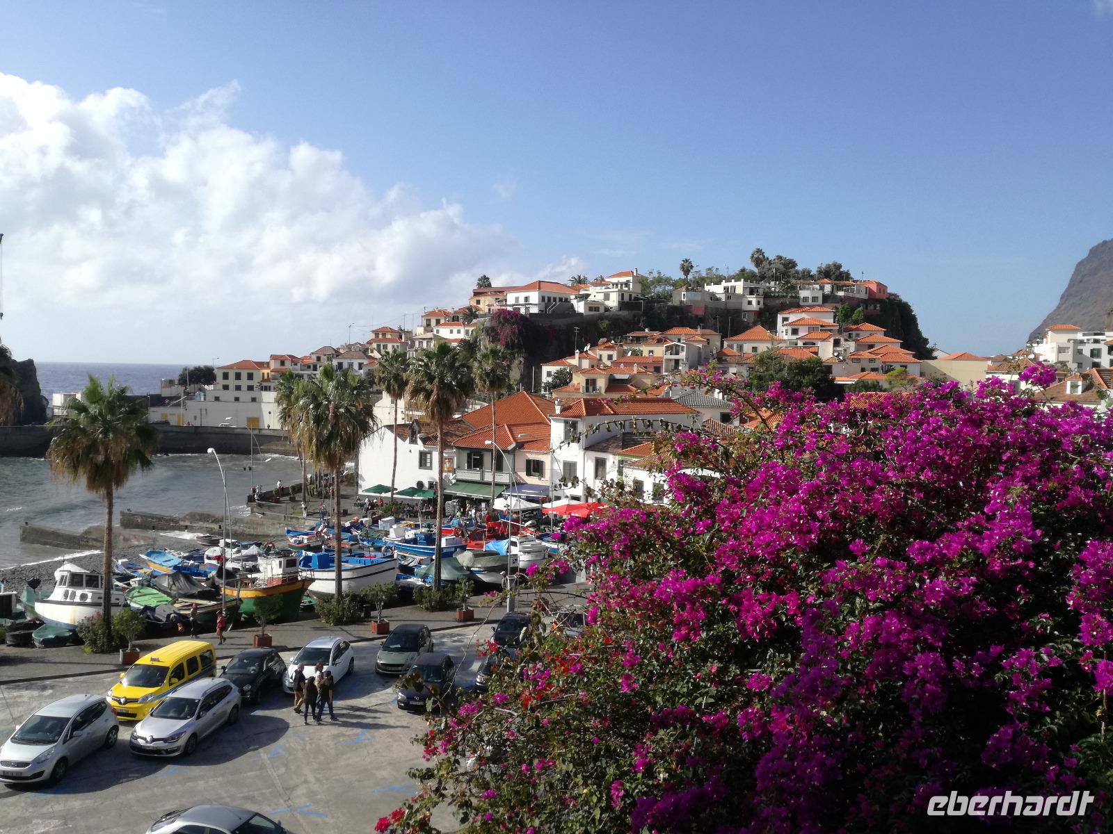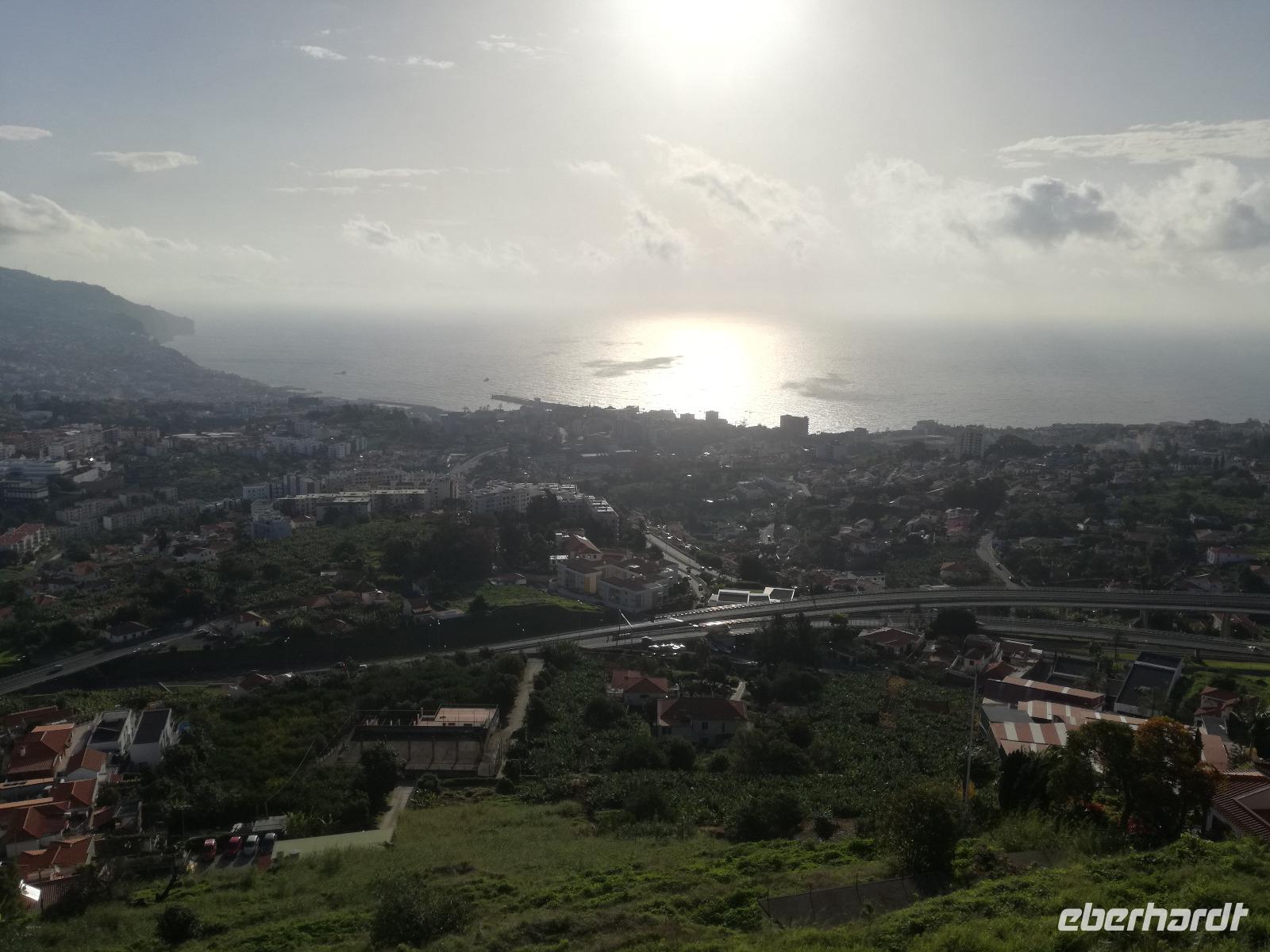 Um 9 Uhr brachen wir nach einem gemeinsamen Frühstück auf in Richtung Funchal. Am Aussichtspunkt Pico dos Barcelos machten wir einen ersten Stopp. Von hier aus bekamen wir einen herrlichen Ausblick auf die Bucht von Funchal, sowie die Hauptstadt und größte Stadt der Insel. Anschließend fuhren wir weiter nach Eira do Serrado. Die kleine Straße führte uns immer entlang oberhalb des Nonnentals, von wir einen hervorragenden Ausblick hatten. In Eira do Serrado bekamen wir einen weiteren tollen Ausblick in das Nonnental. Tief unten im Tal befindet sich das Dorf Curral das Freiras. Von der Aussichtsplattform erscheint das Dorf wie ein kleines Spielzeugdörfchen in der Ferne. Nach unserem Aufenthalt in Eiro do Serrado fuhren wir weiter nach Camara de Lobos. Das malerische Fischerdörfchen inspirierte bereits Winston Churchill. Bei einem Dorfrundgang zeigte uns Paula den Hafen, die kleine Kirche und den Churchill Place, von dem Churchill Camara de Lobos malte. Weiter führte uns unsere Route zur höchsten Steilklippe Europas. Beim Cabo Girao wurde eine durchsichtige Plattform errichtet. Von hier aus hatten wir einen einmaligen Blick und konnten die gewaltige Steilklippenformation bestaunen. Nach einem Mittagessen in Ponto do Sol fuhren wir zum Centro de Bananicultura. Paula zeigte uns die Anlage und erklärte uns alles über den Bananenanbau, die Züchtung und den Lebenszyklus der Bananenpflanzen. Am Nachmittag genossen wir ein wenig Freizeit in unserem Hotel, eher es am Abend zurück in die Hauptstadt ging. Unser Spezialitäten-Abendessen nahmen wir über den Dächern von Funchal ein. Die Espetata-Spieße sind ein traditionelles Gericht der Insel. Auf der Dachterrasse konnte man nochmals den wundervollen Ausblick über Funchal genießen und konnte bereits erahnen, was die anschließende Lichterfahrt für uns bereit hält. Vom Restaurant fuhren wir entlang wundervoll geschmückter Straßen, bezaubernd beleuchteter Kirchen und schön geschmückten Park durch Funchal. Wir sahen das schön angeleuchtete Kasino und das Haus des Präsidenten. Die ganze Stadt wirke wie ein bezaubernd dekoriertes Lichtermeer. Völlig entzückt fuhren wir zurück zum Hotel.