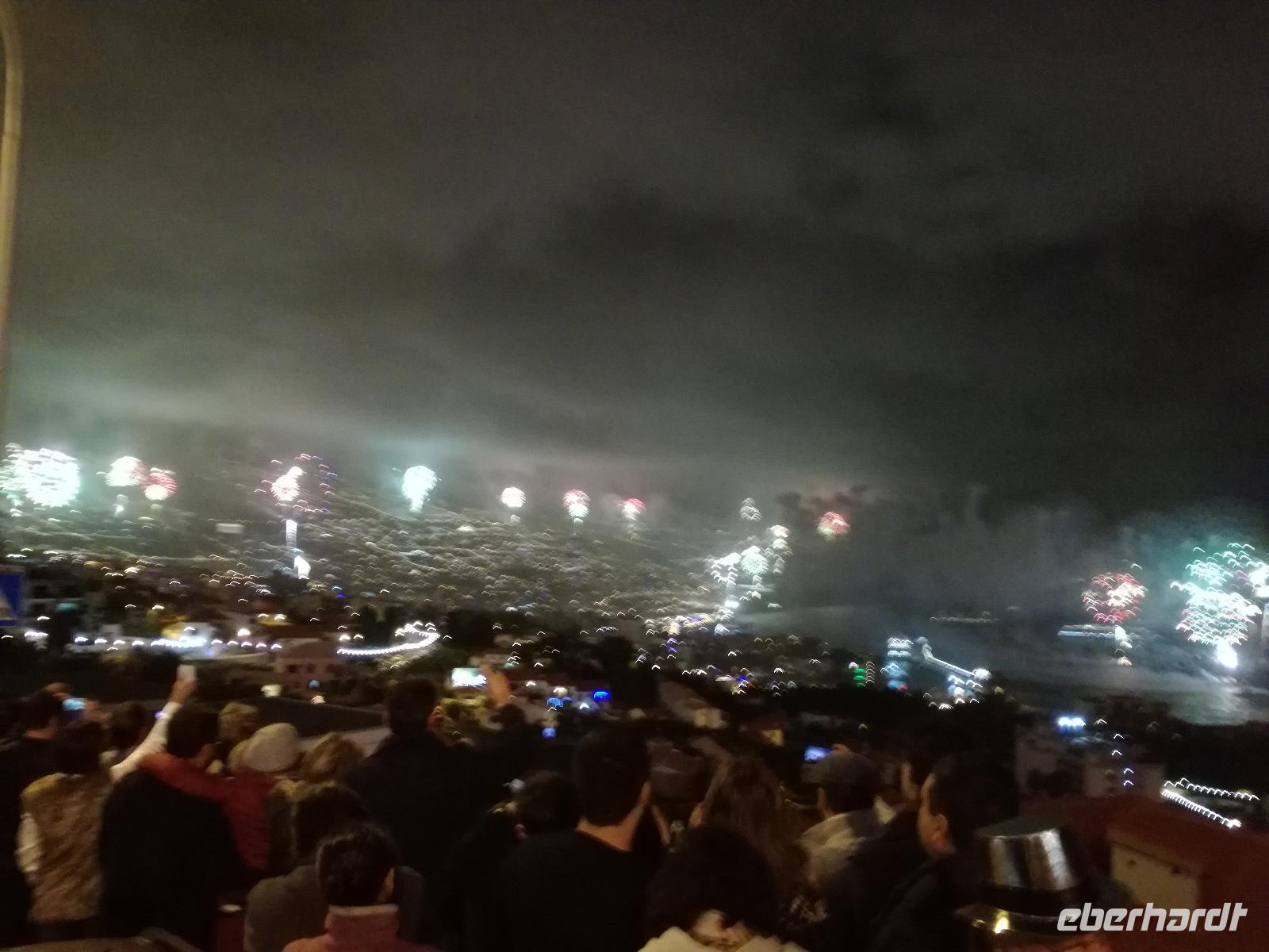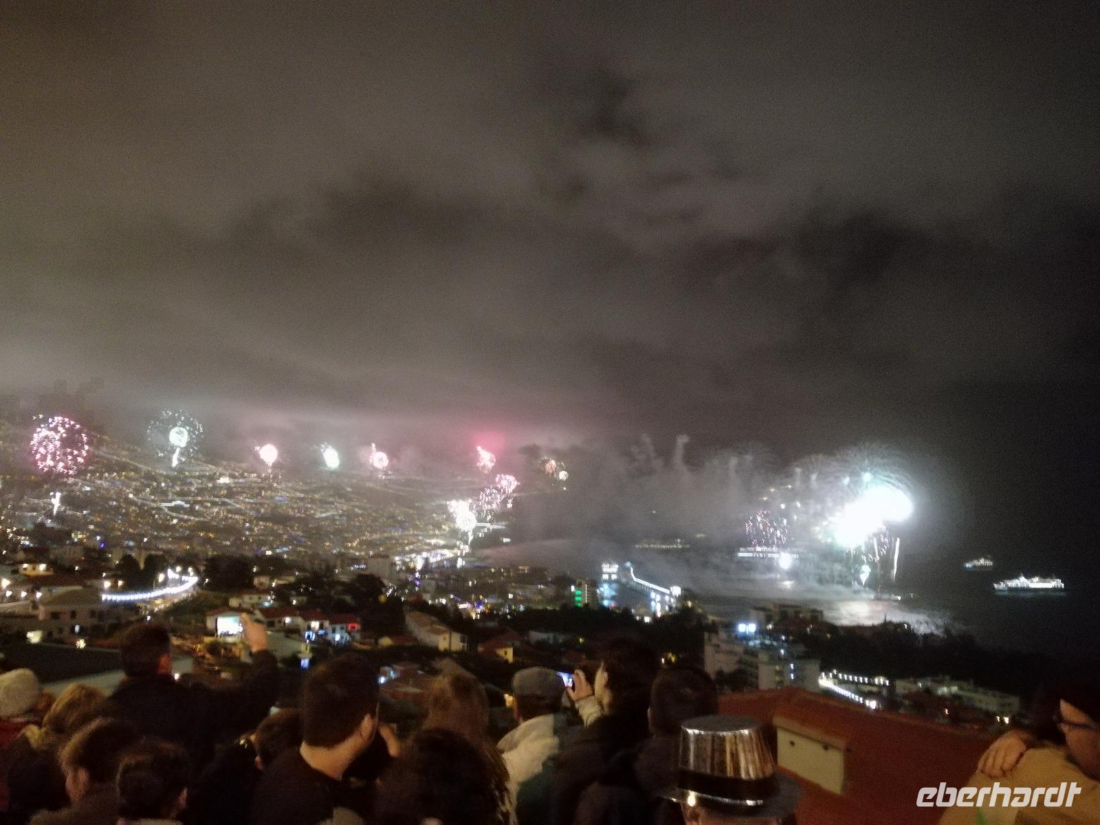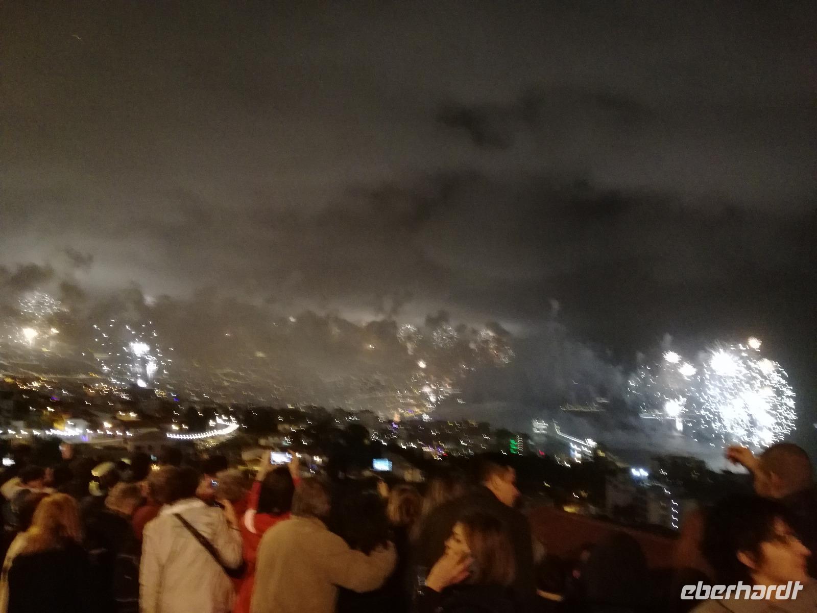 Der letzte Tag des Jahres stand ganz im Zeichen der wunderschönen Gärten Madeiras. Nach dem Frühstück brachen wir auf um den Blandys Garten, der auch Palheiro Gardens genannt, zu besichtigen. Die ca. 200 alten Gärten der Familie Blandy zeichnen sich durch völlig unterschiedlichen Stilrichtungen und Pflanzenarten aus. Das Areal wird durch unzähligen Gärtner gehegt und gepflegt. Unsere Reiseleiterin Paula erklärte uns ausführlich die einzelnen Blumen und Pflanzenarten. Besonders schön blühte die Kamelien Allee in voller Pracht. Am unteren Ende des Gartens konnte man zudem den bekanntesten Golfplatz Madeiras sehen, der direkt an den Garten angrenzt. Einige Golfer nutzen auch die Gelegenheit und übernachten im Landhaus der Familie Blandy. Nach der ausgiebigen Besichtigung ging es weiter zum Quinta boa Vista. Der imposante Orchideengarten liegt wunderschön auf einem Hang und mit abermals einem schönen Blick über Funchal. Bei einer Führung erklärte uns Paula und der englische Besitzer Michael alles über die Züchtung der Orchidee, ihren Lebensraum und Eigenschaften. Nach dieser interessanten Führung fuhren wir zurück zum Hotel. Den Nachmittag nutzen wir zur Regeneration und Entspannung. Am Abend wurden mit einem Sekt zum Gala Dinner empfangen. Nachdem alle Platz gefunden hatten, testeten wir die Silvester-Hüte und Trompeten aus. Als Vorspeise wurde uns Hummer serviert. Im Anschluss wurde das Gala-Dinner in Buffet-Form abgehalten. Zudem wurden Wein, Bier und Softgetränke serviert. Gegen 22 Uhr brachen wir auf Richtung Funchal um das Feuerwerk zu sehen. Das Feuerwerk in Madeira schaffte es sogar in Guinness Buch der Rekorde. Auf einer Aussichtsplattform hatten wir beste Sicht auf Funchal und den Hafen, wo sich mittlerweile 9 Kreuzfahrtschiffe eingefunden hatten. Um 12 Uhr stoßen wir alle mit Sekt auf das neues Jahr an. Das Feuerwerk machte seinem Ruf alle Ehre. Sprach- und fassungslos bestaunten wir das atemberaubende Feuerwerk, was die ganze Stadt zum erleuchten brachten. Gegen 0:45 Uhr fuhren wir zurück nach Canico, wo man noch den Abend an der Hotelbar ausklingen lassen konnte. In dieser Form möchte ich auch nochmal allen Gästen ein frohes neues Jahr 2017 wünschen.