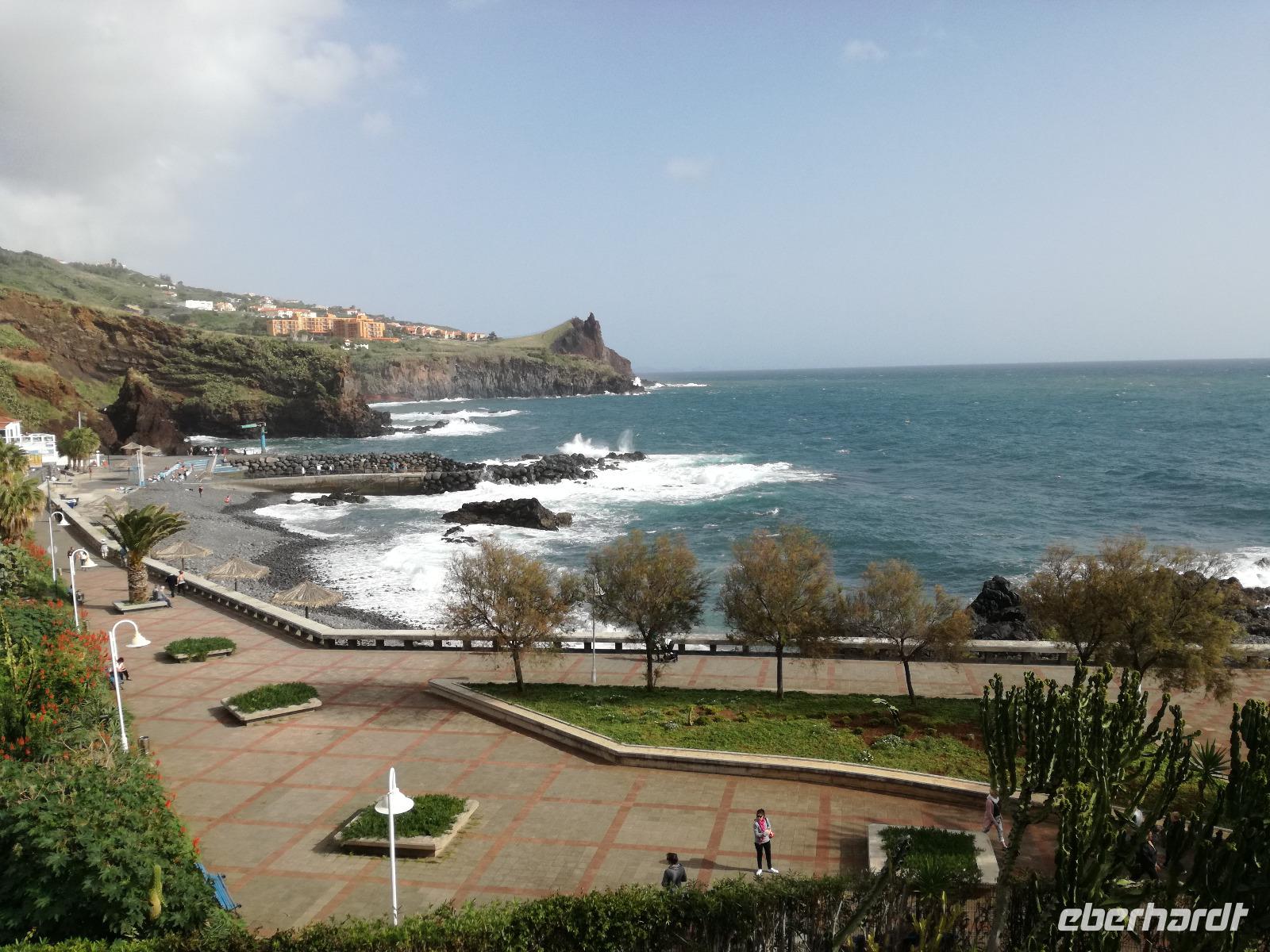 Am heutigen Tag stand der fakultative Ausflug in den Nordwesten Madeiras auf dem Programm. Viele der Gäste entschlossen sich an den Ausflug teilzunehmen. Wir fuhren entlang der Südküste bis nach Ribeira Brava. Ribeira Brava ist das kulturelle Zentrum des Westens. Hier führte uns Paula durch die Stadt. An der Kirche Igreja Matriz de Sao Bento machten wir einen Halt und besichtigten Kirche und das Stadtzentrum. Weiter führte uns der Weg über den Encumeada-Pass (1007 m)und über die Hochebene Paul da Serra (1500 m). Hier änderte sich die Landschaft wieder vollständig. Auf der Hochebene genossen wir bei tollem Wetter einen bezaubernden Rundumblick auf die immergrüne Berg- und Tallandschaft. Paula berichtete uns einiges über die Energiegewinnung, die von den Windrädern auf der Hochebene gewonnen wird. Zur Mittagszeit erreichten wir die malerische Fischerdorf Porto Moniz. Hier bekam die Gruppe genügend Zeit zur freien Verfügung. Manche Gäste probierten den leckeren schwarzen Degenfisch mit Banane- eine weitere Spezialität Madeiras. Porto Moniz ist bekannt für seine natürlichen Meeresschwimmbecken im Vulkangestein. Natürlich durfte auch hier ein Besuch nicht fehlen. Das weiteren ist es immer wieder faszinierend, wie die unberechenbare Naturgewalt des Meeres auf die schroffen Felsen der Küste trifft. Wir spazierten entlang der Promenade und ließen die Naturgewalt auf uns herein prasseln. Am Nachmittag fuhren wir entlang der Nordküste zurück. Auch hier spiegelt sich die unberechenbare Naturgewalt des Meeres wieder. Immer wieder könnten wir die unbändige Brandung an den zerklüfteten Felsen der Küste abprallen sehen. Auf unserem weiteren Weg sahen wir auch den stürmischen Wasserfall - den Brautschleier. Unser letzter Halt erfolgte im Fischerdorf Sao Vicente, was unmittelbar am Meer liegt. Hier schlenderten wir durchs Dörfchen oder genossen die ruhige Atmosphäre bei einem Kaffee oder Poncha. Am späten Nachmittag erreichten wir wieder unser Hotel in Canico. Am Abend gingen wir in Klenk Cafes essen. Das Restaurant wurde von einem deutschen Auswanderer eröffnet und bietet neben einer deutschen Küche, auch Spezialitäten Madeiras wie Degenfisch, Napfschnecken oder den Espetada-Spieß an.