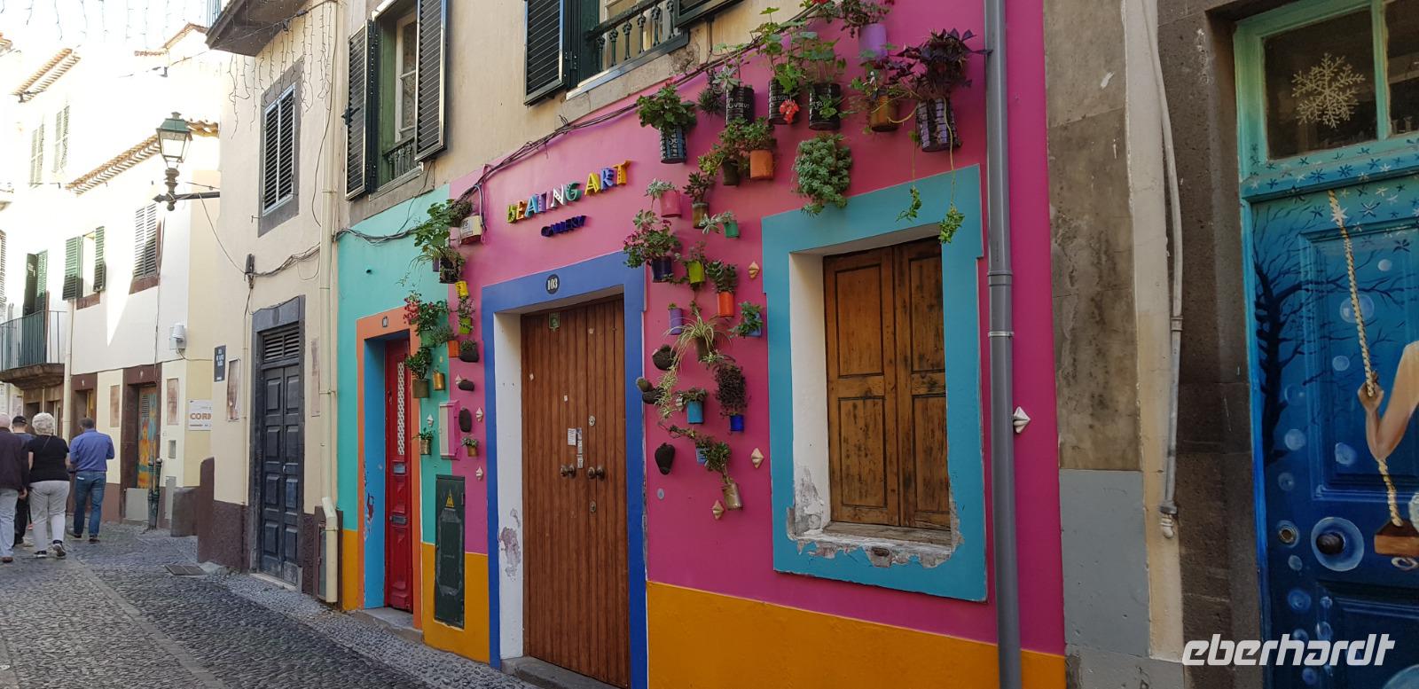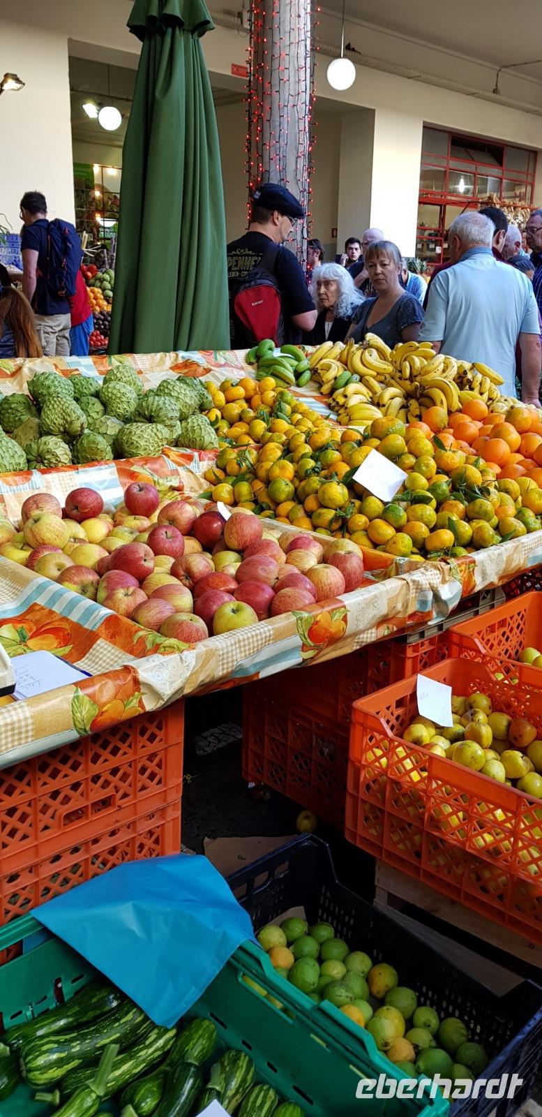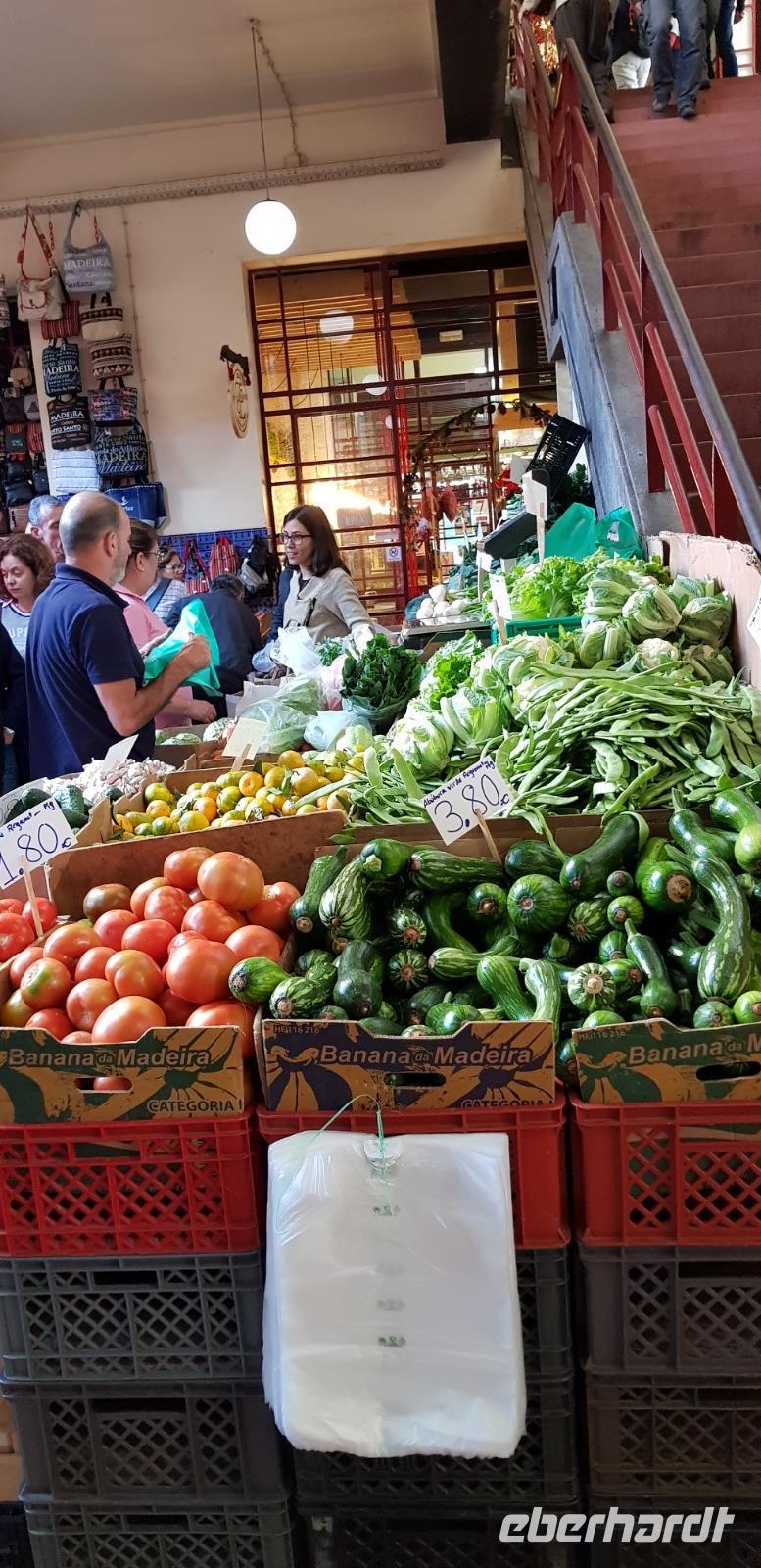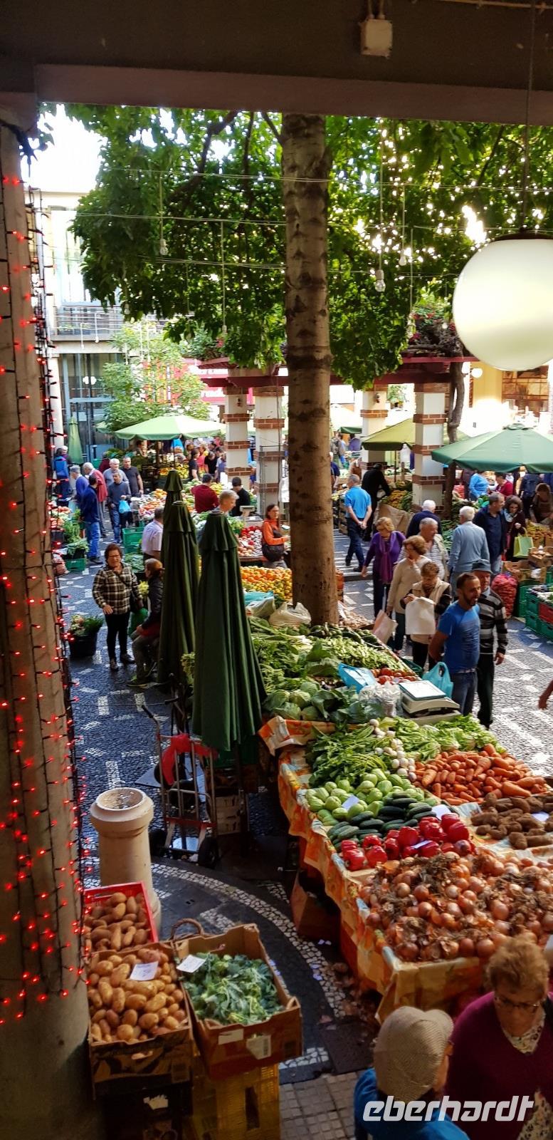 Nach der wohlverdienten Nachtruhe und einem ausgiebigen Frühstück erwartet uns Funchal, die Hauptstadt von Madeira. Gegen 9.30 Uhr brechen wir auf, um die kleinen Gassen erst einmal bei einem gemütlichen Spaziergang zu erkunden. Es erwartet uns unter anderem die Markthalle von Funchal, wo wir den typisch madeirensischen Fisch, den recht finster dreinblickenden Schwarzen Degenfisch und einige andere Arten seinesgleichen zu sehen bekommen. Weiter geht es durch den wesentlich angenehmer riechenden Teil der Halle, wo uns unser Reiseleiter Sandro viele einheimische Obst- und Gemüsesorten zeigt und erläutert. Danach geht es mit dem Bus zu Blandy´s Weinkellerei, wo der typische Madeirawein hergestellt wird und in riesigen Fässern lagert. Natürlich darf auch eine Verkostung der Spezialität nicht fehlen. Danach haben wir etwas Freizeit, um den direkt gegenüber befindlichen Weihnachtsmarkt zu besuchen. Bei frühlingshaften Temperaturen und Sonnenschein wird hier Madeirawein und Poncha anstelle des bei uns üblichen Glühweins ausgeschenkt. Mit dem Bus geht es weiter zu einem privaten Kräutergarten. Wir werden mit einem mit Schokolade garnierten Obstteller und selbstgebackenem Kuchen verköstigt. Dazu gibt es je eine Kostprobe Madeirawein, Zuckerrohrschnaps und Heidelbeerlikör. Nach einer kurzen Besichtigung des zugehörigen Kräutergartens geht es zurück zum Hotel. Am Nachmittag haben wir etwas Zeit zum Entspannen bevor wir von Hilario noch einmal offiziell begrüßt werden, er gibt uns Einblicke in unser Programm für die kommende Woche auf der schönen Blumeninsel Madeira. Am Abend genießen wir den Schwarzen Degenfisch beim gemeinsamen Abendessen im Restaurant „Villa Ventura".