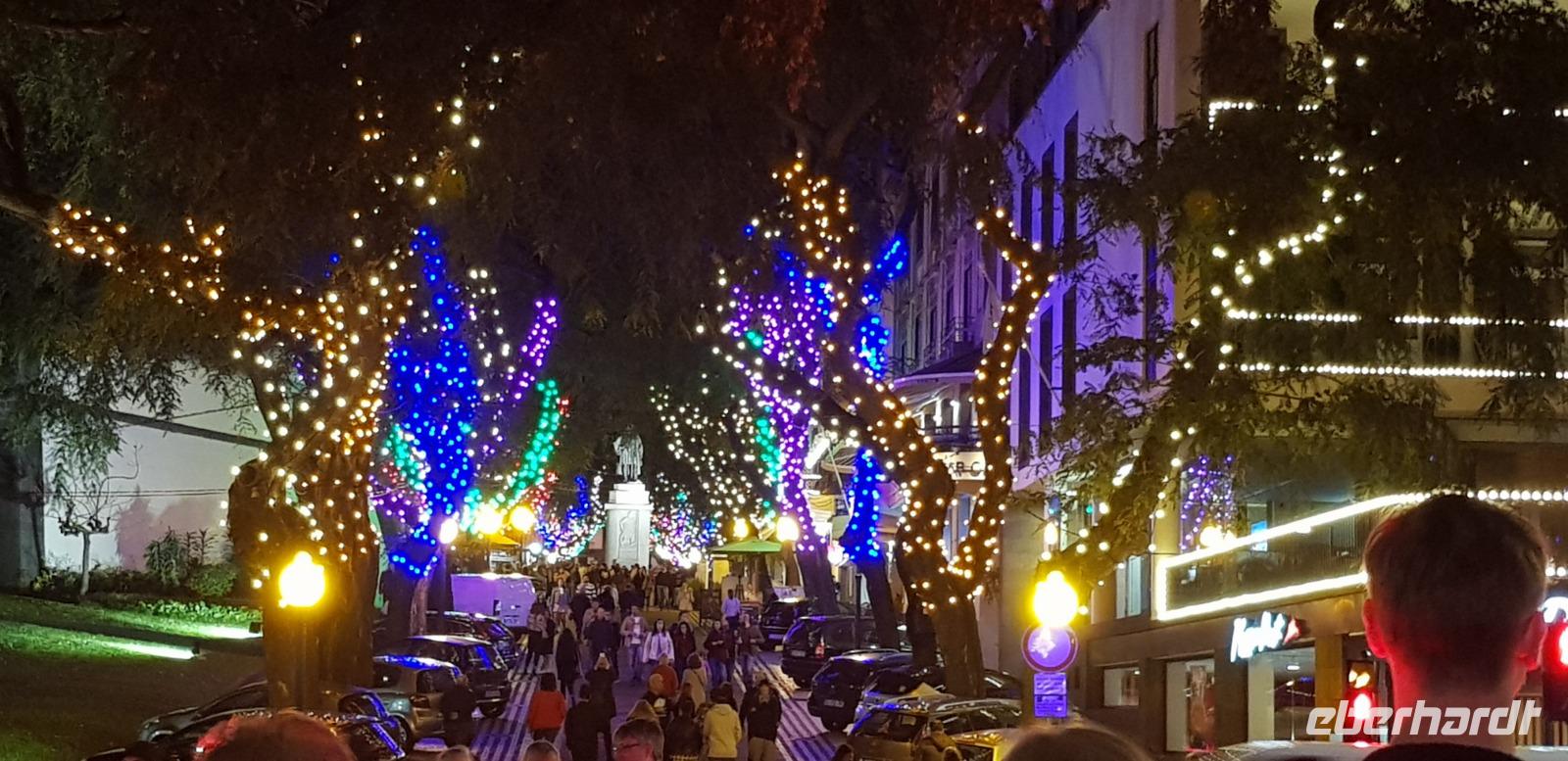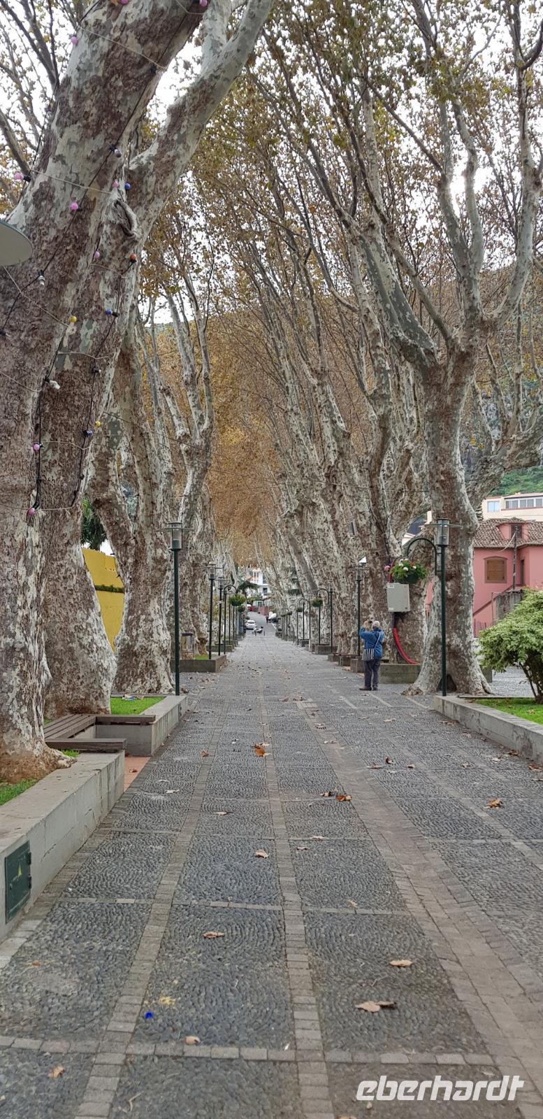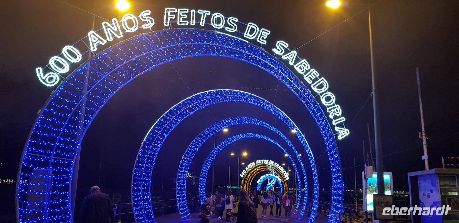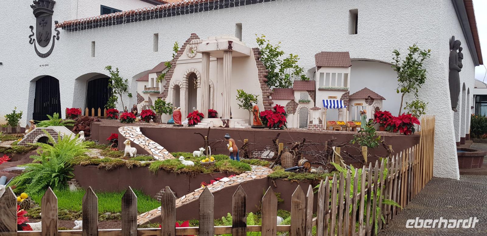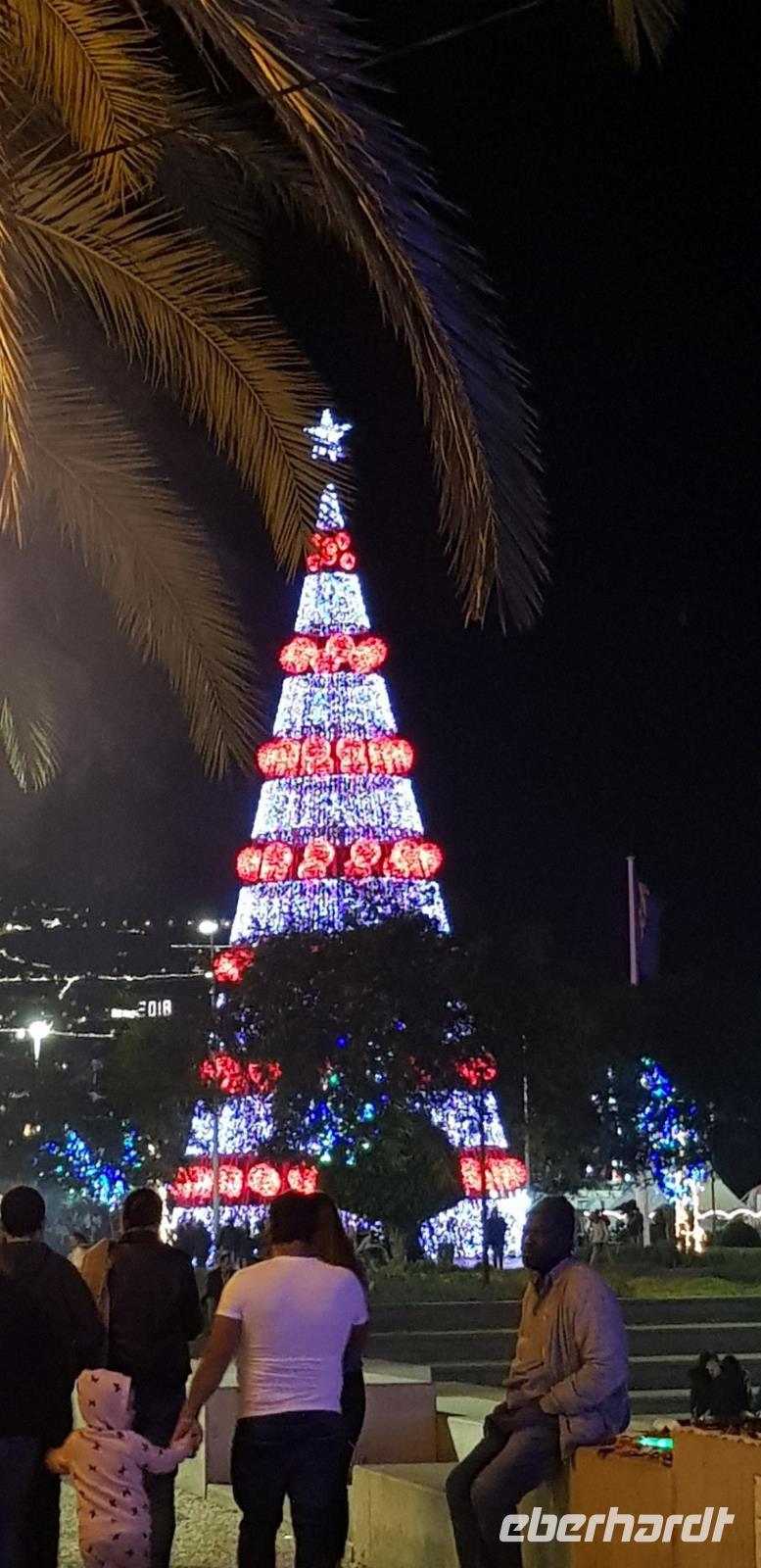 Weiter führt uns unser Ausflug nach Machico, den ältesten Ort der Insel. Wir genießen von einem Aussichtspunkt aus den Blick über den Ort und das Meer und haben im Anschluss noch die Gelegenheit, den Ort bei einem Spaziergang kennen zu lernen. Danach geht es zurück zum Hotel, wo uns noch ein paar Stunden bleiben, um uns auf den Abend vorzubereiten. Bevor wir uns bei der abendlichen Lichterfahrt das weihnachtlich beleuchtete Funchal anschauen können, werden wir in einem Restaurant zu einem typisch portugiesischen Abendessen eingeladen. Unsere Vorspeise ist eine Tomatensuppe mit pochiertem Ei, danach gibt es den typischen Espetada - am Spieß gegrilltes Rindfleisch in Knoblauchmarinade mit Salat, Pommes Frites und Polenta. Als Nachspeise bekommen wir einen Maracujapudding und einen Espresso gereicht. Im Anschluss unternimmt unser örtliche Reiseleiter Claudio noch eine schöne Rundfahrt durch das festlich beleuchtete Funchal. Am Hafen und in der ganzen Stadt leuchten überall Weihnachtsbäume, Sterne und jede Menge Lichterketten, die noch bis zum 6. Januar die Stadt bei Nacht erhellen.
