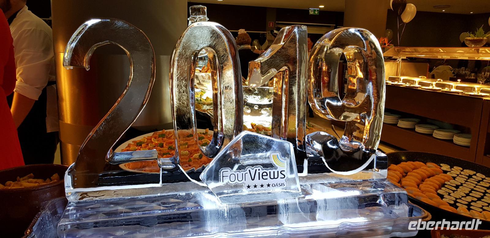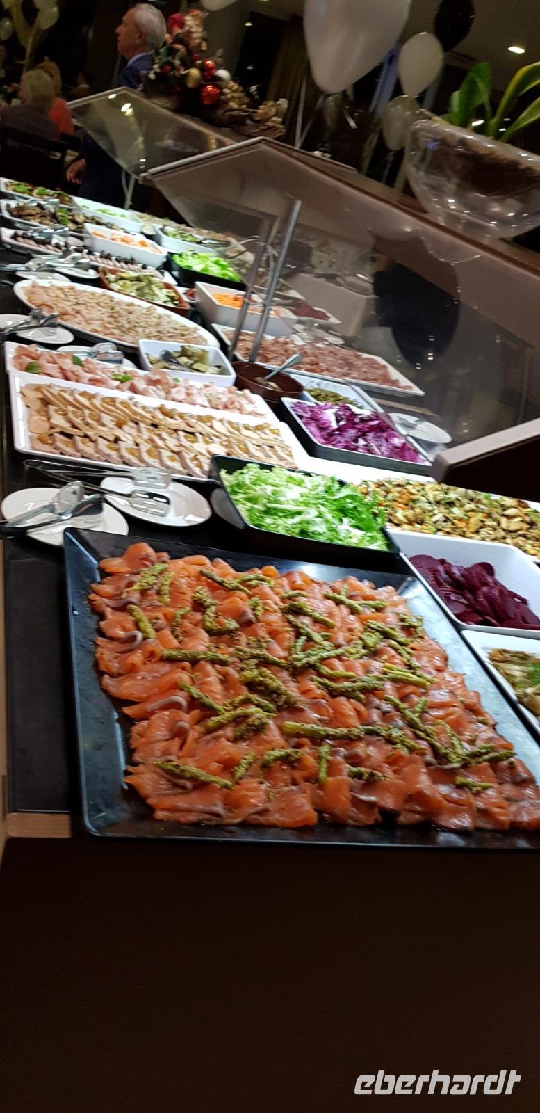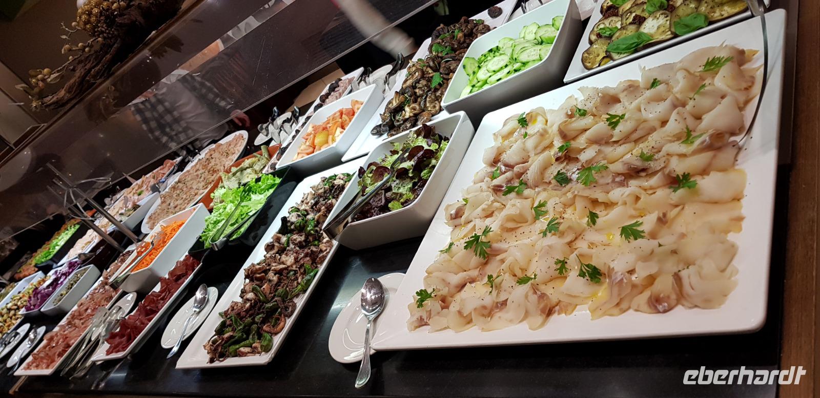 Gegen 19 Uhr stoßen wir mit einem Glas Sekt noch auf das alte Jahr an, bevor unser Dinner mit einem Hummergang beginnt. Mit zahlreichen anderen Köstlichkeiten können wir uns am Buffet nach belieben bedienen. Vom kalten Büffet, das unzählige Fisch- und Meeresfrüchtesorten, Käse oder Schinkenspezialitäten enthält, über Suppe, warme und frisch vor unseren Augen zubereitete Hauptspeisen, verschiedenste Käsespzialitäten bis hin zum Dessertbüffet bleiben keine Wünsche offen und wir schlemmen und genießen allerlei Delikatessen.