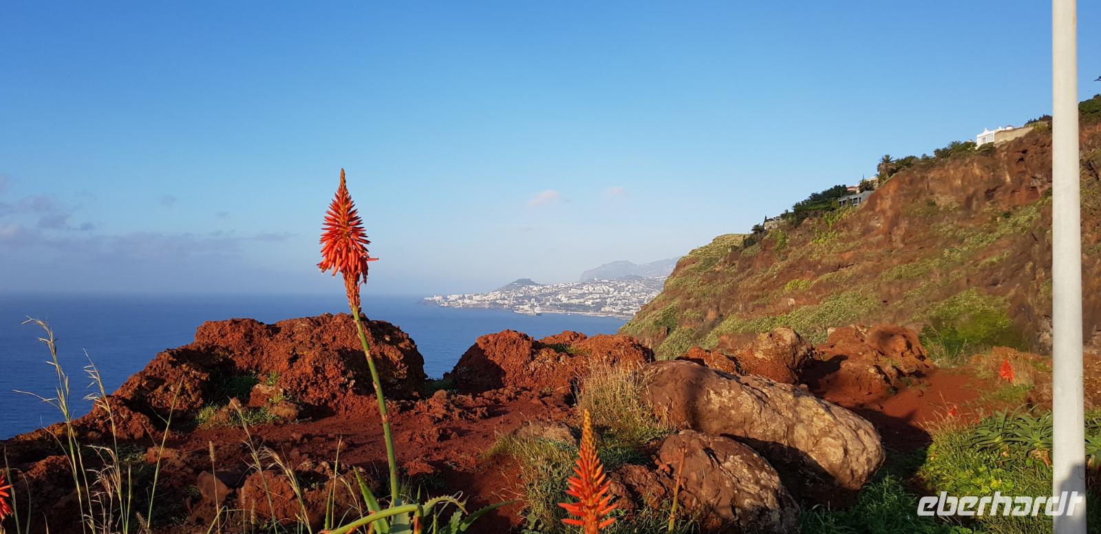 Heute Morgen holt uns Sandro noch einmal ab, um uns die schöne Blumen- und Pflanzenwelt der sogenannten Blumeninsel Madeira zu zeigen. Auf dem Weg zu den Palheiro Gardens, dem Wohnsitz der Familie Blandy halten wir zunächst an der Christusstatue in Garajau für einen Fotostopp mit Blick auf die Küste und auf Funchal. Angekommen am botanischen Garten unternimmt Sandro mit uns einen Spaziergang und zeigt uns die interessantesten Bäume, Sträucher und Blumen, die teils endemisch sind, zum Teil aber auch aus der ganzen Welt nach Madeira eingeführt wurden, wie zum Beispiel der brasilianische Goldregen oder verschiedene Pflanzen, die sonst nur in Australien vorkommen. Danach geht es zu einem weiteren Highlight des Tages, in den Orchideengarten „Quinta Boa Vista Orchidea". Bei einer Führung durch einen Mitarbeiter der Orchieenfarm können wir uns die verschiedensten Farben und Blütenformen der schönen Blumen anschauen. Mit viel Herzblut erklärt er uns alles über die Zucht und Pflege dieser Pflanzen.