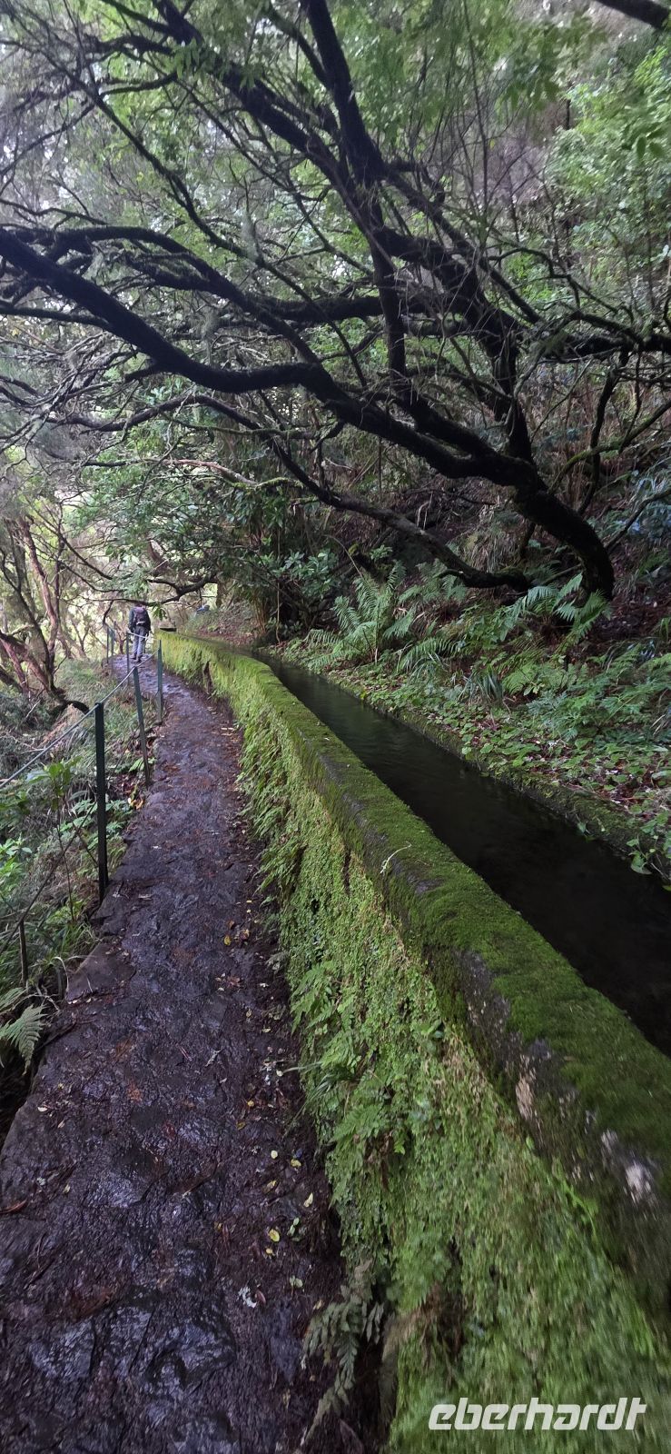 Von dort führte unsere Fahrt hinauf auf das Hochplateau Paul da Serra, wo sich die Landschaft völlig verändert: Weit, ruhig und fast mystisch. Im Tal von Rabaçal starteten wir unsere Wanderung entlang der Levadas. Der Weg schlängelte sich durch dichten, sattgrünen Lorbeerwald, begleitet vom Plätschern des Wassers und dem Duft der Natur. Immer wieder boten sich stille Ausblicke in die Täler – ein echtes Paradies für Naturliebhaber. Man merkte, wie gut es allen tat, einfach zu laufen, durchzuatmen und diese besondere Atmosphäre auf sich wirken zu lassen.
