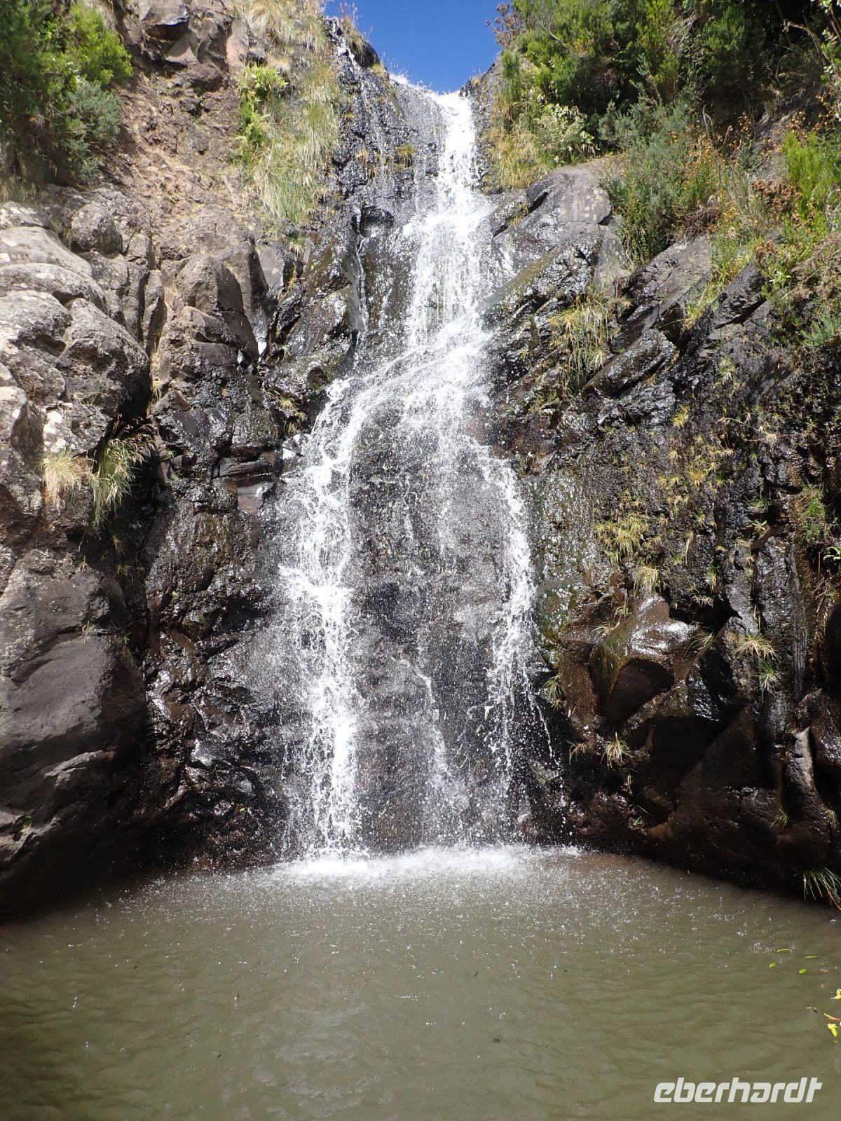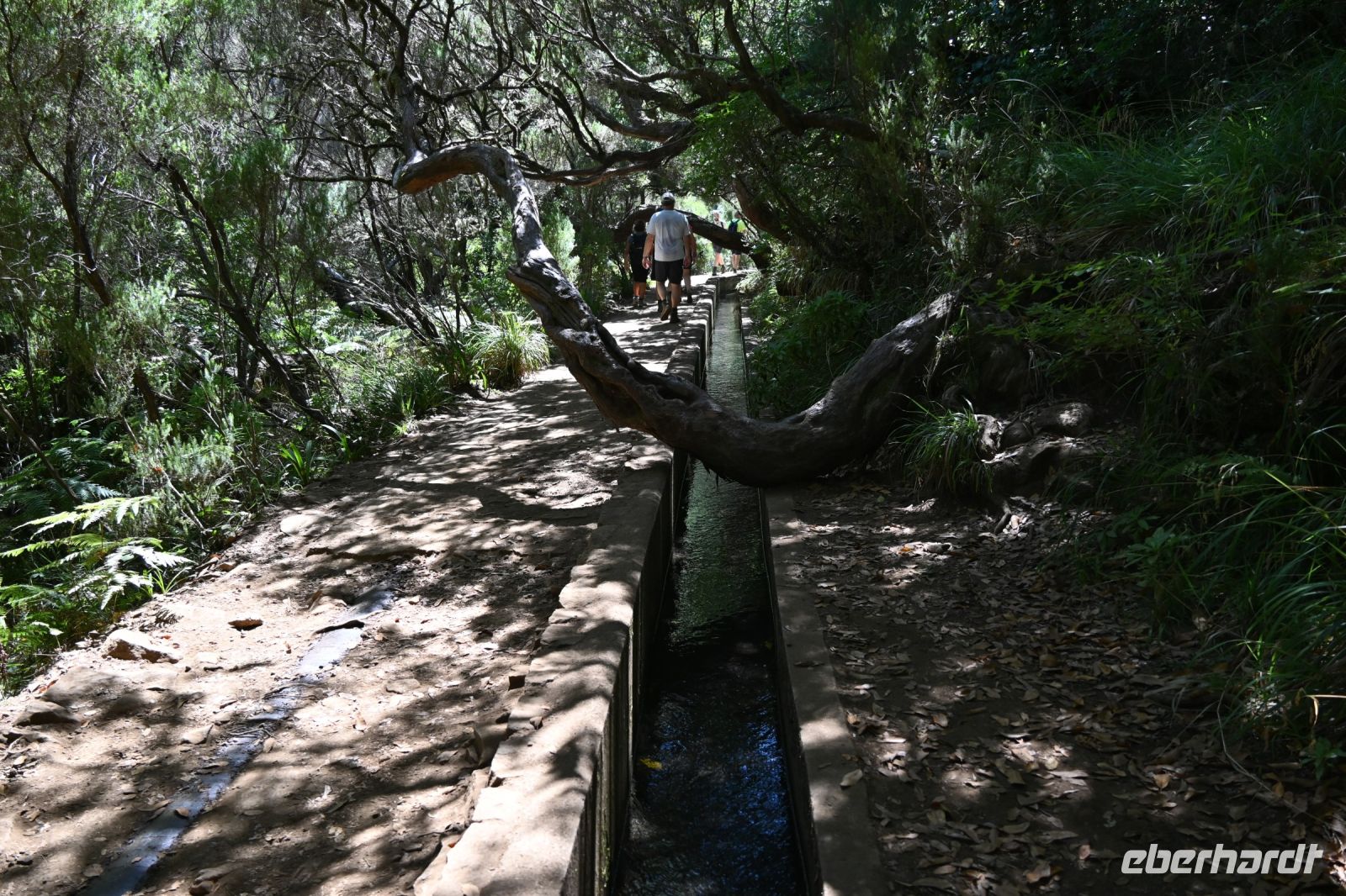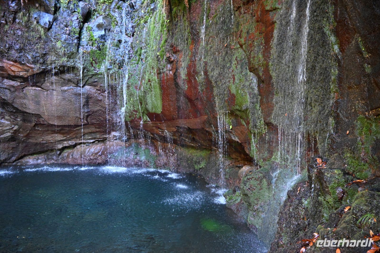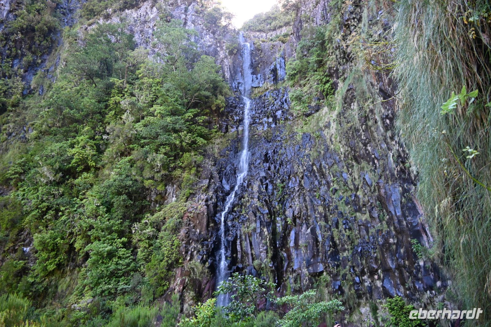 Kein Gast der Insel Madeira kommt herum, einmal von der bekannten Wanderung zu den 25 Quellen zu hören. Genau das, haben wir heute vor. Mit dem Bus werden wir auf die Hochebene Paúl de Serrra gebracht. Auf dem Parkplatz haben sich schon viele Autos versammelt. Wir schultern unsere Rucksäcke und los geht es. Die ersten zwei Kilometer können mit dem Shuttle zurückgelegt werden, aber wir wollen uns ja aktiv über die Insel bewegen. Als wir einige steile Treppen ins Tal hinabsteigen, sind wir froh, dass Fatima uns versichert, dass wird hier nicht mehr hoch müssen. Wir machen heute einen Rundweg und der Bus holt uns von einer anderen Stelle wieder ab. Schon haben wir die erste Levada an unserer Seite. Die Levadas sind von Hand erschaffene Wasserkanäle, die man auf der ganzen Insel wiederfindet. Sie bringen das Wasser aus dem regenreichen Norden in den Süden, wo die Anbaubedingungen auf den Feldern deutlich besser sind. Nur das Wasser fehlt und das wurde mit dem Bau der kleinen Wassergräben gelöst. Es ist jetzt am Vormittag, obwohl wir viel im Schatten laufen, schon sehr warm und mit dem schönen kühlen Bergwasser haben wir immer eine Erfrischung zur Seite. Einen ersten schönen Blick bietet der Risco-Wasserfall. Er stürzt sich ca. 100 Meter in das grüne Tal. Den nächsten Weg schlagen wir mit vielen weiteren Wanderern ein. Es begleitet uns schon die Levada der 25 Quellen und zum Glück ist der Weg eine Einbahnstraße, denn es ist hier sehr schmal. Nach einigen Kilometern erreichen wir dann endlich die 25 Quellen. In einem Halbkreis plätschern sie in vielen kleinen Wasserfällen zu einem kleinen Naturbecken hinab. Die Felswände drumherum sind reichlich bewachsen. Es haben sich schon mehrere, auch größere Gruppen, niedergelassen, um ihre Mittagspause hier zu verbringen. Fatima hat eine bessere Idee und so kehren wir nach einigen Bilder und schönen Eindrücken den Rückweg an. Der Lorbeerwald spendet uns weiterhin schön Schatten, bis wir vor einem großen Tunneleingang unsere Pause einlegen.
