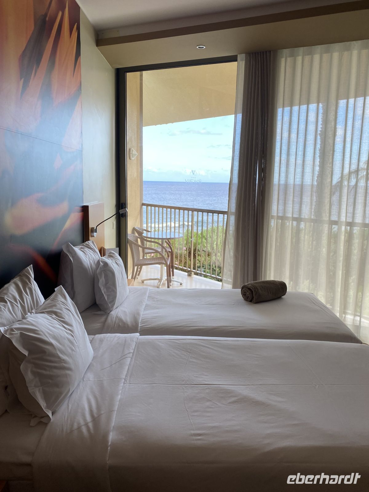 Im Restaurant „Inn&Art“ genießen wir unseren letzten Abend mit einem fabelhaften Ausblick aufs Meer.