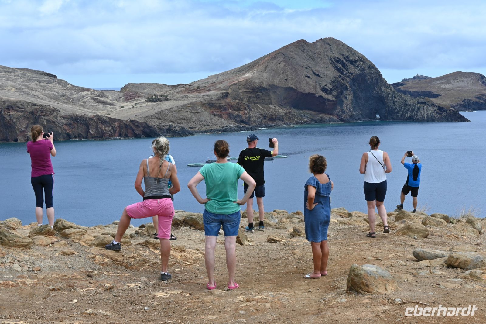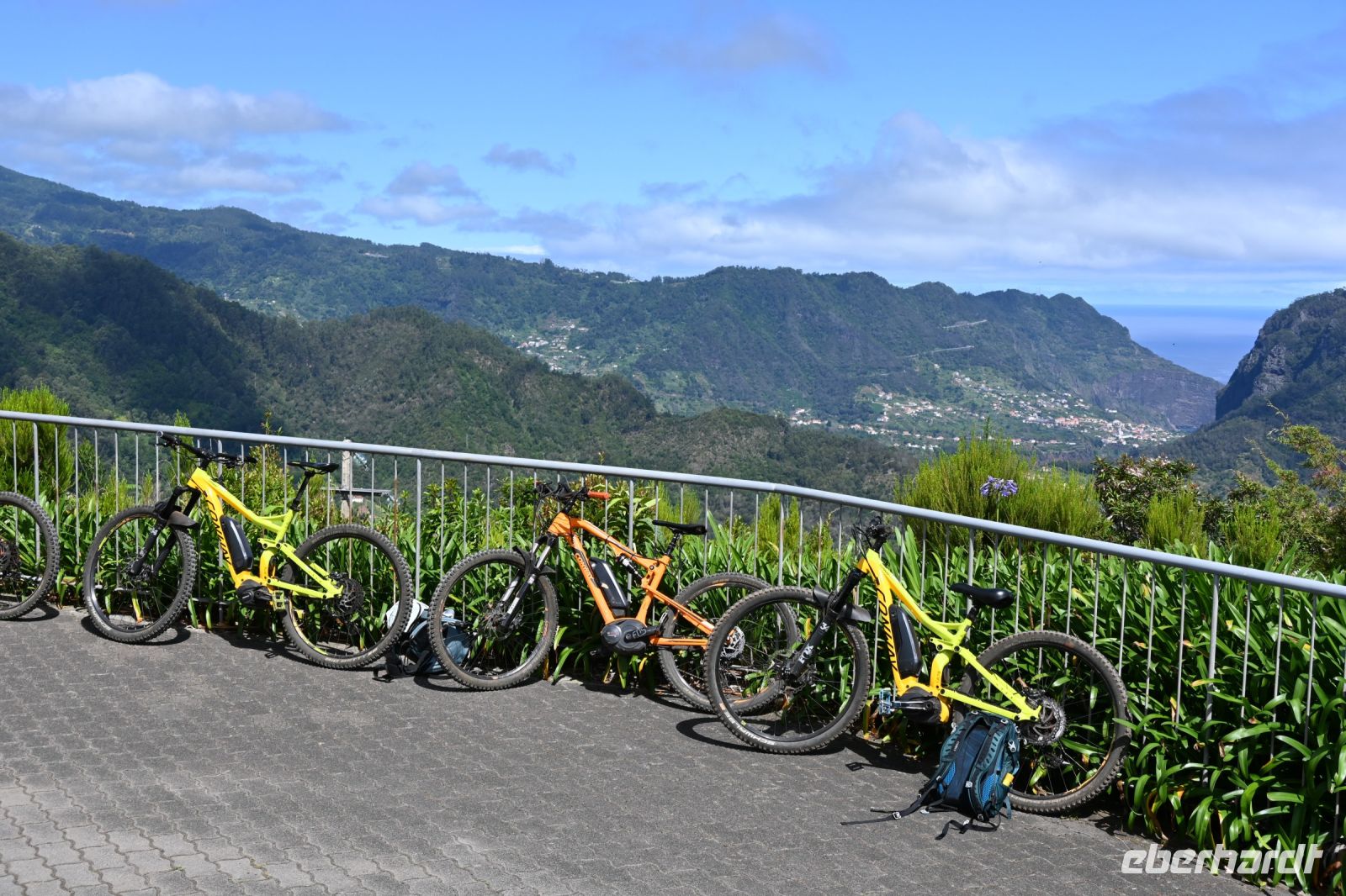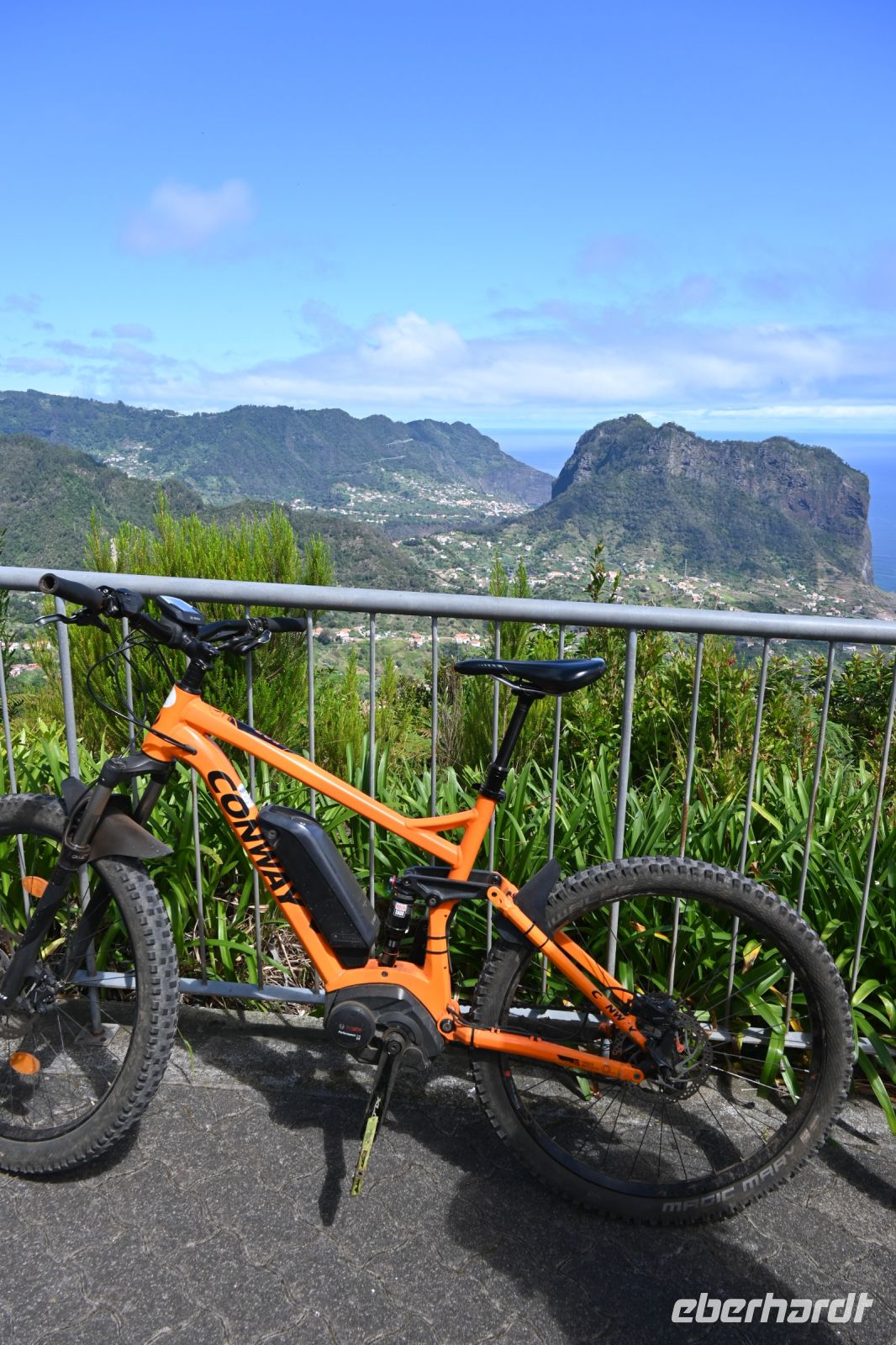 Heute empfängt uns Albano in der Hotellobby. Er kam vor 25 Jahren nach Madeira und hat den Weg nicht mehr nach Deutschland zurückgefunden. Auf dem Hänger seines BUsses transportiert es bereits unser heutiges Fortbewegungsmittel - zehn glänzende und voll aufgeladene E-Mountainbikes. Wir starten in Camacha, oberhalb von Canico. Von dort geht es, hauptsächlich bergab, über Stock und Stein bis an die Küste von Machico. Für die rund 32 Kilometer benötigen wir reine Fahrtzeit 2,5 Stunden. Mit einigen Pausen für Erklärungen von Albano oder um einfach mal die Arme auszuschütteln, erreichen wir zur Mittagszeit unser Ziel. Der Strand von Machico wurde künstlich mit Sand aus Marokko angelegt und ist einer der wenigen Sandstrände der Insel. Wir sind froh, dass wir die Pause nutzen können, um kurz ins Wasser zu springen, uns abzukühlen und anschließend haben wir noch Zeit einen kleinen Snack an der Promenade zu kaufen. Punkt 14 Uhr fährt Fatima mit dem Bus an der Promenade vor und wir springen hinein. Mit unserer vorbildlichen Pünktlichkeit haben wir uns einen extra Fotostopp erarbeitet. Wir fahren zu einem Aussichtspunkt auf die östliche Spitze. Die vulkanische Halbinsel ist neun Kilometer lang und lädt viele Touristen auf eine Wandertour ein.