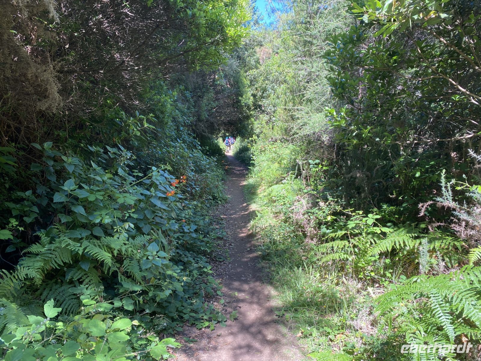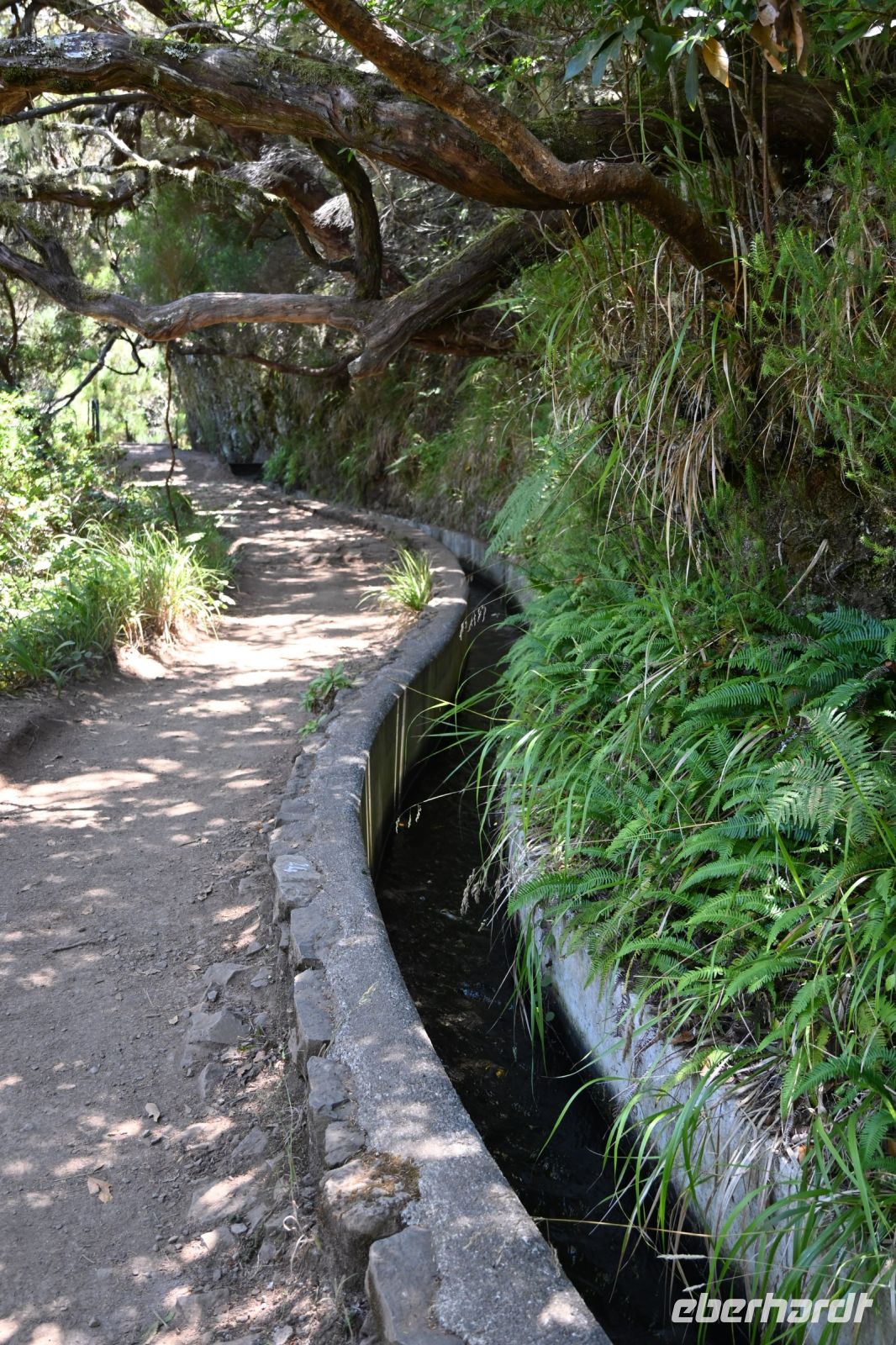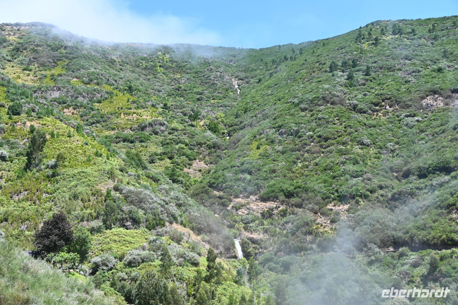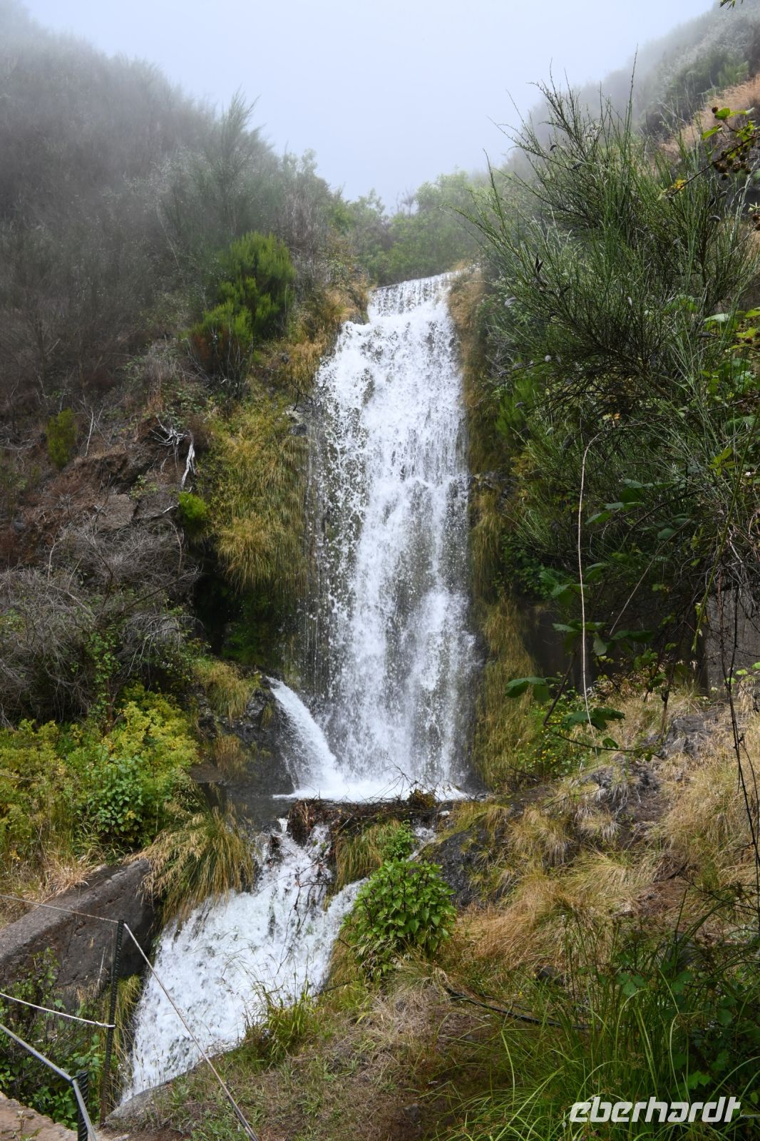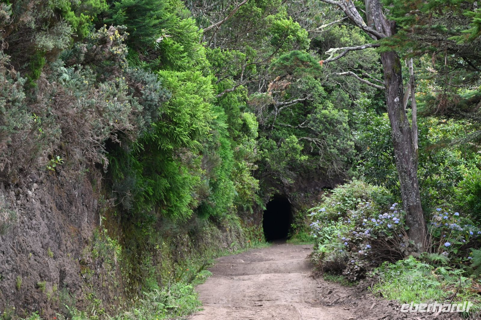 Dieser 800m lange Tunnel wurde errichtet, um die Nord- und die Südseite der Insel zu verbinden und das Wasser der Levada in den Süden zu bringen. Mit den Taschenlampen bahnen wir uns den Weg hindurch und erwarten eine schöne Aussicht auf den Süden. Leider machen uns die Wolken einen Strich durch die Rechnung. Nicht mehr weit entfernt, erwartet uns bereits der Bus. Eine schöne Wanderung von ca. 12 Kilometern liegt hinter uns.