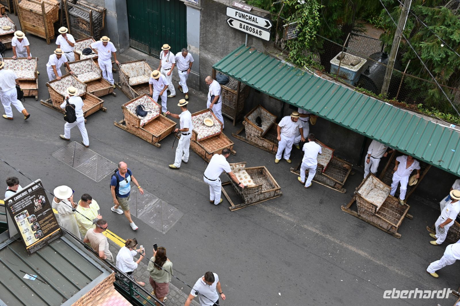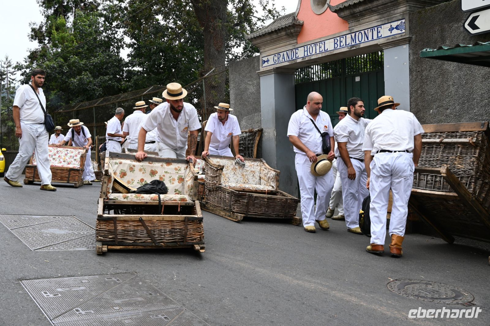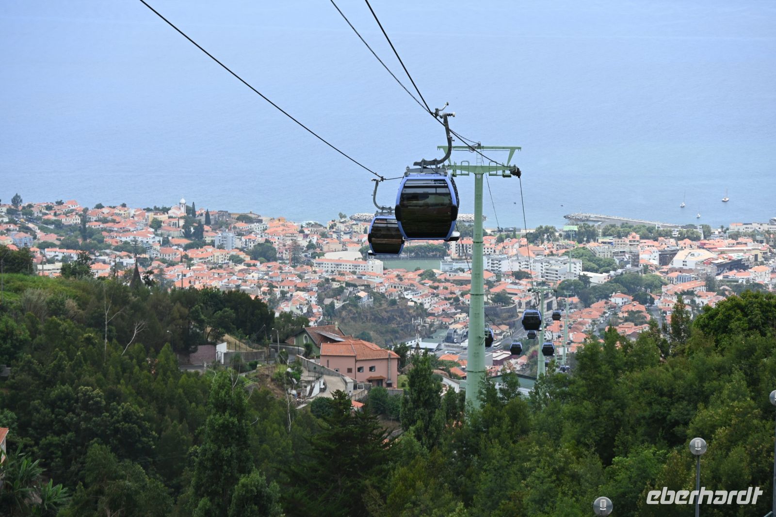 An der Promenade geht es zurück zum Bus, wer noch nicht mit zurück zum Hotel will, nutzt die Zeit für eine Auffahrt mit der Seilbahn nach Monte, einer Gemeinde von Funchal. Es geht über 500 Höhenmeter hinauf und man hat einen herrlichen Blick. Wer wieder nach unten will, nutzt die berühmten Korbschlitten, die von erfahrenen „Carreiros“ gefahren werden. Früher wurden die aus Holz und Weide gefertigten Schlitten als öffentliches Verkehrsmittel genutzt, heute ist es eine Touristenattraktion. Bremsen werden keine eingebaut, das wird alles von den Stiefeln der Fahrern erledigt. Die Wartezeit ist heute viel zu lang und so entscheiden wir uns, den Weg nach unten zu Fuß zu bestreiten und uns damit auf die aktiven Tage diese Woche vorzubereiten. Vielleicht nicht unsere schlauste Idee heute, aber so haben wir etwas zu erzählen.