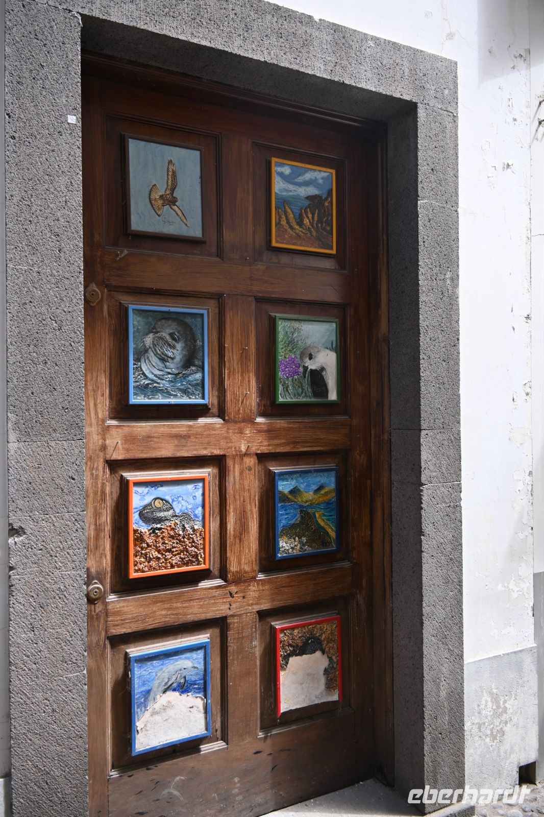 Wir setzen unseren Spaziergang immer Richtung Osten fort und laufen durch die historische „Rua de Santa Maaria“ von Funchal. Besonders bekannt für die vielen bemalten Türen mit den verschiedensten Motiven. Diese wurden von verschiedenen Künstlern gestaltet und sollen die Straße wieder attraktiv machen. In den kleinen Häusern entlang der Gasse sind im Erdgeschoss viele Restaurants und Läden untergebracht, doch wenn man nach oben schaut, sind die Häuser oft baufällig und hätten auch eine Verschönerung nötig.