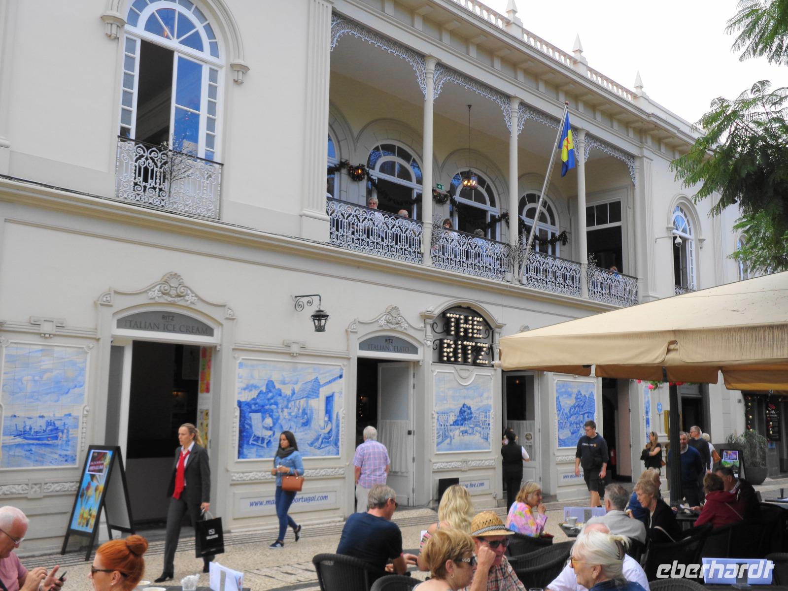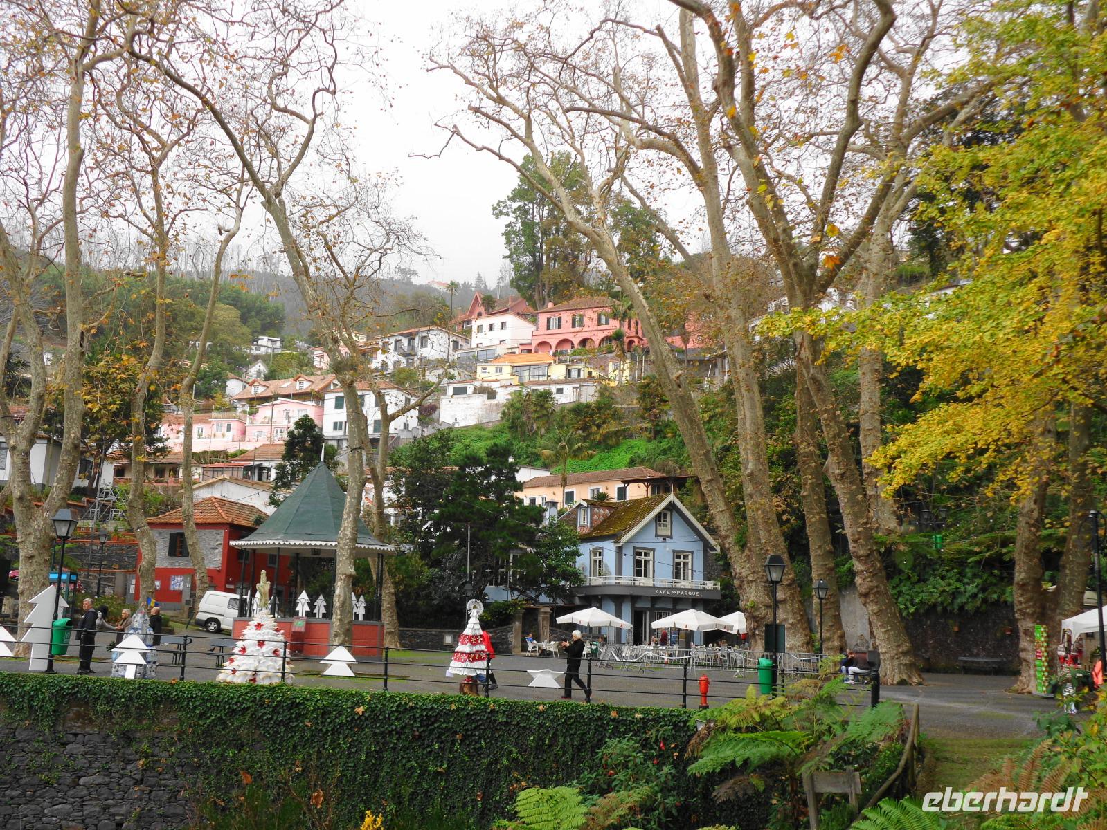 Zunächst ging es zur „Quinta do Palheiro", einem herrlichen Landgut im Privatbesitz der Familie Blandy. Der 200.000 qm große Garten gilt als der schönste Privatgarten Madeiras, das Herrenhaus aus dem 18. Jahrhundert ist heute ein luxuriöses Gästehaus. Wir lustwandelten in den im französischen und englischen Stil angelegten Bereichen, bewunderten Proteas und Kamelien, die eindrucksvolle Sukkulentensammlung und die bunte Blütenpracht im „Jardim da Senhora", dem „Garten der Dame". Die wohlverdiente Pause fand stilvoll auf der Terrasse des Teehauses statt.