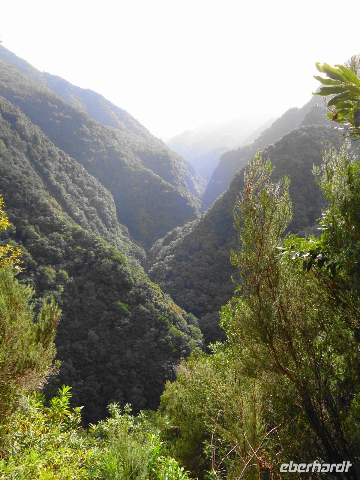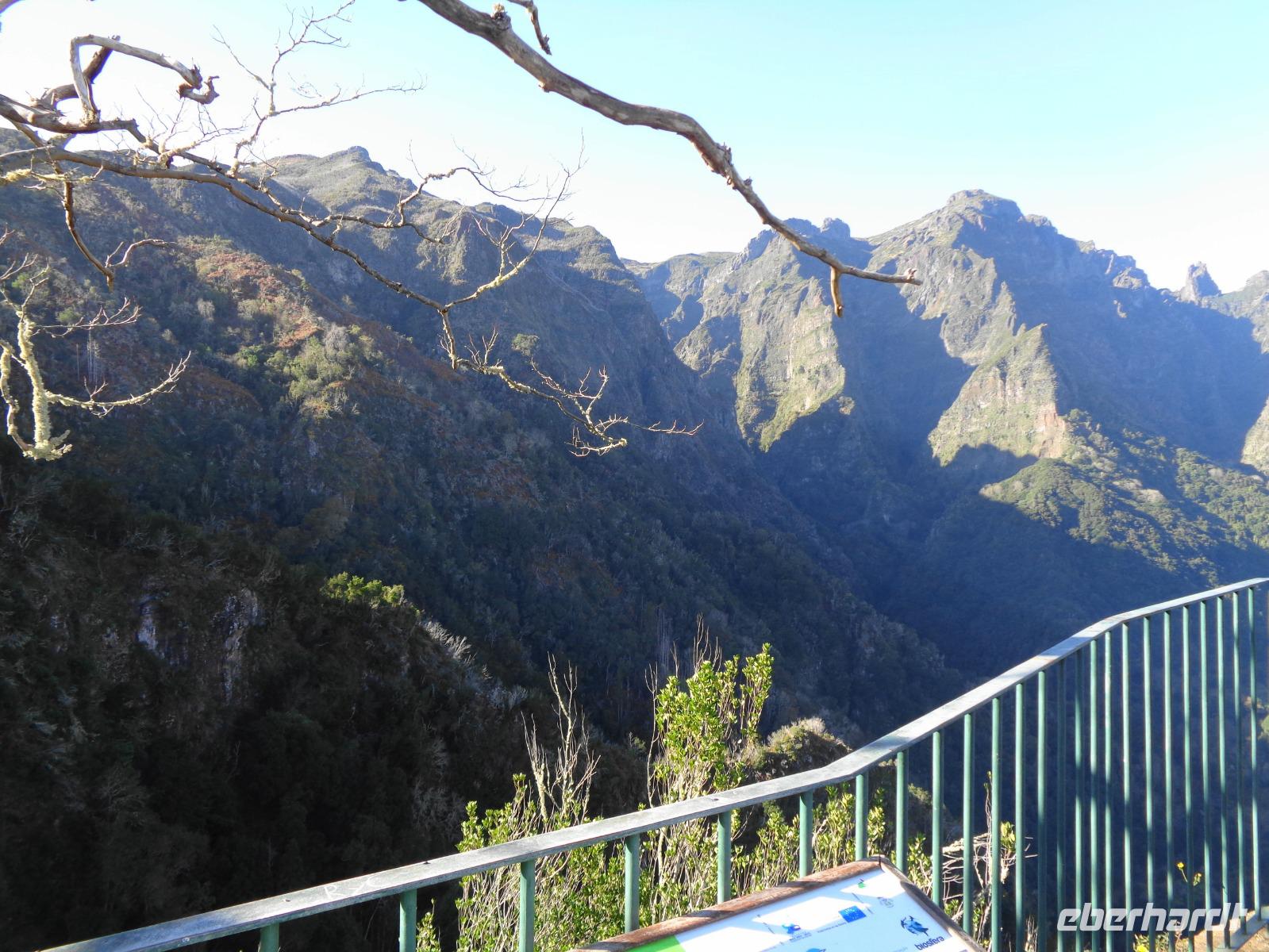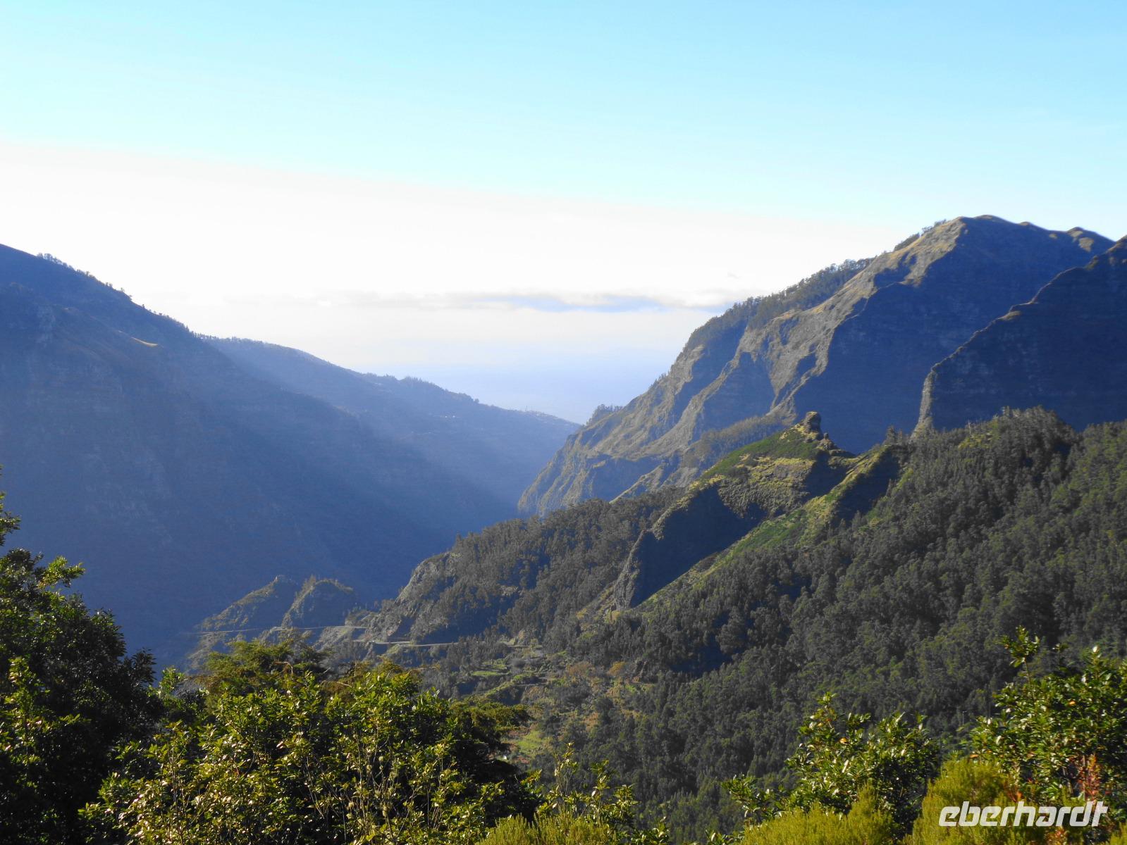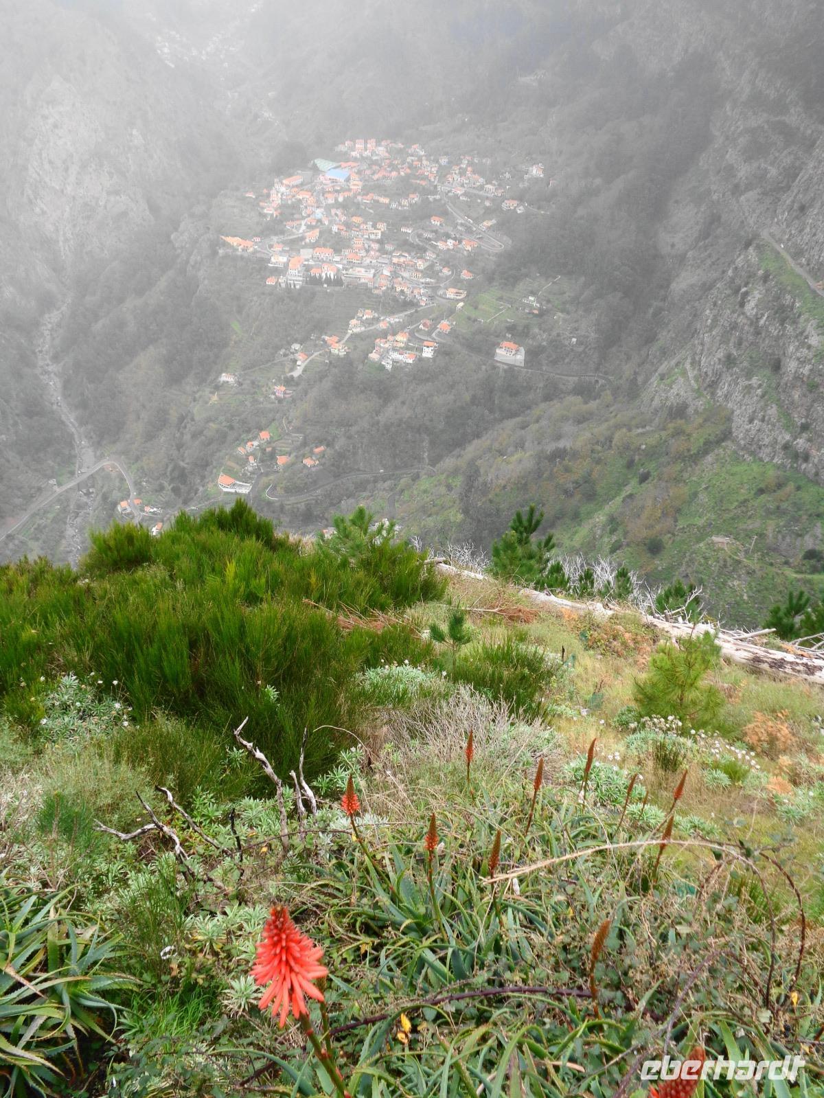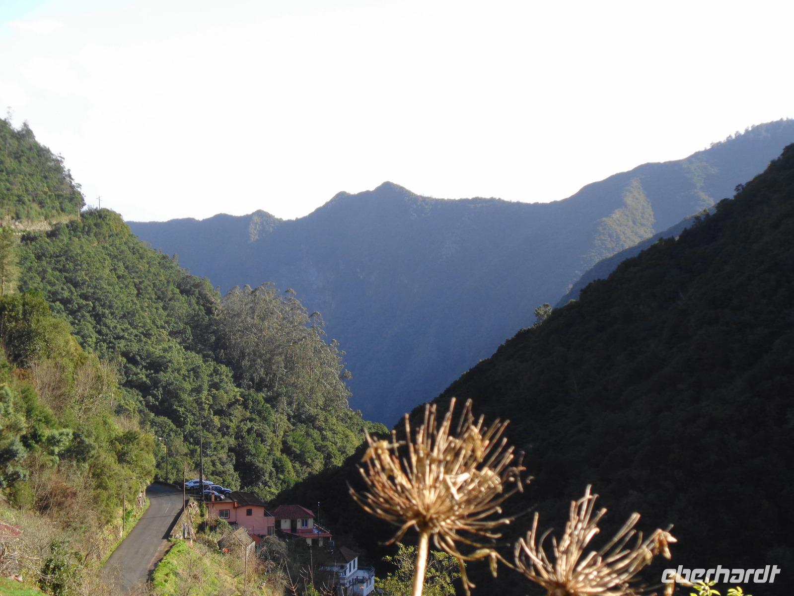 Nach einem Fotostopp auf dem Pico dos Barcelos ging es zum „Curral das Freiras", dem Nonnenpferch, einem einzigartigen Landschaftserlebnis. Am Aussichtspunkt Miradouro Eira do Serrado trübten Nebelschwaden ein wenig die atemberaubende Fernsicht auf die Bergwelt Madeiras und den grünen Talkessel des „Curral". Der Name geht auf die einstigen Besitzer des Talkessels zurück, den Nonnen des Klosters Santa Clara in Funchal. Sie nutzten ihn als landwirtschaftliche Anbaufläche und Refugium gegen Piratenüberfälle und Brandschatzungen.