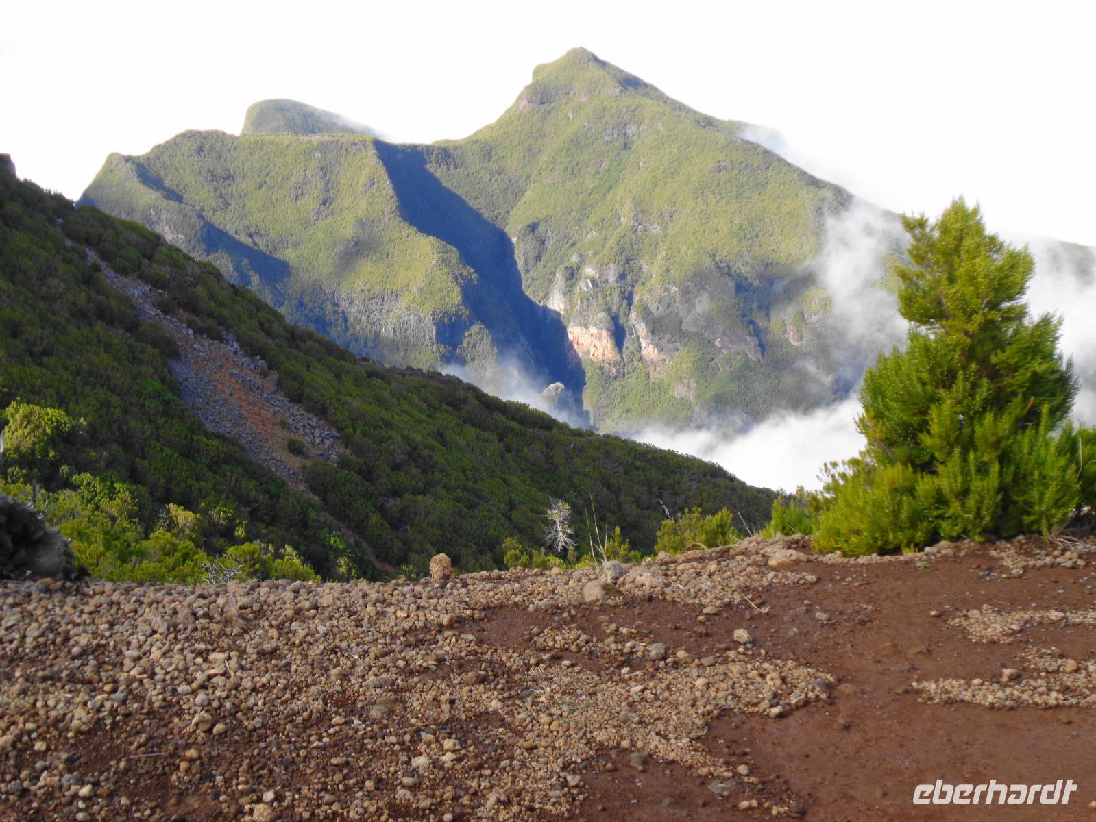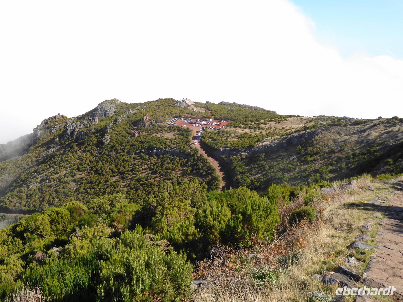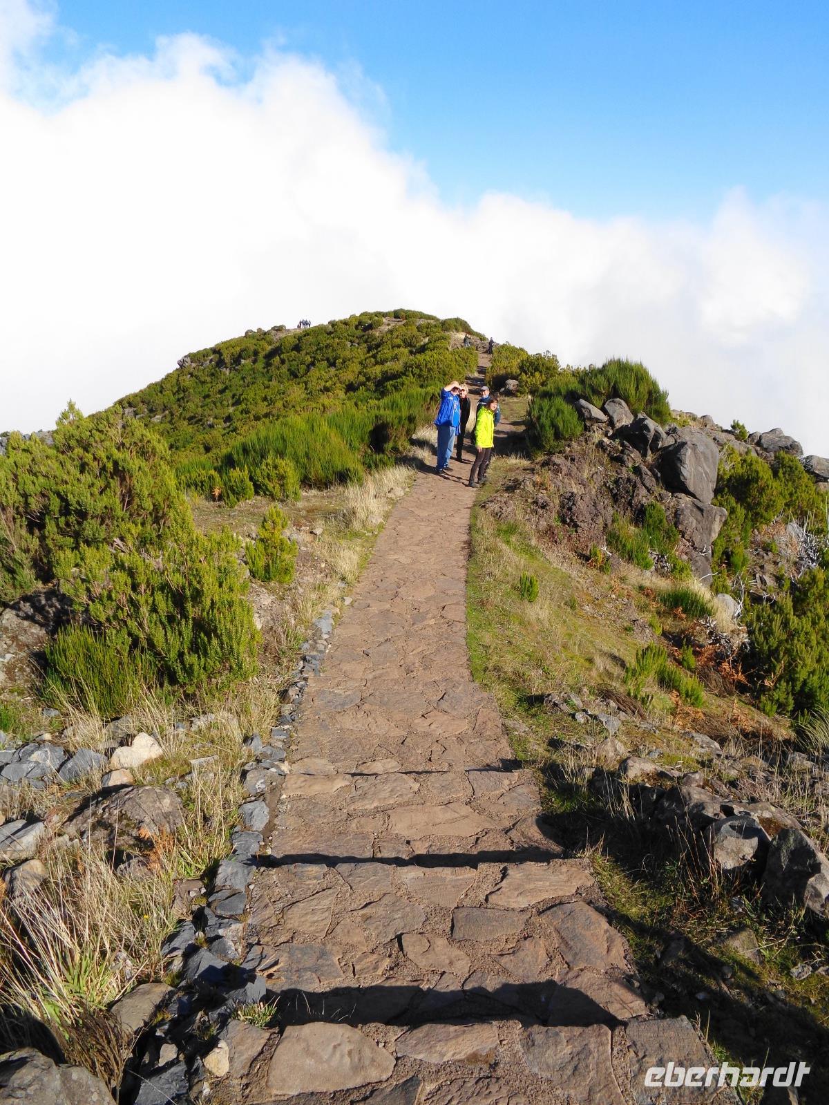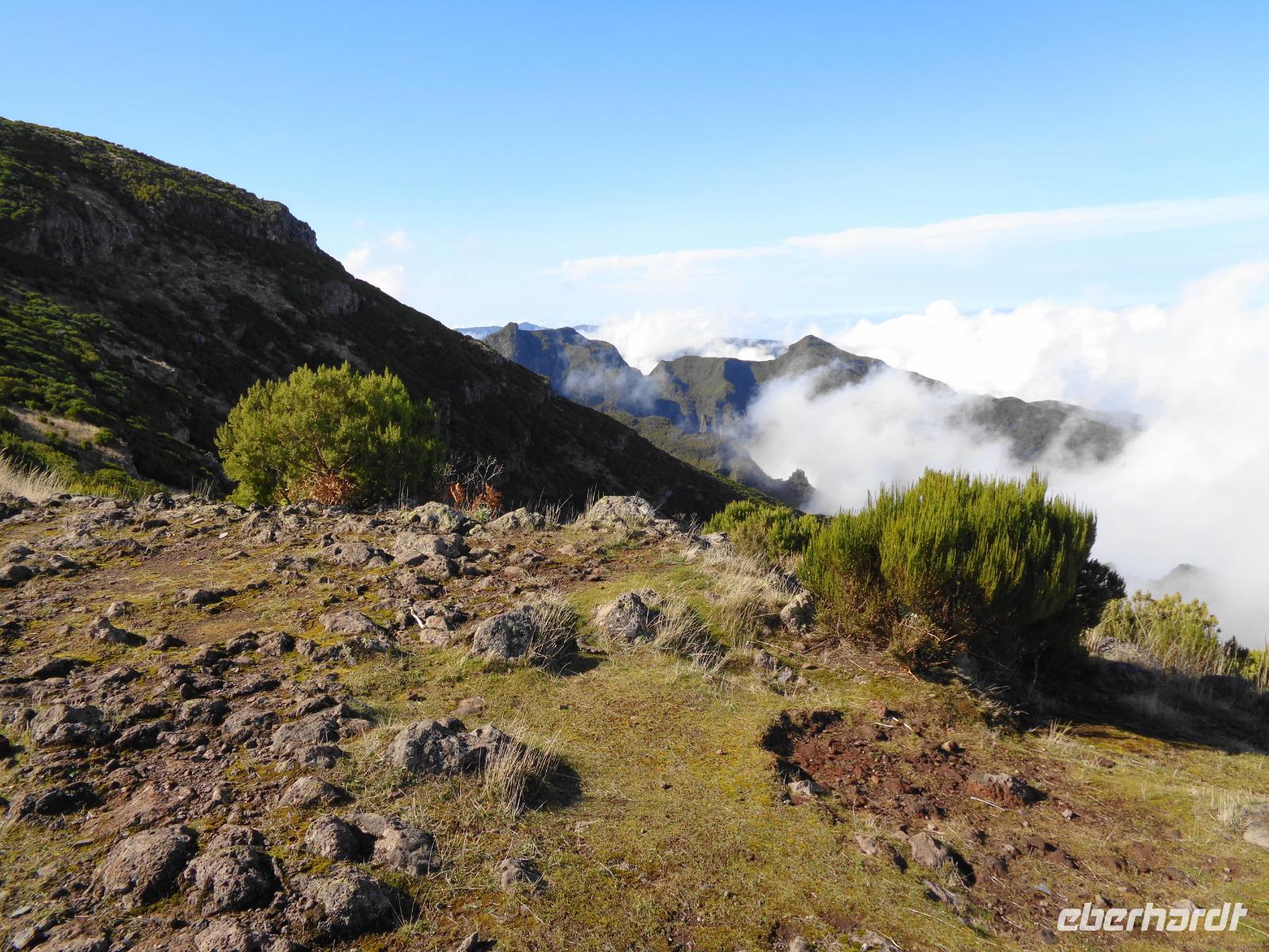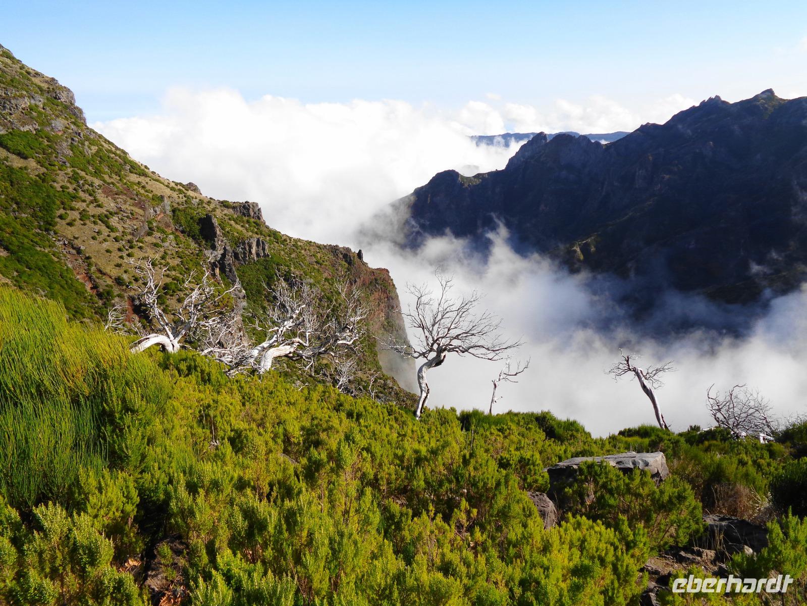 An der anschließenden Wanderung zum Pico do Ruivo wollten nur 3 Gäste teilnehmen und so hatten die restlichen Gäste einen ausgedehnten Aufenthalt in Santana. Die meisten nutzten die Gelegenheit zu einer Mittagseinkehr und einem Spaziergang zu den von unzähligen Fotos bekannten spitzgiebeligen und mit Stroh gedeckten bunten Santana-Häuschen. Die Wanderer wurden trotz der umherziehenden Nebelschwaden mit herrlichen Ausblicken auf die höchsten Berge Madeiras belohnt.
