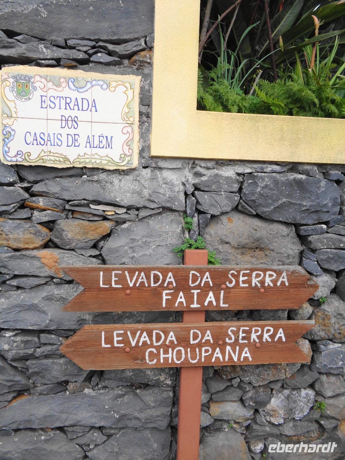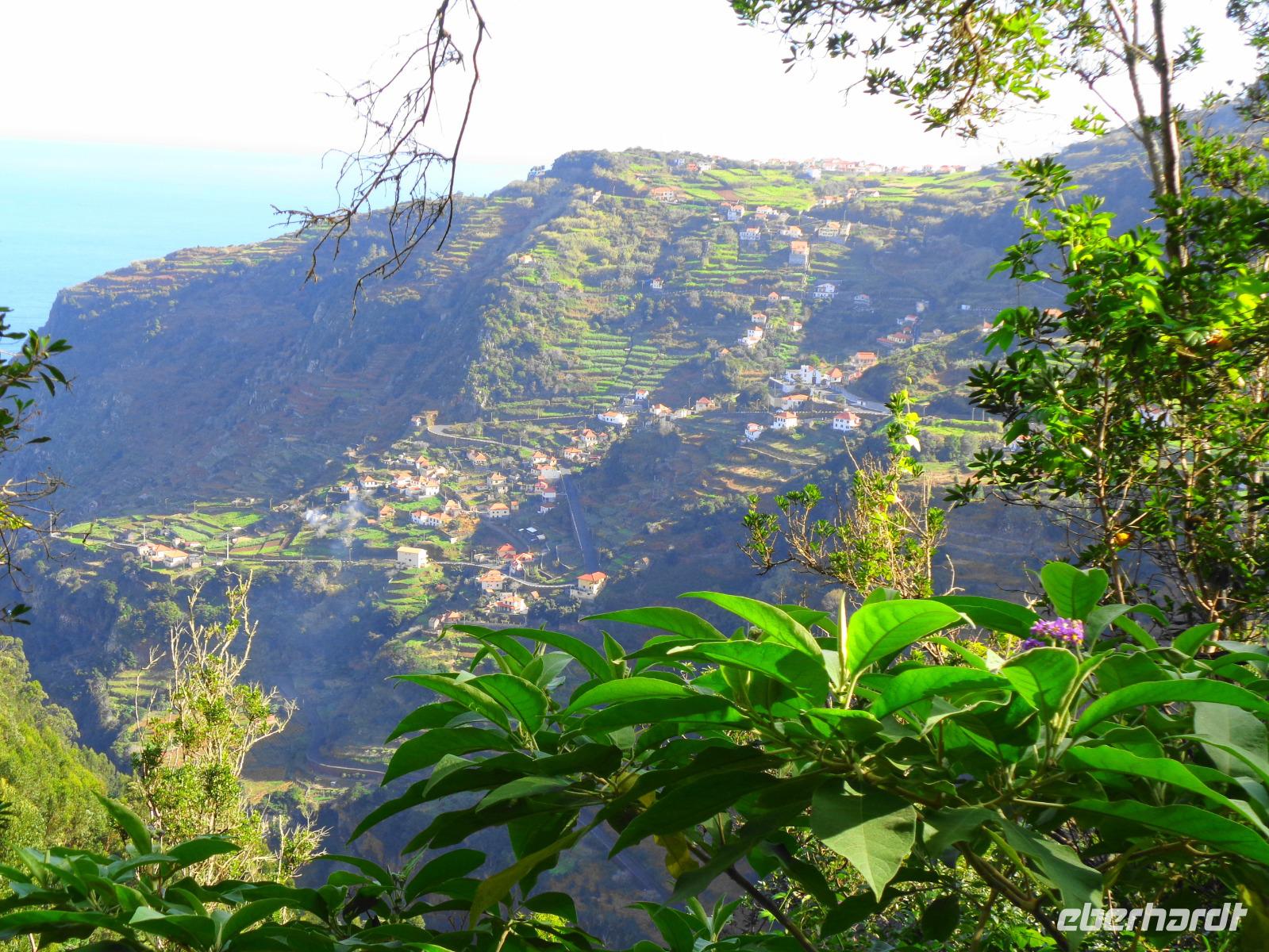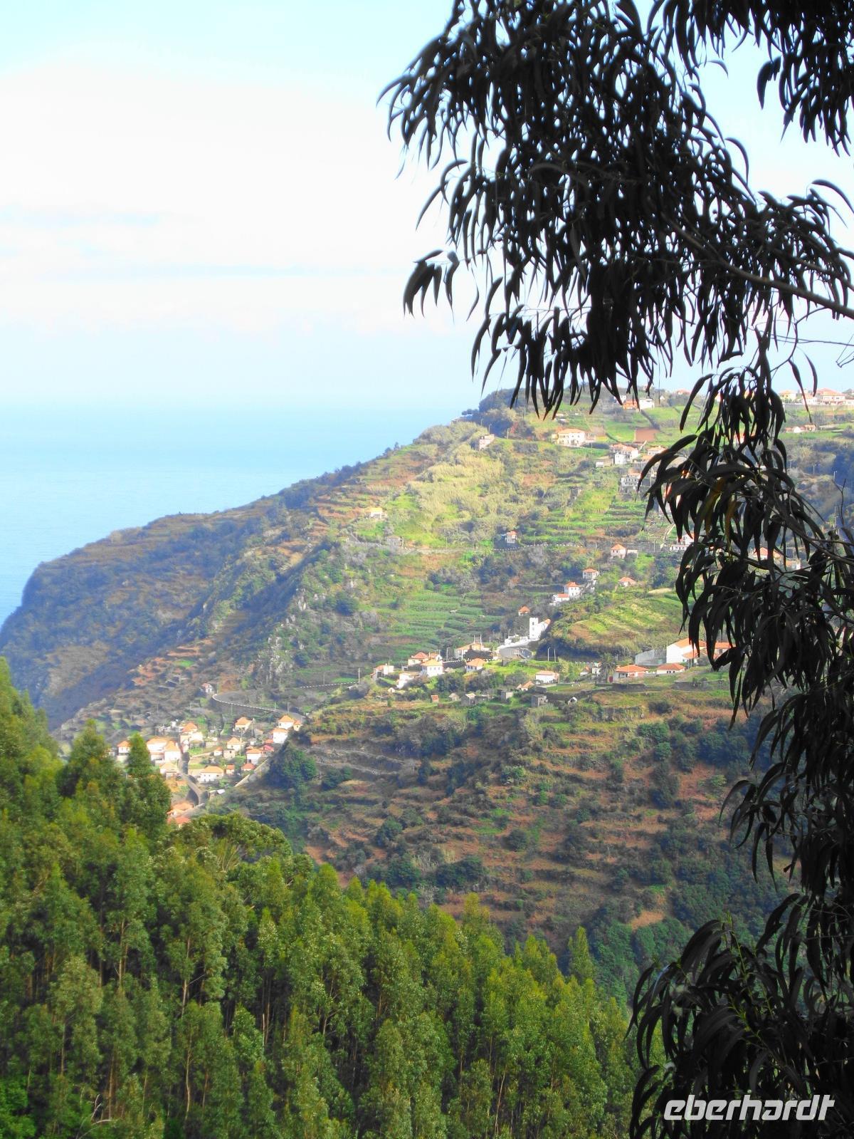 Heute unternahmen wir zunächst eine Wanderung an der Levada da Serra do Faial bei Camacha. Levadas sind die für Madeira so typischen künstlich angelegten Bewässerungskanäle. Die ersten wurden bereits im 15. Jahrhundert unter unbeschreiblichen Mühen gebaut. Sie dienen dazu, die niedriger gelegenen Terrassenfelder mit Wasser zu versorgen. Die schmalen Wege entlang der Levadas dienen in erster Linie den Levada-Arbeitern und den Einheimischen als Verbindungswege. Heute werden sie auch gern von Touristen als Wanderwege benutzt. Entlang des Weges konnten wir die unermessliche Vielfalt der madeirensischen Pflanzenwelt bestaunen, die uns Sérgio sachkundig erläuterte. Wir kamen auch an kleinen Bauernhöfen und ihren farbenprächtigen Nutz- und Ziergärten vorbei, wo wir Papayas und Maracujas bestaunten. Auf der Terrasse der Bar Moisés in Achadinha legten wir eine wohlverdiente Pause ein.