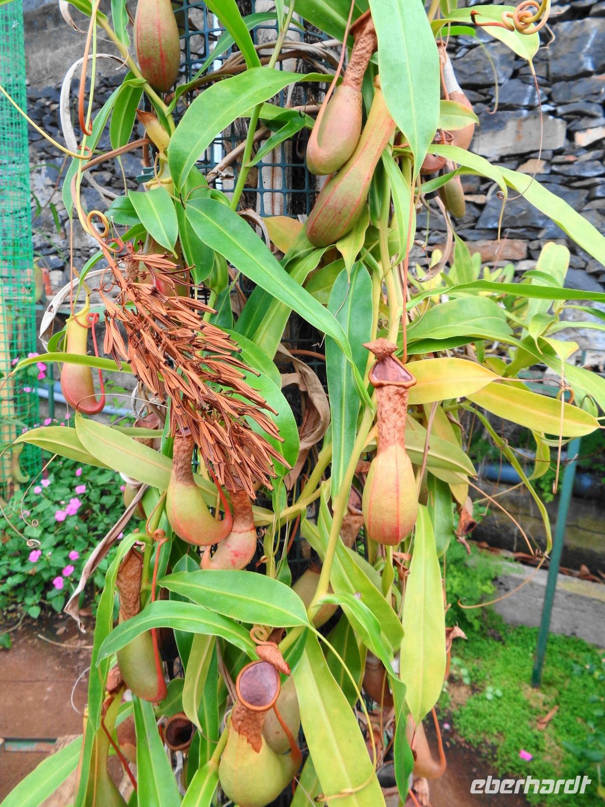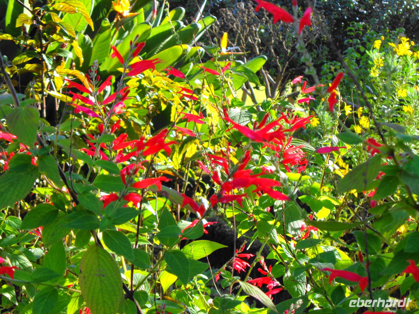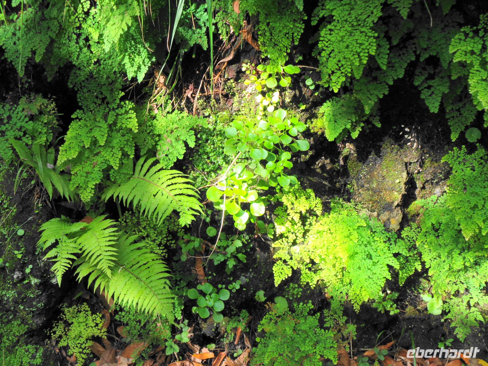 Heute unternahmen wir zunächst eine Wanderung an der Levada da Serra do Faial bei Camacha. Levadas sind die für Madeira so typischen künstlich angelegten Bewässerungskanäle. Die ersten wurden bereits im 15. Jahrhundert unter unbeschreiblichen Mühen gebaut. Sie dienen dazu, die niedriger gelegenen Terrassenfelder mit Wasser zu versorgen. Die schmalen Wege entlang der Levadas dienen in erster Linie den Levada-Arbeitern und den Einheimischen als Verbindungswege. Heute werden sie auch gern von Touristen als Wanderwege benutzt. Entlang des Weges konnten wir die unermessliche Vielfalt der madeirensischen Pflanzenwelt bestaunen, die uns Sérgio sachkundig erläuterte. Wir kamen auch an kleinen Bauernhöfen und ihren farbenprächtigen Nutz- und Ziergärten vorbei, wo wir Papayas und Maracujas bestaunten. Auf der Terrasse der Bar Moisés in Achadinha legten wir eine wohlverdiente Pause ein.