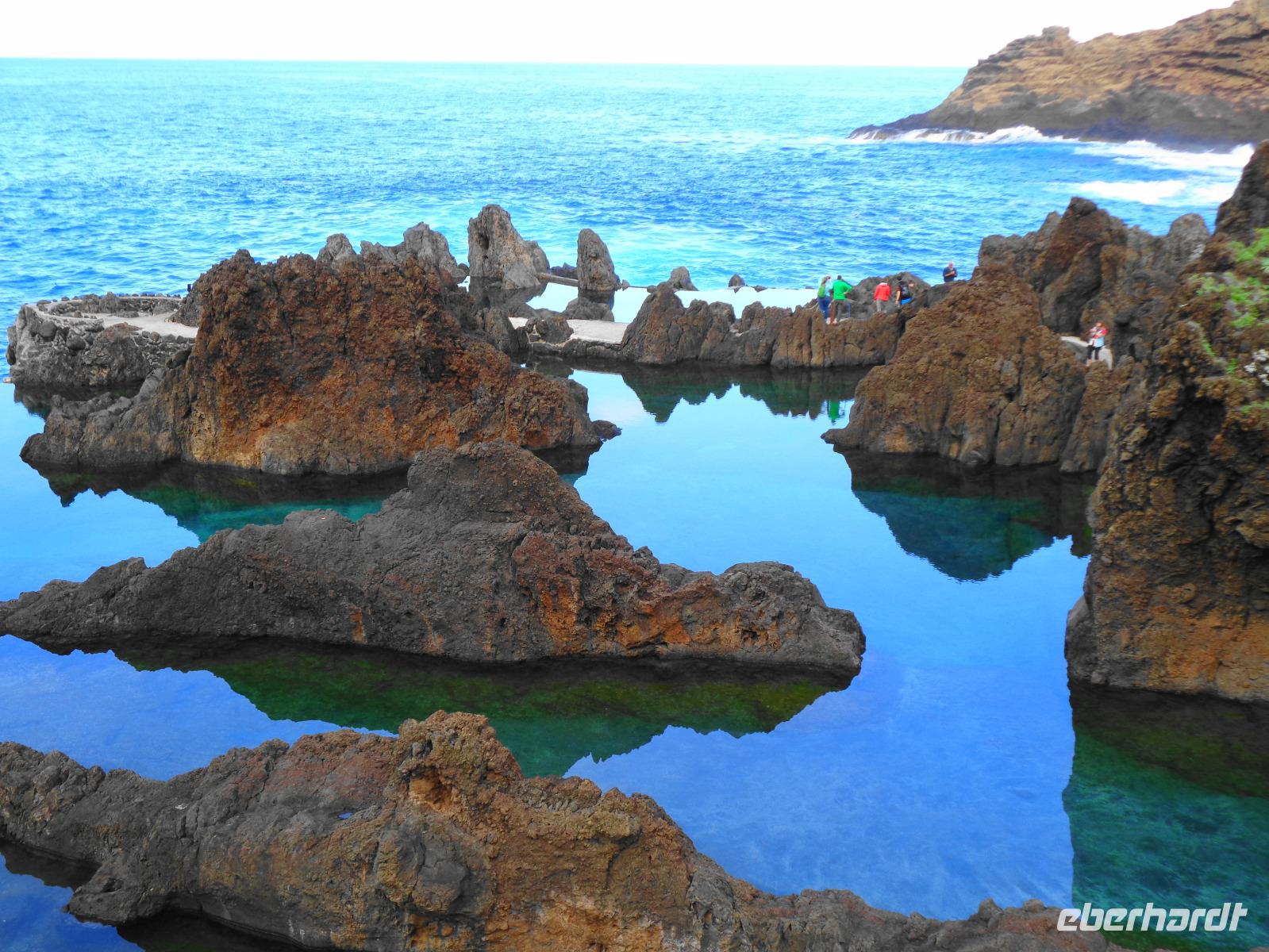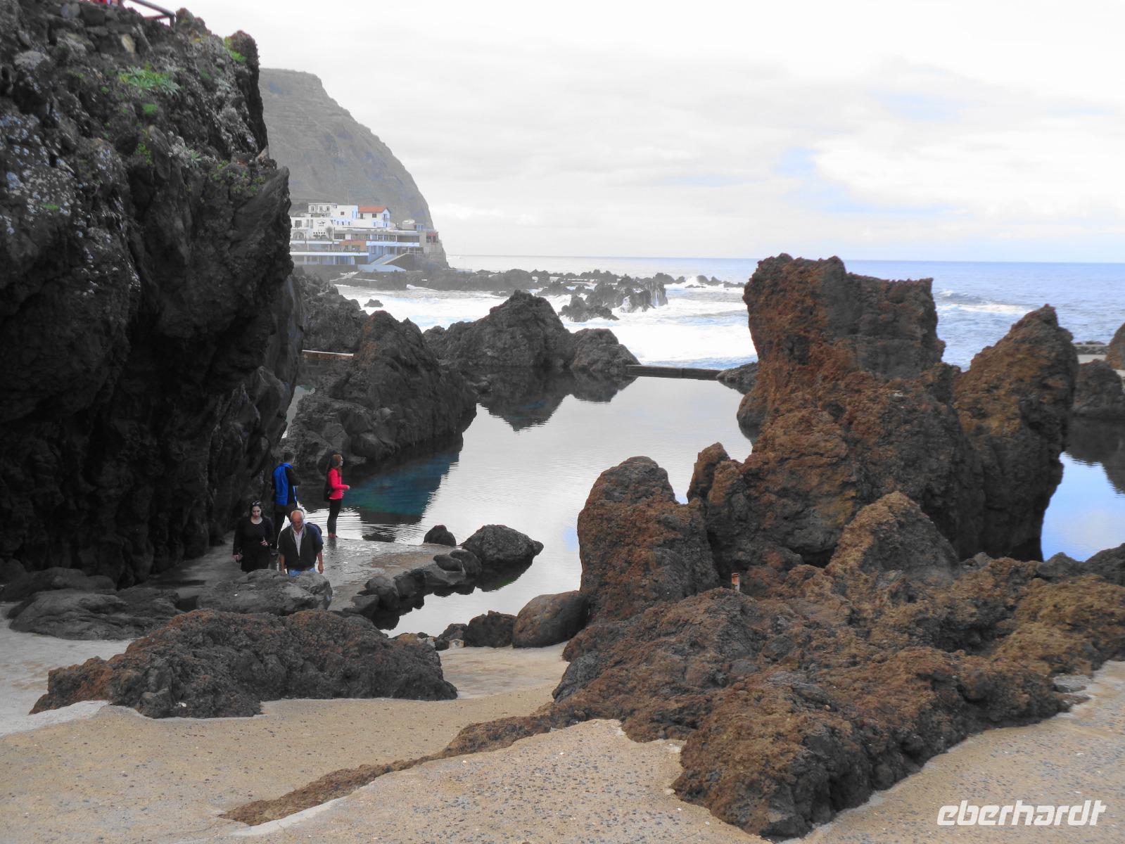 Nach Ankunft in Porto Moniz gönnten wir uns zunächst ein leckeres Mittagessen. Besonders charakteristisch für das kleine Städtchen im äußersten Nordwesten der Insel sind die natürlichen, vulkanischen Badebecken, die sich im Halbrund vor der einladenden Promenade erstrecken.