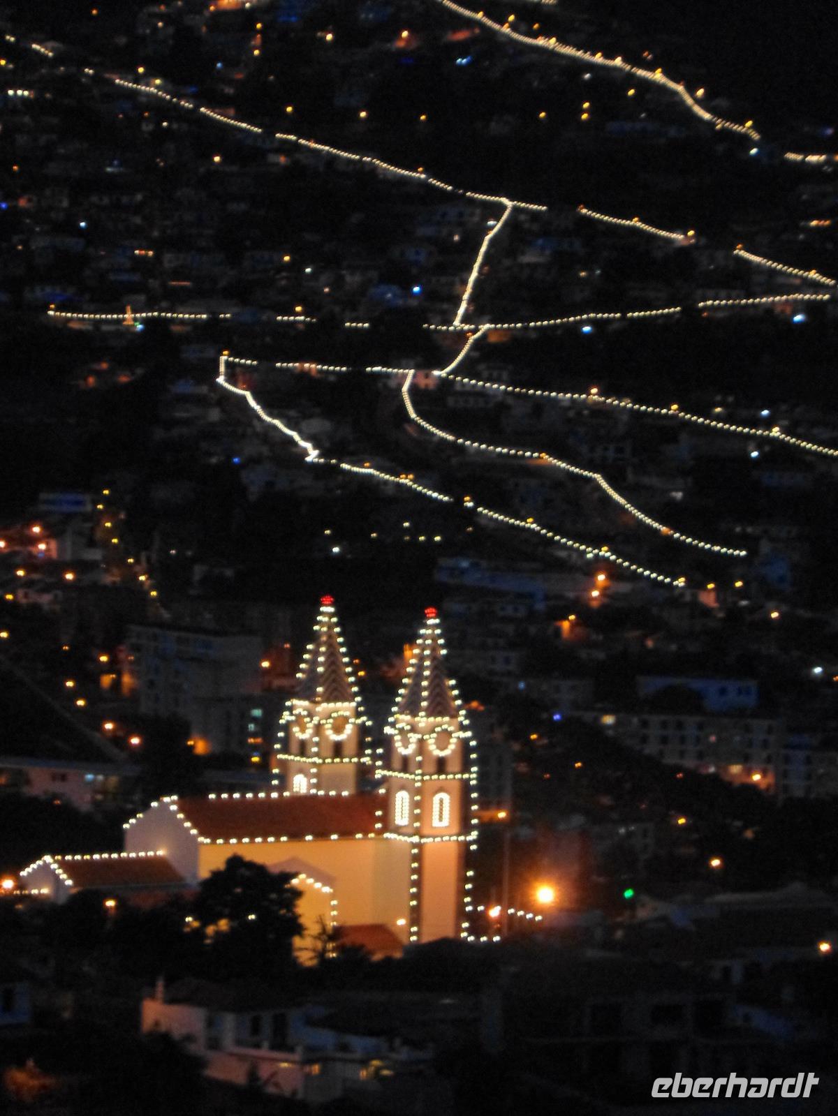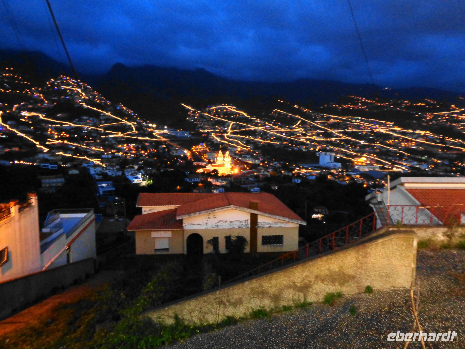 Am heutigen Abend hatte Eberhardt zum Spezialitäten-Essen in der Quinta Estação am Pico dos Barcelos geladen. Die ehemalige Radiostation ist heute ein weithin bekanntes Spezialitätenrestaurant. Von der Terrasse aus genossen wir einen herrlichen Blick auf das weihnachtlich beleuchtete Funchal. Die Fleischliebhaber unter uns kamen mit der örtlichen Spezialität, der „Espetada" voll auf ihre Kosten.