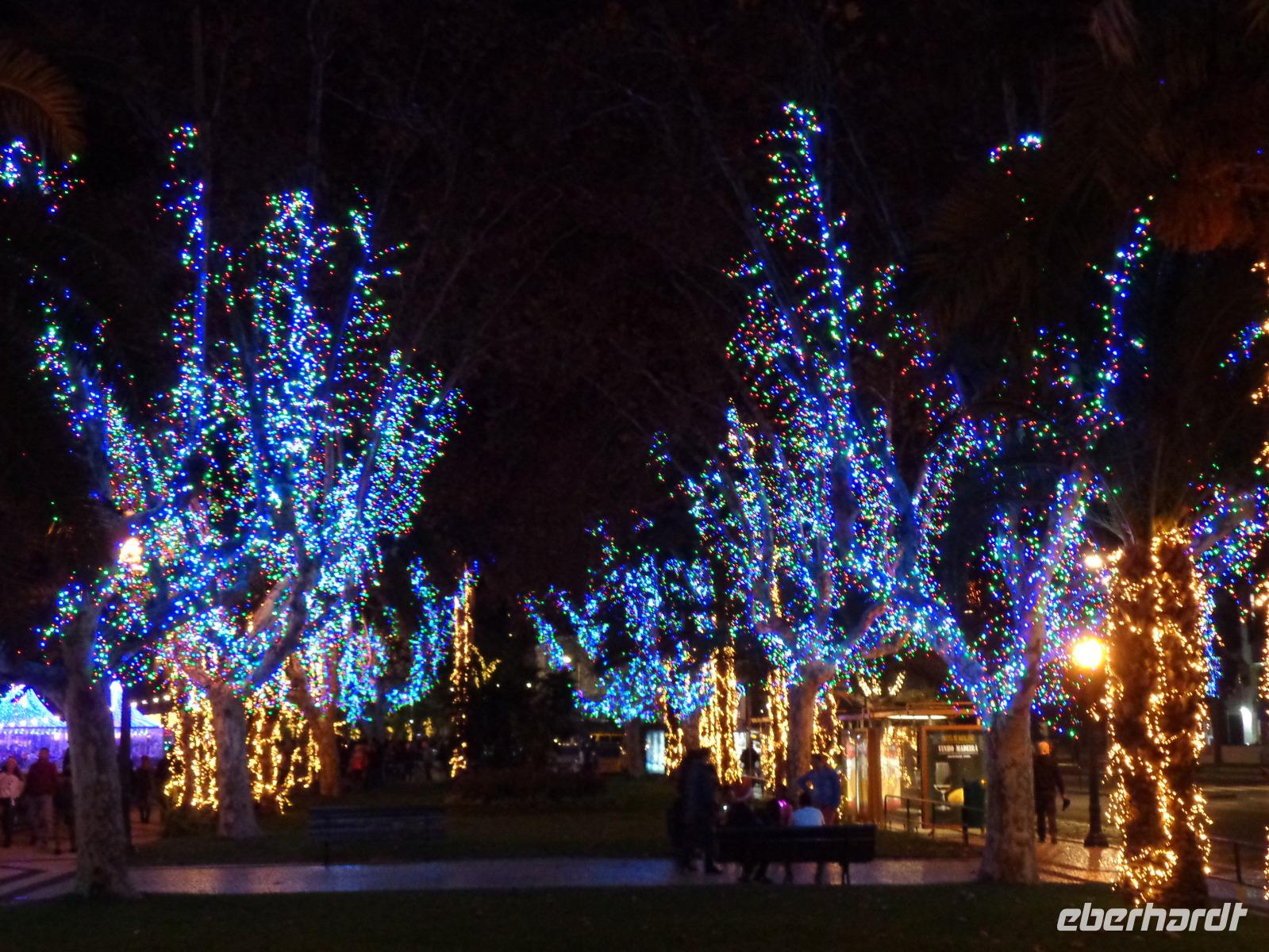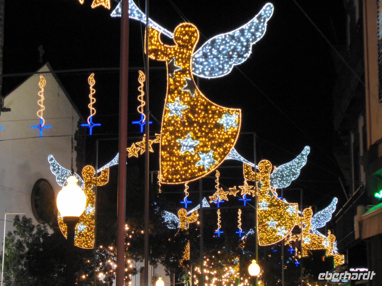 Nach dem Abendessen fuhr uns unser Bus hinunter ins Zentrum von Funchal, wo wir ausgiebig Zeit hatten, uns ins Getümmel der "Noite do Mercado" zu stürzen. Bei diesem traditionellen Fest am 23. Dezember kommen Einheimische und Gäste in den Straßen von Funchal zusammen, um bei Musik, Tanz und gutem Essen durch die wunderschön beleuchteten Straßen zu schlendern, das weihnachtliche Singen in der Markthalle zu genießen oder die ein oder andere Köstlichkeit an den Straßenständen zu verkosten. Müde, aber voller neuer Eindrücke kamen wir gegen Mitternacht wieder am Hotel an.