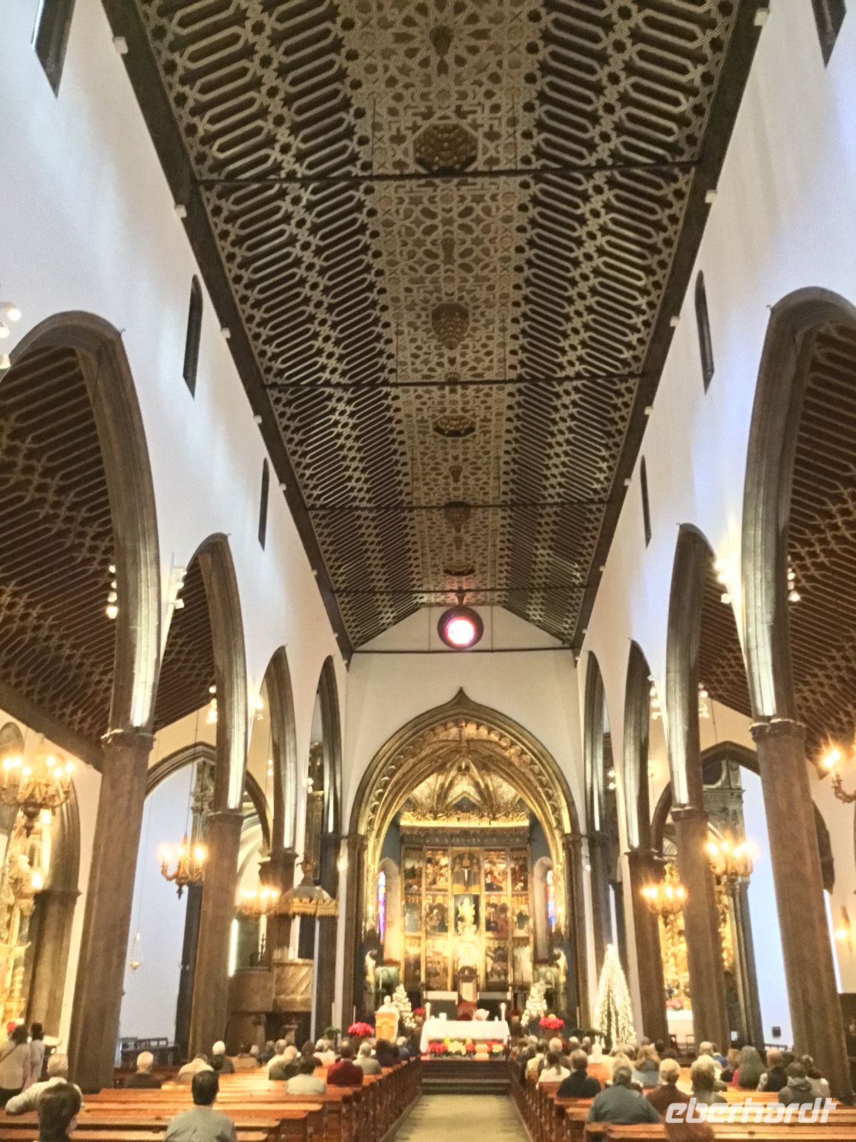 Auch die Silvestergäste sollen die attraktive Hauptstadt Madeiras kennenlernen. Ein Rundgang führt uns natürlich in die Markthalle aber auch zur Jesuitenkirche, der Igreja do Colégio am Praça do Município. Drei Jesuitenpriester erhielten von ihrem Orden im Jahre 1569 den Auftrag auf Madeira eine Jesuitenschule aufzubauen. Mit dem Bau der Schule sollte 1599 begonnen werden und 1624 wurde schließlich der Grundstein für die Kirche gelegt. Fertiggestellt wurde sie 1647. Der bis ins 19. Jahrhundert größte Gebäudekomplex von Madeira gehört heute zur Universität Madeira. Ein Besuch der Kirche lohnt, denn wir können die reich verzierten Kapellen und der Hochaltar mit seinen wundervollen Holzschnitzereien. Ein besonderer Import sind die Azulejos aus Lissabon, welche die Seitenwände des Innenraumes zieren. Nach einer Pause geht es mit der Seilbahn hinauf nach Monte. Ein weiterer Garten steht auf dem Programm. Der Tropische Garten geht auch auch auf einen Privatmann zurück. Einst wurde das Gelände im 18. Jahrhundert vom englischen Konsul Charles Murray gekauft. Später gelangte es 1897 in den Besitz von Alfredo Guilherme Rodrigues, der ein luxuriöses Wohnhaus errichtete. Aus diesem Gebäude entstand später das Monte Palace Hotel. Nach dem Tode Rodrigues kaufte 1987 José Berardo das Areal. Die heutige Stiftung beeindruckt durch seine Pflanzen aber auch die Kunst- und Mineraliensammlung. Dem Rundgang schließt sich noch eine Kostprobe des Madeira-Weines an. Wirklich Mut müssen sich die Gäste für den nächsten Programmpunkt nicht antrinken, auch wenn wir uns zu den Korbschlitten bewegen. Nach der Abfahrt geht es nach einem spannenden Ausflug in Funchal und Monte zurück zum Rocamar.