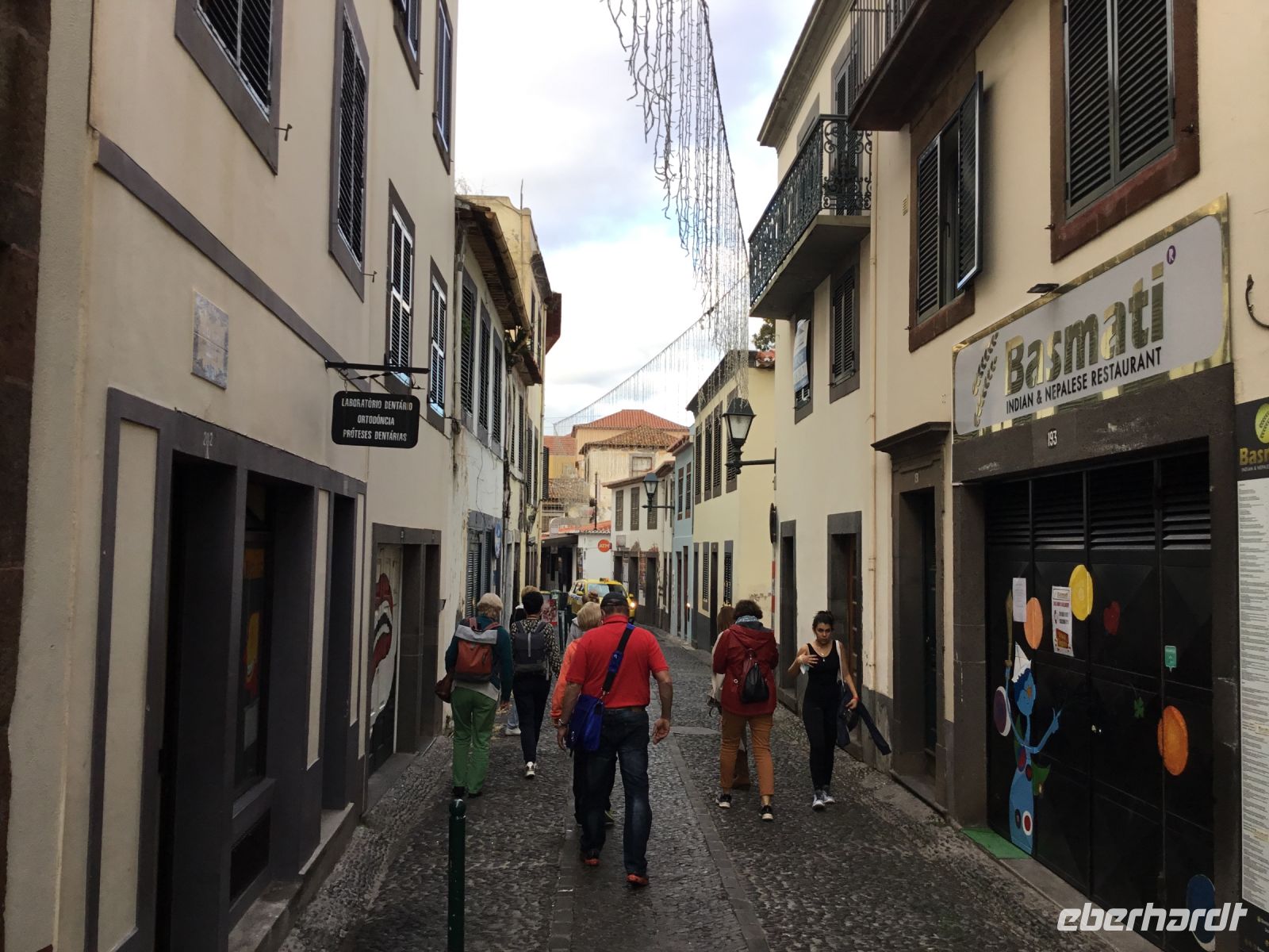 Nach dem Frühstück, bei dem sich alle an dem tollen Ausblick des Speisesaals und der Terrasse erfreuen, geht es um 9 Uhr mit dem Bus zu einer Erkundung des Ostens der Inseln. Marco ist wieder da, um uns Wissenswertes über Madeira zu erzählen und Silva chauffiert den Bus sicher durch so manche Kurve. Für die Gäste wird schnell deutlich: Eigentlich geht es auf Madeira irgendwie immer nach oben und dann eben auch wieder nach unten. Unser erster Stopp soll eigentlich die Korbflechterei in Camacha sein. Aber auch auf Madeira gibt es Veränderung. Die Jungen wollen das traditionelle Handwerk, wie die Stickerei oder eben die Korbflechterei nicht mehr erlernen, da die Entlohnung in anderen Bereichen höher ist. Gleiches gilt auch für die Landwirtschaft. Deshalb wurde die Korbflechterei geschlossen. Vielleicht wird es ja einmal ein Museum geben, damit die Handwerkskunst nicht verloren geht. Für uns geht es zum Pico do Arieiro, der mit seinen 1818 Meter der dritthöchste Berg Madeiras ist. Und spätestens hier wird uns allen gewahr, diese Inseln ist zum Wandern da. Deshalb werden wir als nächstes eine kleine Levadawanderung machen. Drei Kilometer liegen vor uns und es ist eine Strecke, die sich gut laufen lässt. Die Levadas sind ein Bewässerungssystem, welches sich über die gesamte Insel erstreckt. Mit diesen Wasserwegen erhalten die Bauern Wasser für die Felder, die oft genug auf Terrasse zu finden sind und somit alles andere als leicht zugänglich. Ein besonderer Höhepunkt des Tages ist der Ort Santana, den wir nach der Wanderung besuchen. Hier finden sich noch einige der typischen Häuser mit ihren Reetdächern. Heute möchten nur noch wenige in diesen Häusern wohnen, da sie sehr klein sind und das Raumklima nicht das Beste sein soll. Für uns sind die restaurierten bunten Häuser ein Markenzeichen Madeiras. Der heutige Tag endet jedoch nicht mit der Rückkehr zum Hotel. Nach einer Verschnaufpause geht es für das heutige Abendessen in Richtung Funchal. Ein besonderes Erlebnis, denn Madeira ist nicht nur für das Feuerwerk bekannt, sondern auch für die Weihnachtsbeleuchtung. Diese erstreckt sich jedoch nicht nur auf den unteren Teil der Stadt, sondern geht die Hanglangen weit hinauf.