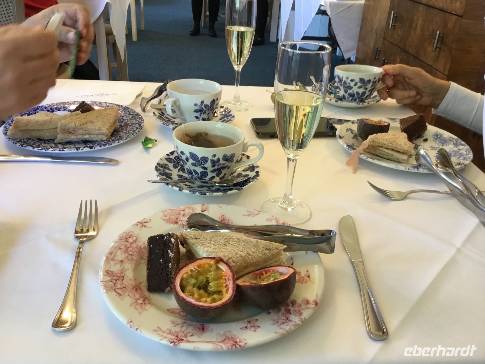 Ein entspanntes Frühstück bei angenehmen Temperaturen: Tatsächlich bringt uns die zweite Woche schon sommerliche Temperaturen, die uns 25 Grad bescheren. Geradezu perfekte Bedingungen für unser Nachmittagsprogramm, wäre nicht der Wellengang. Während die Eberhardt-Gäste seetauglich sind, können wir dies nicht von allen Katamaranfahrer behaupten. Delfine sehen wir nicht. Belohnt werden wir aber mit der Begegnung einer Familien von Pilotwalen. Einfach nur faszinierend diese mächtigen Tiere so leicht im Wasser gleiten zu sehen.