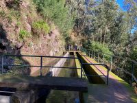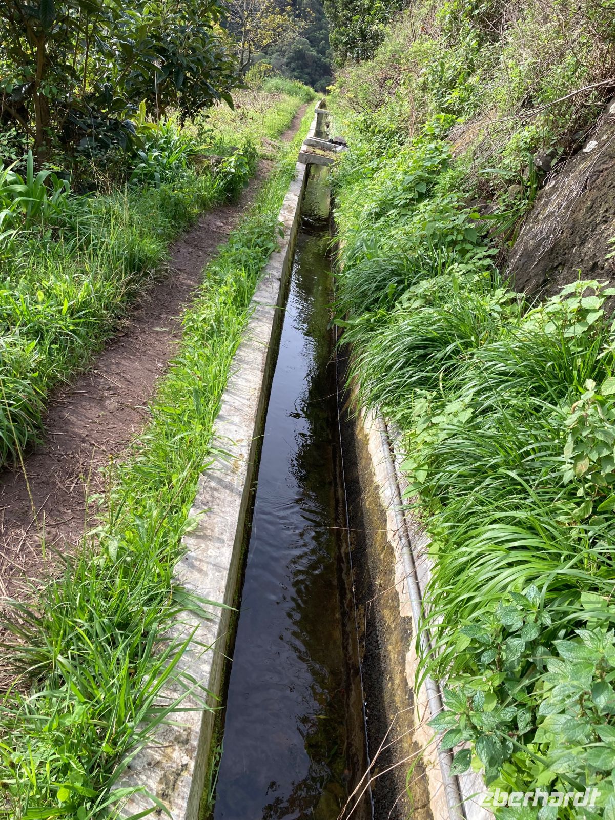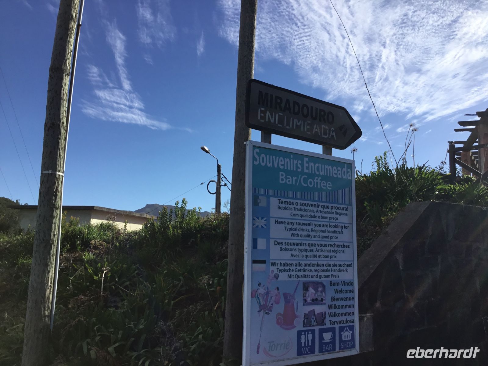 Wieder um 9 Uhr brechen wir wieder gemeinsam mit Marco und Silva auf zur unserer Erkundung des Nordwestens. Über Ribeira Brava geht es über dem Encumeada-Pass hinauf auf 1400 Meter. Hier zeigt sich nun eine ganz andere Landschaft. Eine Hochebene mit Wacholder und Ginster. Madeira setzt langsam aber sicher auf erneuerbare Energie. Hier oben finden sich neben einigen Windrädern auch Solarpannels. Eigentlich wollten wir hier eine Wanderung starten, aber leider war uns hier oben der Wettergott nicht wirklich gewogen. Es fehlt uns leider gänzlich die Sicht. Nun gut, wir lassen uns nicht beirren. Eine kurze Rücksprache mit Marco und wir entscheiden uns für eine Levada oberhalb von Porto Moniz. Eine Stunde lernen wir nun eine wichtige und breite Levada kennen, die für die Wasserversorgung für die Felder von Moniz sorgen.