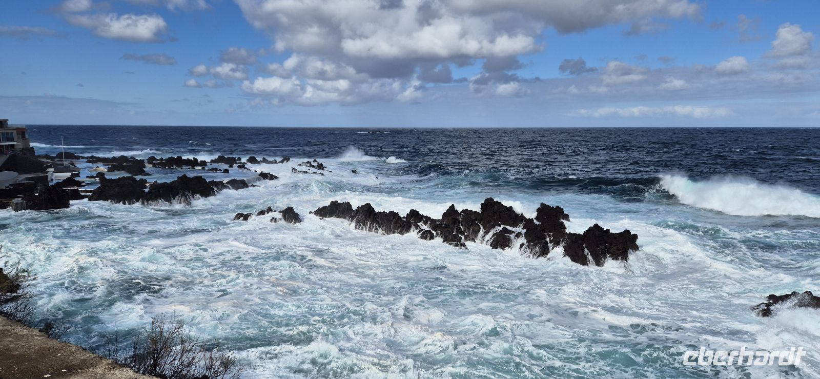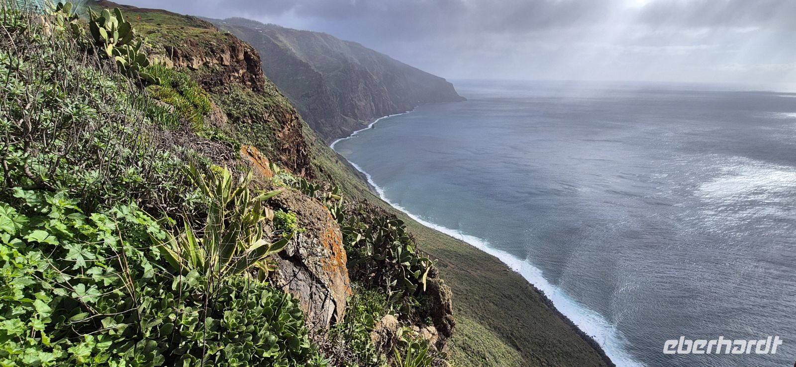 Nach einem ausgedehnten und genussvollen Frühstück machen wir uns voller Erwartungen auf den Weg zu unserem zweiten Erkundungstag entlang der Südküste Madeiras. Unser erstes Ziel ist die Hochebene Paul da Serra, die normalerweise mit weiten Ausblicken und ursprünglicher Natur beeindruckt. Heute jedoch empfängt sie uns von ihrer rauen Seite: dichter Nebel, kalter Wind und anhaltender Regen lassen die Temperaturen auf etwa fünf Grad sinken. Von Aussicht ist keine Spur – stattdessen gleicht die Landschaft stellenweise einer Seenplatte. Links und rechts der Straße haben sich große Wasserflächen gebildet, die Hochebene ist teilweise überflutet. Unter diesen Bedingungen ist schnell klar: Eine Wanderung wäre heute weder angenehm noch sicher. Gemeinsam mit unseren Gästen entscheiden wir uns daher bewusst und einvernehmlich gegen die geplante Tour durch den Lorbeerwald. Die Vernunft geht vor – und dafür zeigen alle großes Verständnis. Wir setzen unsere Fahrt fort und steuern die Nordküste an. Noch vor dem Mittagessen legen wir einen Fotostopp bei Ribeira da Janela ein. Hier zeigt sich Madeira wieder dramatisch und wild: Schroffe Felsformationen ragen aus dem Atlantik, die Brandung schlägt kraftvoll gegen die Küste und bietet eine eindrucksvolle Naturkulisse. Auch der markante Felsen, der als „Finger Gottes“ bekannt ist, darf natürlich nicht fehlen, hier halten wir außerplanmäßig und gehen zu Fuß zu einer schönen Aussichtsplattform. In Porto Moniz angekommen, begrüßt uns glücklicherweise trockenes Wetter. Wir tauchen ein in die entspannte Atmosphäre des kleinen Küstenortes und gönnen uns eine wohlverdiente Mittagspause. Auf Empfehlung unserer Reiseleiterin Fátima genießen wir eine köstliche Fisch- oder Tomatensuppe, die wunderbar wärmt und gemeinsam mit dem frischen Bolo do Caco, leckere Spezialitäten der Insel sind. Anschließend bleibt noch Zeit für einen gemütlichen Spaziergang durch den Ort. Die berühmten Naturschwimmbecken – wegen des starken Seegangs, bleiben heute geschlossen, da immer wieder große Wellen über die Felsen hinein schwappen. Am Nachmittag fahren wir weiter in den Westen der Insel nach Ponta do Pargo. Hoch oben auf den Klippen thront der historische Leuchtturm, und von hier aus eröffnet sich ein beeindruckender Blick über den Atlantik. Rund 374 Meter unter uns trifft das Meer auf die steilen Felsen . Zum Abschluss unseres Ausflugs steht noch eine Levada Wanderung entlang der Levada Fajã das Ovelhas auf dem Programm. Auf etwa fünf Kilometern folgen wir dem schmalen Weg am Hang entlang, mit Blick auf das Meer und die Südküste. Rund anderthalb Stunden sind wir in dieser grünen, ruhigen Landschaft unterwegs. Auch wenn das Wetter uns heute mehrfach herausfordert, lassen wir uns die Freude an dieser schönen Strecke nicht nehmen. Zurück in Funchal freuen wir uns auf unser abwechslungsreiches Buffet, eine wärmende Suppe und den Austausch über die Erlebnisse des Tages.
