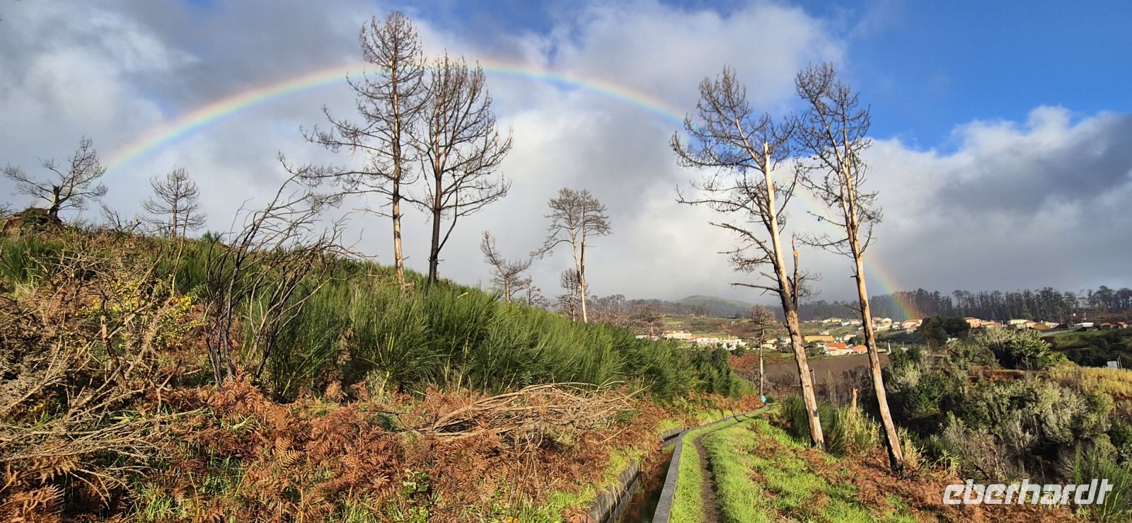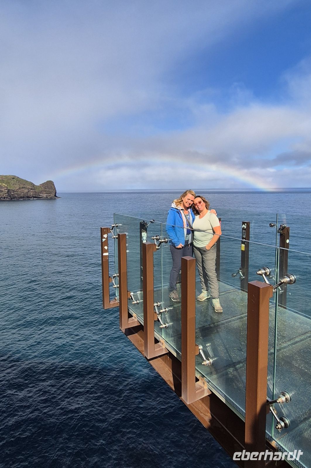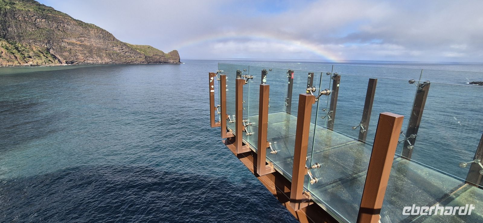 Der heutige Tag auf Madeira steht zur freien Verfügung und wir haben die Qual der Wahl: Entweder genießen wir Funchal auf eigene Faust oder schließen uns der optionalen Levada-Wanderung entlang der Levada do Faial an, was die meisten von uns gewählt haben. Somit verlassen wir Funchal und fahren hinauf ins grüne Herz der Insel. Eine herrliche Wanderung beginnt und schon nach wenigen Schritten wird klar, warum die Levadas zu den schönsten Besonderheiten Madeiras zählen. Diese historischen Wasserkanäle, die einst zur Bewässerung der Felder angelegt wurden, führen uns heute gemütlich und nahezu ebenerdig durch eine üppige Waldlandschaft. Auf halber Strecke legen wir eine genussvolle Pause ein und kehren in ein kleines Lokal ein. Ein Cafezinho, der typische portugiesische Espresso, darf natürlich nicht fehlen – ein perfekter Moment zum Durchatmen, Genießen und Plaudern. Gestärkt starten wir in den zweiten Teil der Wanderung. Weiter geht es entspannt entlang der Levada, durch schattigen Wald und vorbei an Farnen, Eukalyptusbäumen und üppigem Grün. Immer wieder öffnen sich Ausblicke ins Tal und lassen uns innehalten – Madeira zeigt uns heute seine ländliche Seite. Nach der Wanderung fahren wir weiter zur Aussichtsplattform von Guindaste an der Küste. Hoch über dem Atlantik genießen wir eine spektakuläre Aussicht von der gläsernen Plattform auf das Meer und die Steilküste. Als wäre es bestellt, spannt sich sogar ein Regenbogen über die Landschaft – ein magischer Moment, der diesen Ausflug perfekt abrundet. Anschließend kehren wir zurück nach Funchal und müssen uns nun leider von unserer liebgewonnenen Reiseleiterin Fatima und Busfahrer Isidoro verabschieden. Mit beiden die Insel zu erkunden, war einfach die perfekte Kombination! Obrigada e tudo de bom! Der Nachmittag steht uns zur freien Verfügung: ob ein Spaziergang durch die Altstadt, ein Bummel entlang der Uferpromenade, ein Besuch in einem Café oder einfach Entspannung – jeder gestaltet diese Zeit ganz nach seinem Geschmack. Am Abend treffen wir uns ein letztes Mal zum gemeinsamen Abschlussabendessen im Hotel Panoramico. Bei gutem Essen, vielen Gesprächen und schönen Erinnerungen lassen wir unsere Madeira-Reise gemeinsam ausklingen.