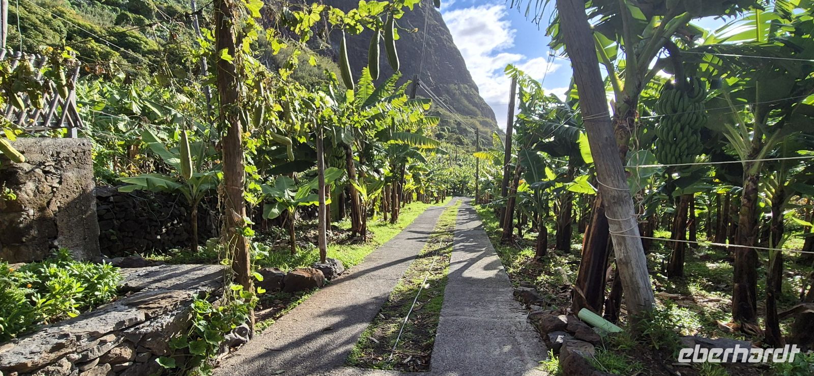 Wir starten entspannt in diesen wunderbaren Tag, denn die Sonne lacht bereits am Morgen vom blauen Himmel. Heute lassen wir es ruhig angehen, genießen ein ausgedehntes Frühstück und freuen uns auf einen abwechslungsreichen Tag entlang der sonnigen Südküste Madeiras. Unsere erste Etappe führt uns oberhalb der Steilküste zur Seilbahn, die uns hinunter nach Fajã dos Padres bringt. Schon die Fahrt ist ein Erlebnis: Lautlos schweben wir fünf Minuten steil bergab, das Meer rückt näher und die grüne Terrassenlandschaft breitet sich unter uns aus. Unten angekommen, fühlen wir uns wie in einer anderen Welt. Dieser abgeschiedene Ort war jahrhundertelang nur per Boot erreichbar und wurde einst von Mönchen bewirtschaftet – heute gedeihen hier auf fruchtbarem Vulkanboden Bananen, Papayas, Mangos, Weinreben und Gemüse in beeindruckender Vielfalt. Bei einem gemütlichen Rundgang erklärt uns Fátima mit viel Herzblut die Besonderheiten dieses kleinen Paradieses. Danach bleibt Zeit zum Schlendern, Staunen und Fotografieren. Manche gönnen sich einen Kaffee direkt am Meer, andere lassen einfach die Ruhe und die Farben dieses besonderen Ortes auf sich wirken und möchten diesen eigentlich gar nicht mehr verlassen. Zurück oben geht es weiter nach Ponta do Sol, dem sonnenverwöhnten Ort, der seinem Namen alle Ehre macht. Wir spazieren durch die gepflegten Gassen, vorbei an kleinen Plätzen und hinunter zur Promenade. Hier scheint die Zeit ein wenig langsamer zu laufen. Zum Mittagessen kehren wir im Restaurant Sol Poente ein und genießen regionale Küche mit Degenfisch und Co. in entspannter Atmosphäre – mit Blick auf den Atlantik versteht sich. Am Nachmittag wartet ein weiteres Highlight: Madalena do Mar, bekannt für seine ausgedehnten Bananenplantagen. Auf einem Spaziergang entlang der Levada tauchen wir ein in das satte Grün der Plantagen. Wir erfahren Spannendes über den Bananenanbau auf Madeira, der hier dank des milden Klimas ganzjährig möglich ist. Die kleinen, besonders aromatischen Madeira-Bananen wachsen übrigens deutlich niedriger als die meisten vermuten – fast zum Greifen nah. Zum Abschluss des offiziellen Programms erreichen wir das lebendige Fischerdorf Câmara de Lobos. Bunte Boote schaukeln im Hafen, Einheimische sitzen vor den Bars, und über allem liegt dieses typische madeirensische Lebensgefühl. Bei einem kurzen Rundgang genießen wir die Atmosphäre dieses traditionsreichen Ortes, der einst auch Winston Churchill inspirierte. Wer mag – und das sind heute erstaunlich viele – schließt sich mir an und wir machen uns zu Fuß auf den Weg zurück nach Funchal. Rund neun Kilometer liegen vor uns, immer entlang der Küste, mit herrlichen Ausblicken auf das Meer. In etwa zwei Stunden und einer herrlichen Unterbrechung auf ein kühles Getränk, erreichen wir die Stadt, erfüllt von frischer Luft, Bewegung und vielen Eindrücken. Ein Tag, der wieder mal zeigt, wie vielseitig Madeira ist: abgeschiedene Natur, sonnige Orte, landwirtschaftliche Traditionen und lebendige Küstenorte – und genau deshalb ist Madeira so einzigartig und beliebt.