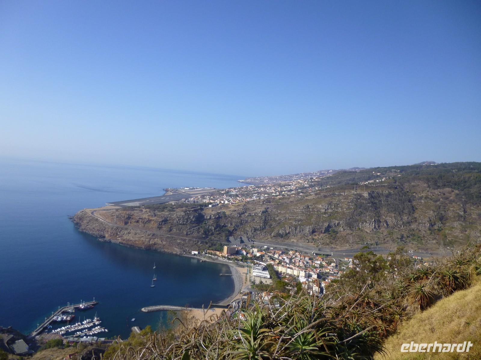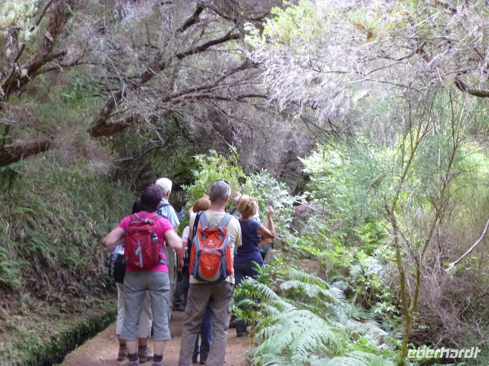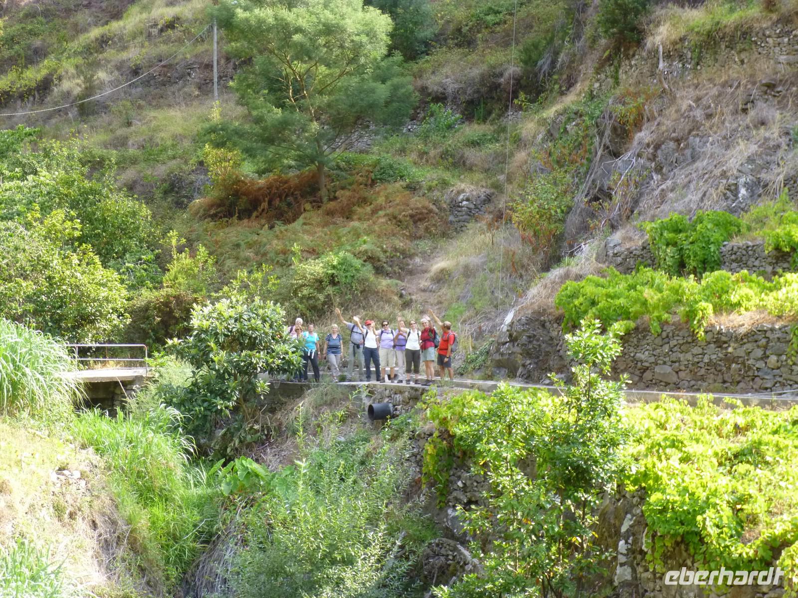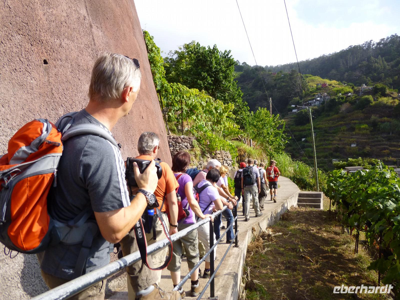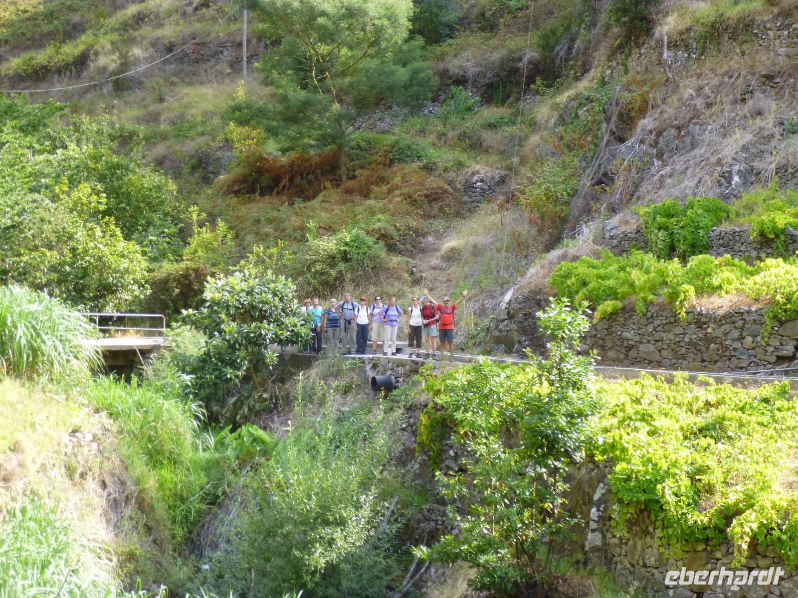 Nach dem Frühstück im Roca Mar, unserem Hotel, holte uns Sergio zur Wanderung ab. Auf der Fahrt zur unser Wanderung unterfuhren wir die Landebahn des Flughafens. Die auf Säulen gestützte Verlängerung der Bahn ist ein imposantes Bauwerk und erweitert den Flughafen zum dritten Mal in seiner Geschichte. Unser erster Stopp galt der Mittagsverpflegung. Dazu besuchten wir einen Supermarkt in dem sich jeder mit Snacks eindecken konnte. Der Wanderweg selbst führte immer entlang einer Levada - einem Bewässerungskanal. Sergio pausierte dabei immer wieder, um uns über die einheimischen Pflanzen zu informieren. Dazu zählen Pimpinella, Zuckerapfel, Zuckerrohr, Weintrauben Lorbeerbäume und viele weitere. Ungefähr in der Hälfte der Wanderung pausierten wir in einem Cafe. Entlang des gesamten Weges boten sich immer wieder fantastische Ausblicke auf das Tal. Sergio erklärte uns das Bewässerungssystem, seine Bedeutung für Madeira und seine Pflege. Lavadeure, die „Manager" der Kanäle, verteilen das Wasser indem sie Schleusen öffnen und schließen, sie säubern diese und beseitigen Schäden. Am Ende der Wanderung wartete unser Busfahrer schon auf uns und brachte uns nach Machico. Im Ort hatten wir Zeit um uns die Promenade, den goldgelben Sandstrand und das Stadtzentrum anzuschauen oder einfach ein Eis zu genießen. Wieder am Hotel angekommen verabredete ich mich mit den Gästen zu Abendessen. Einige nutzten aber auch die Möglichkeit sich selbst umzuschauen.