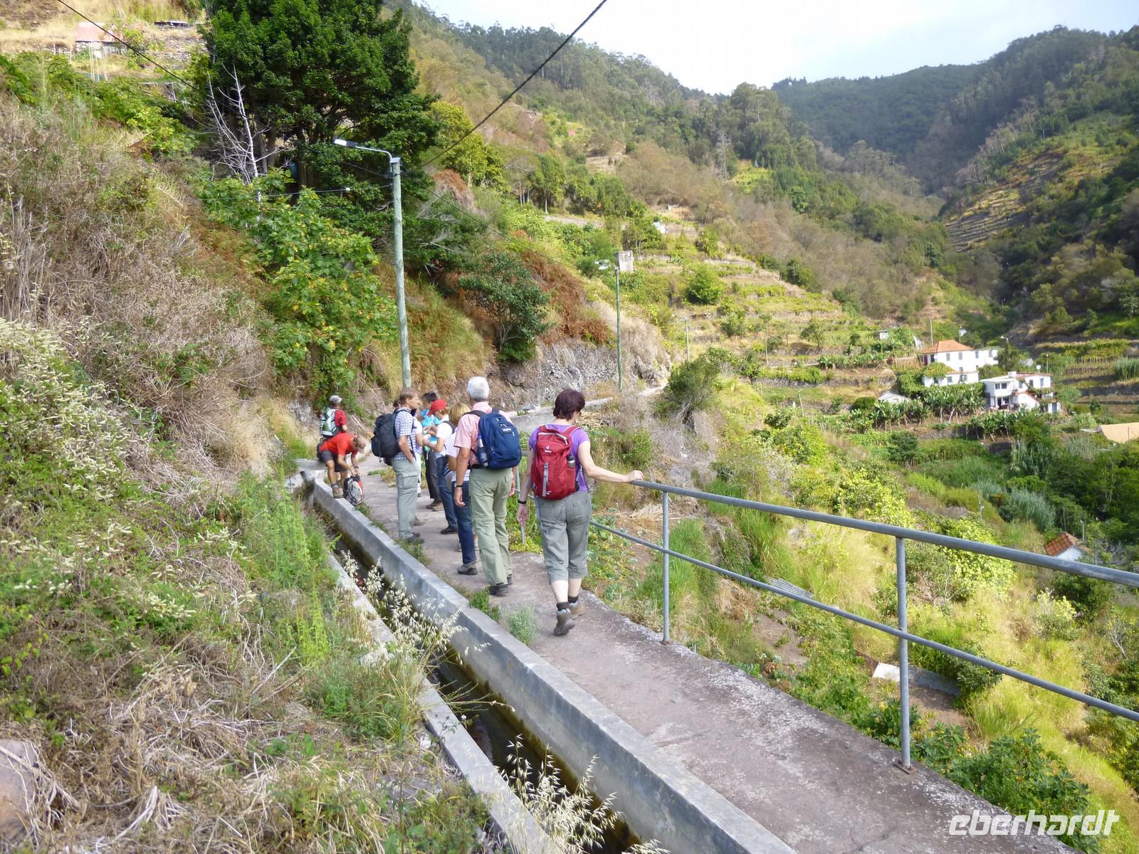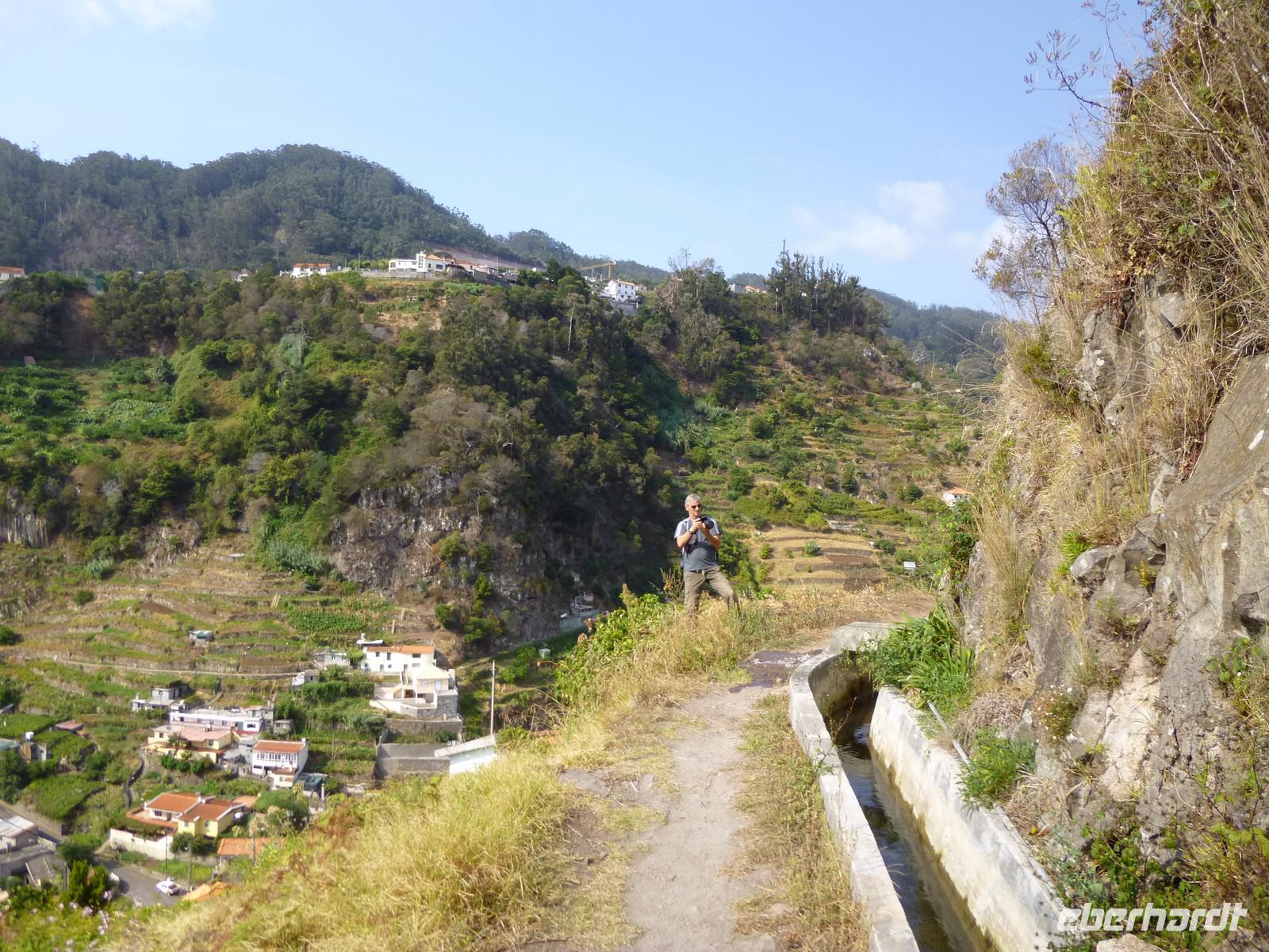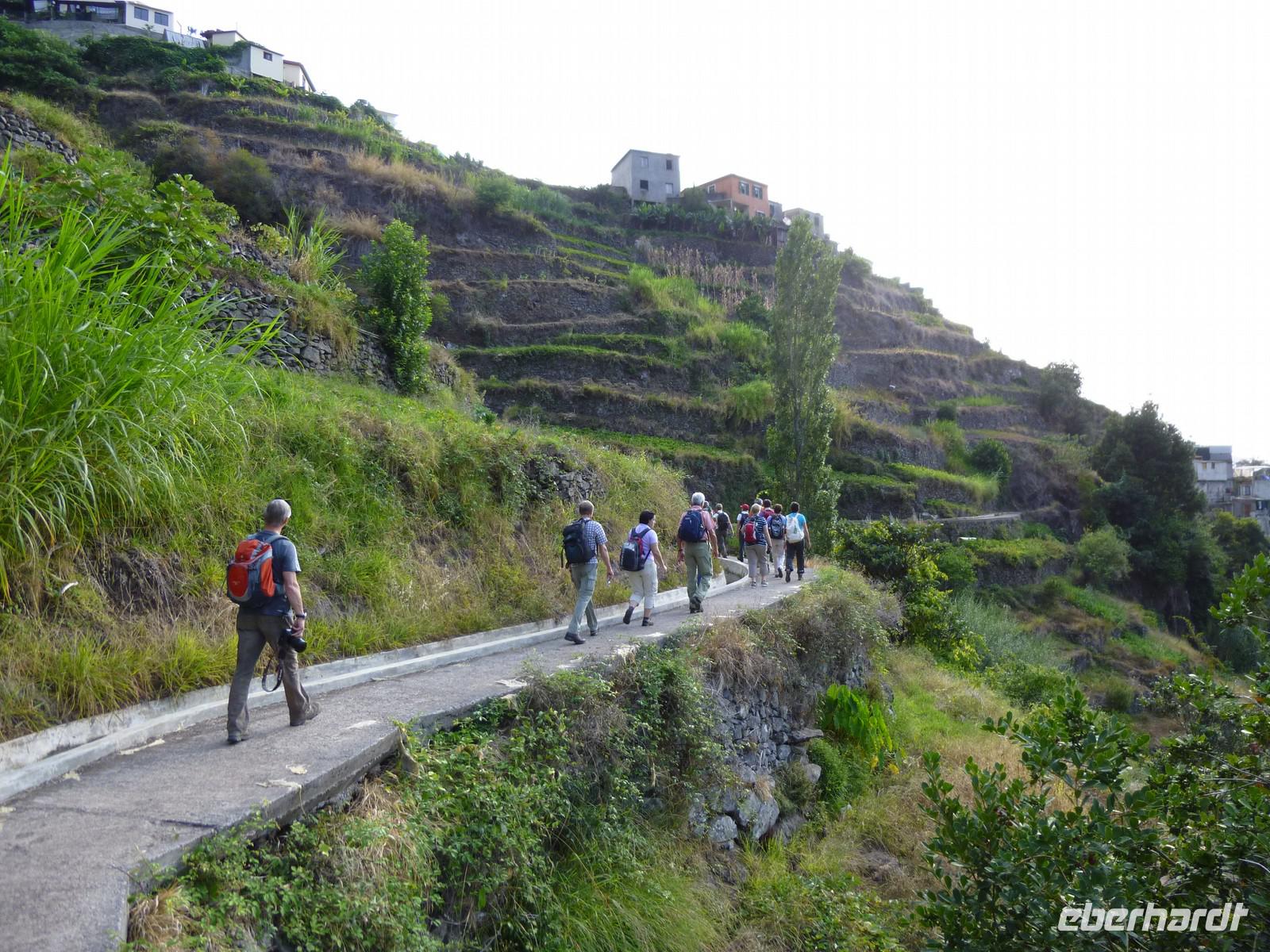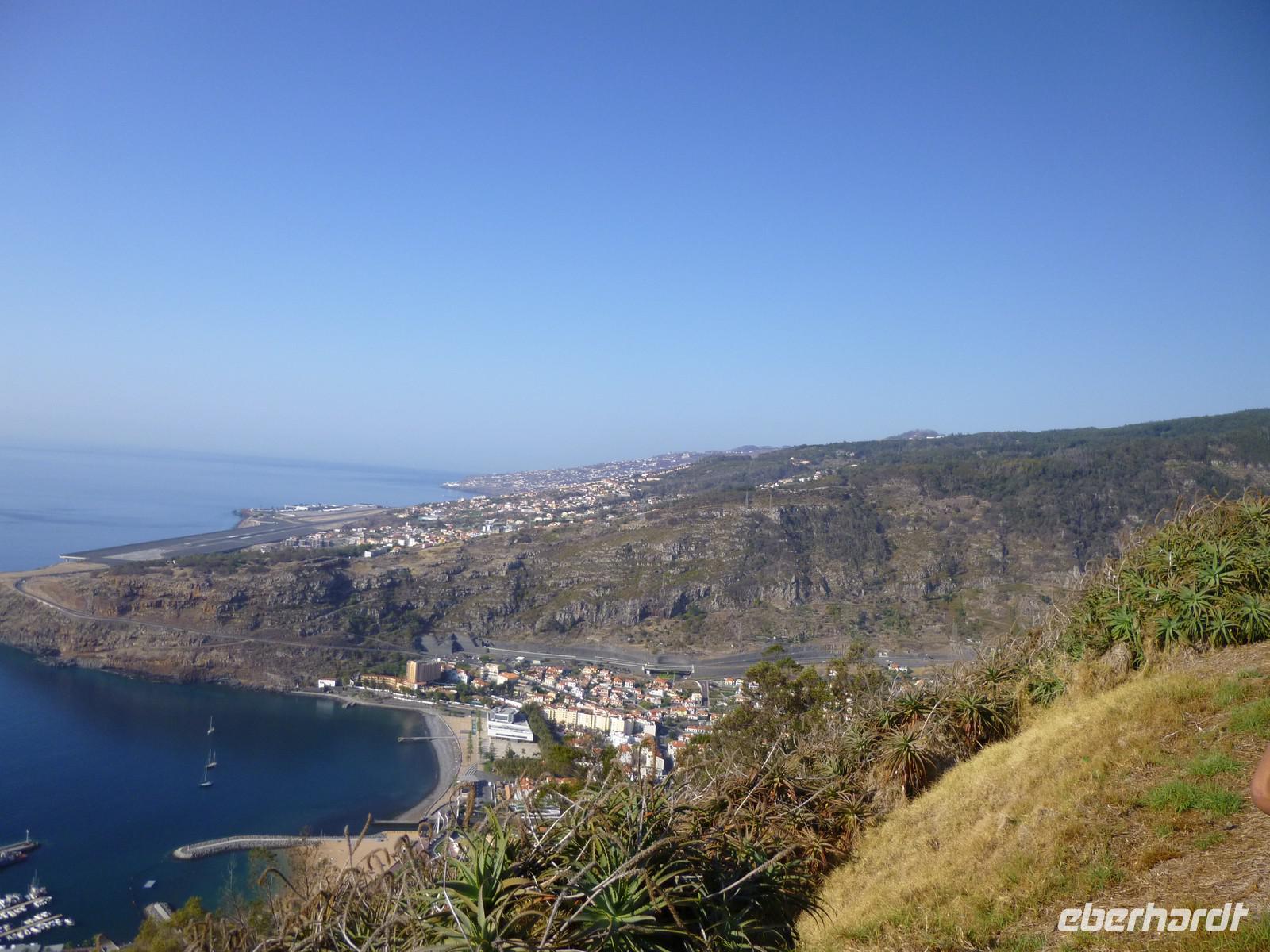 Nach dem Frühstück im Roca Mar, unserem Hotel, holte uns Sergio zur Wanderung ab. Auf der Fahrt zur unser Wanderung unterfuhren wir die Landebahn des Flughafens. Die auf Säulen gestützte Verlängerung der Bahn ist ein imposantes Bauwerk und erweitert den Flughafen zum dritten Mal in seiner Geschichte. Unser erster Stopp galt der Mittagsverpflegung. Dazu besuchten wir einen Supermarkt in dem sich jeder mit Snacks eindecken konnte. Der Wanderweg selbst führte immer entlang einer Levada - einem Bewässerungskanal. Sergio pausierte dabei immer wieder, um uns über die einheimischen Pflanzen zu informieren. Dazu zählen Pimpinella, Zuckerapfel, Zuckerrohr, Weintrauben Lorbeerbäume und viele weitere. Ungefähr in der Hälfte der Wanderung pausierten wir in einem Cafe. Entlang des gesamten Weges boten sich immer wieder fantastische Ausblicke auf das Tal. Sergio erklärte uns das Bewässerungssystem, seine Bedeutung für Madeira und seine Pflege. Lavadeure, die „Manager" der Kanäle, verteilen das Wasser indem sie Schleusen öffnen und schließen, sie säubern diese und beseitigen Schäden. Am Ende der Wanderung wartete unser Busfahrer schon auf uns und brachte uns nach Machico. Im Ort hatten wir Zeit um uns die Promenade, den goldgelben Sandstrand und das Stadtzentrum anzuschauen oder einfach ein Eis zu genießen. Wieder am Hotel angekommen verabredete ich mich mit den Gästen zu Abendessen. Einige nutzten aber auch die Möglichkeit sich selbst umzuschauen.