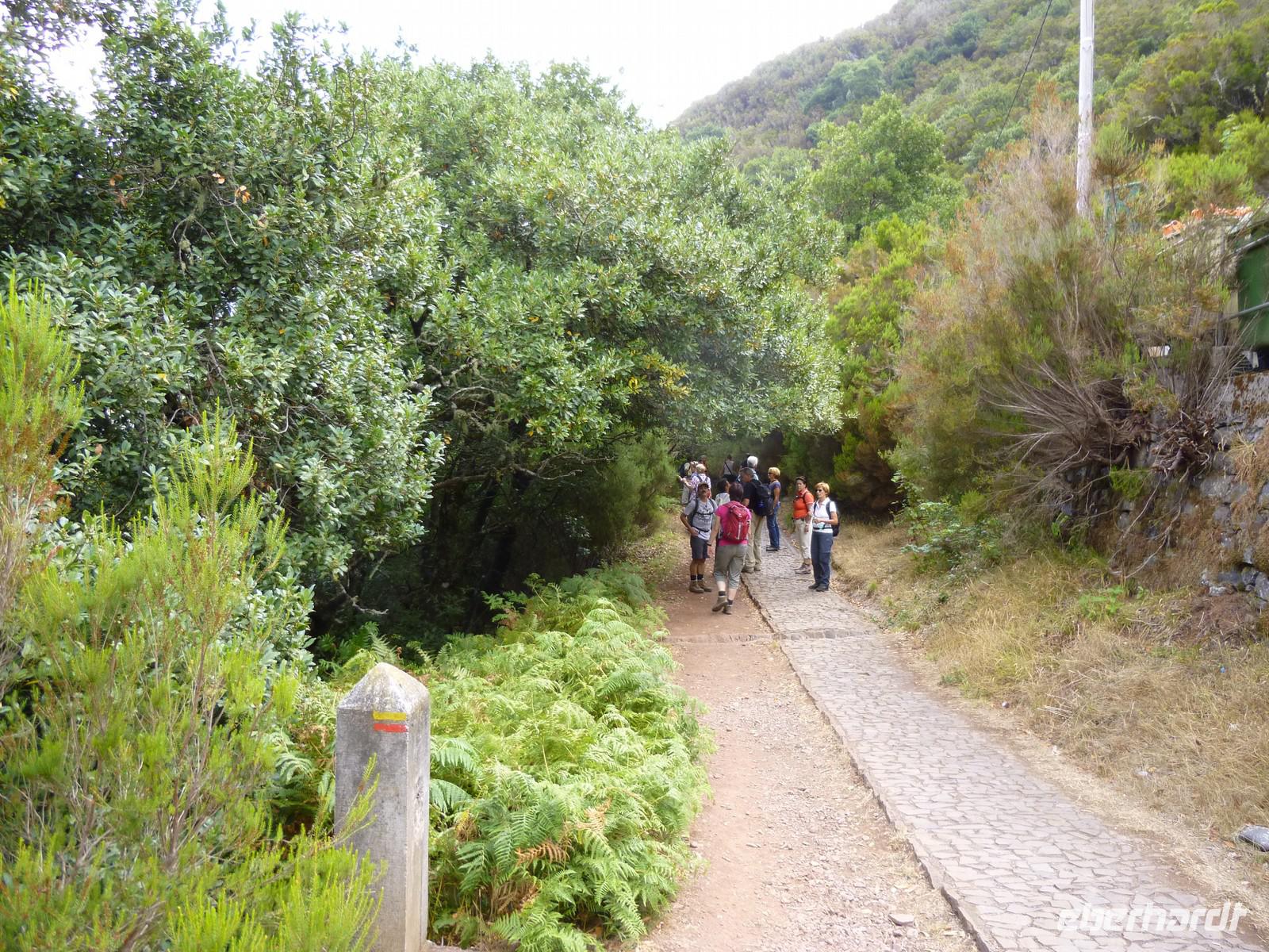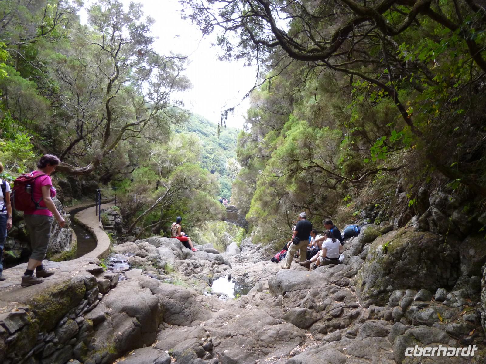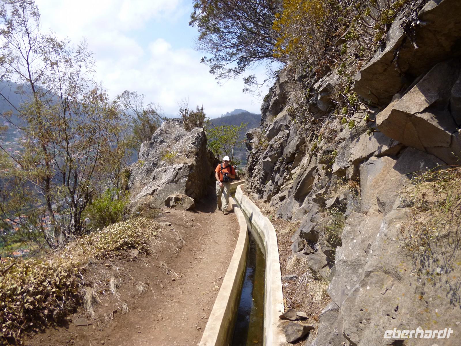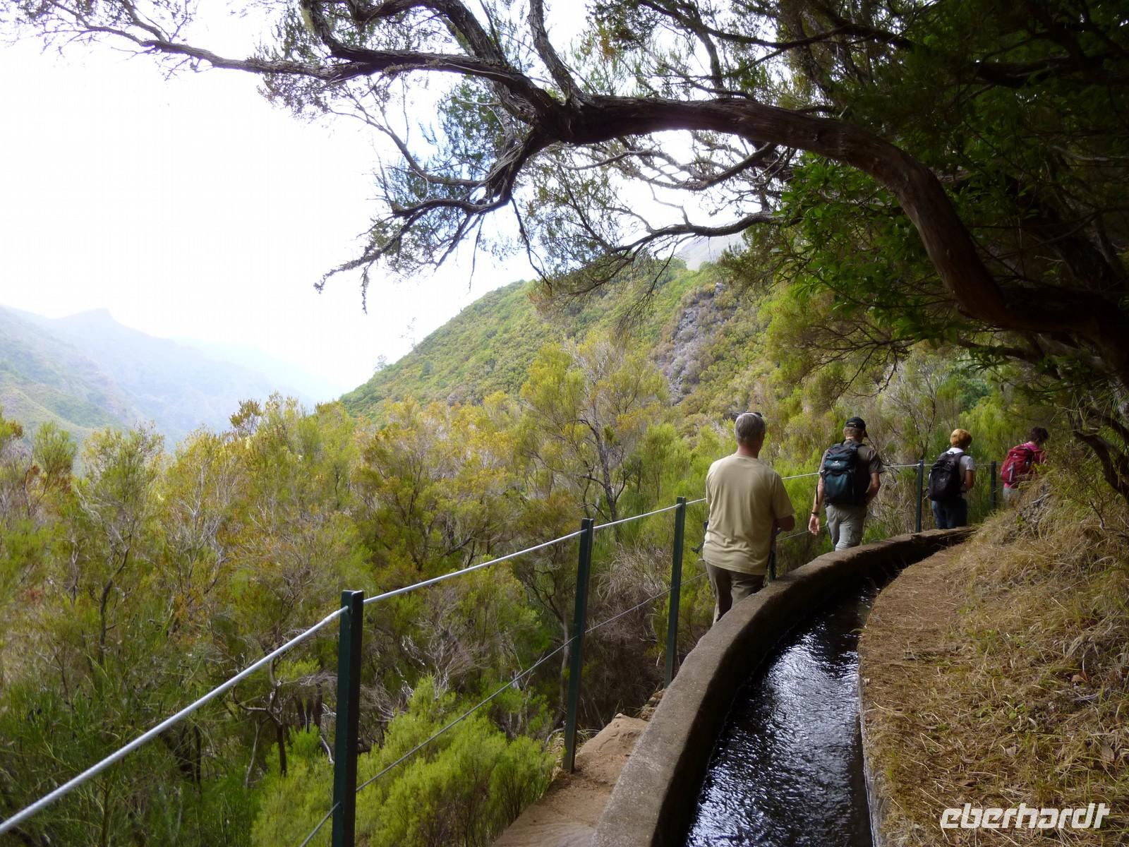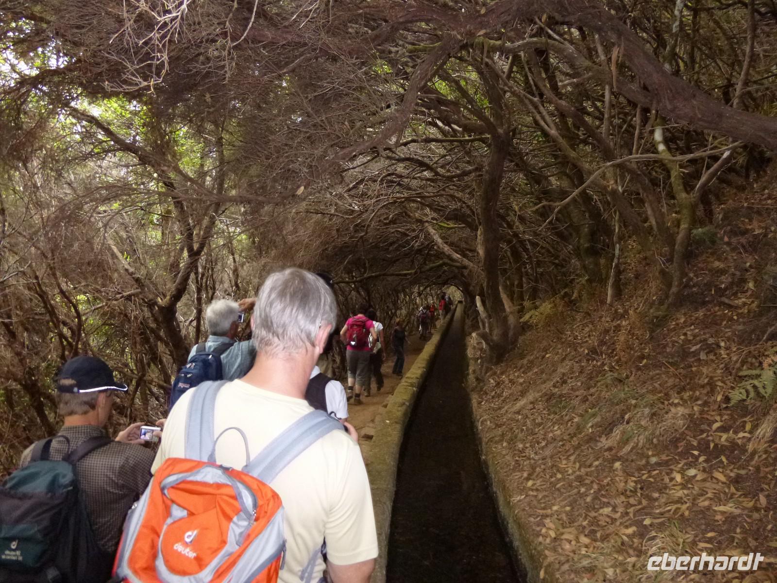 Nach dem Frühstück im Roca Mar, unserem Hotel, holte uns Sergio zur Wanderung ab. Auf der Fahrt zur unser Wanderung unterfuhren wir die Landebahn des Flughafens. Die auf Säulen gestützte Verlängerung der Bahn ist ein imposantes Bauwerk und erweitert den Flughafen zum dritten Mal in seiner Geschichte. Unser erster Stopp galt der Mittagsverpflegung. Dazu besuchten wir einen Supermarkt in dem sich jeder mit Snacks eindecken konnte. Der Wanderweg selbst führte immer entlang einer Levada - einem Bewässerungskanal. Sergio pausierte dabei immer wieder, um uns über die einheimischen Pflanzen zu informieren. Dazu zählen Pimpinella, Zuckerapfel, Zuckerrohr, Weintrauben Lorbeerbäume und viele weitere. Ungefähr in der Hälfte der Wanderung pausierten wir in einem Cafe. Entlang des gesamten Weges boten sich immer wieder fantastische Ausblicke auf das Tal. Sergio erklärte uns das Bewässerungssystem, seine Bedeutung für Madeira und seine Pflege. Lavadeure, die „Manager" der Kanäle, verteilen das Wasser indem sie Schleusen öffnen und schließen, sie säubern diese und beseitigen Schäden. Am Ende der Wanderung wartete unser Busfahrer schon auf uns und brachte uns nach Machico. Im Ort hatten wir Zeit um uns die Promenade, den goldgelben Sandstrand und das Stadtzentrum anzuschauen oder einfach ein Eis zu genießen. Wieder am Hotel angekommen verabredete ich mich mit den Gästen zu Abendessen. Einige nutzten aber auch die Möglichkeit sich selbst umzuschauen.